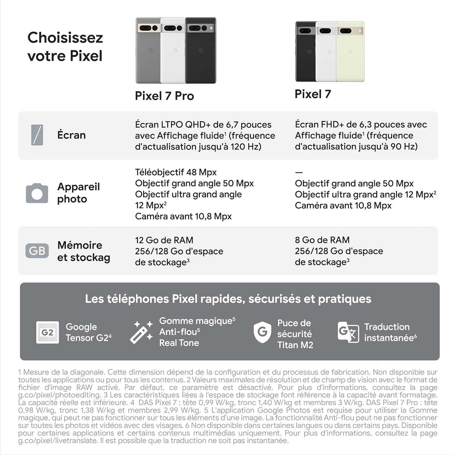 Google Pixel 7 – Smartphone Android 5G débloqué avec Objectif Grand Angle et 24 Heures d'autonomie – 128GB – Neige