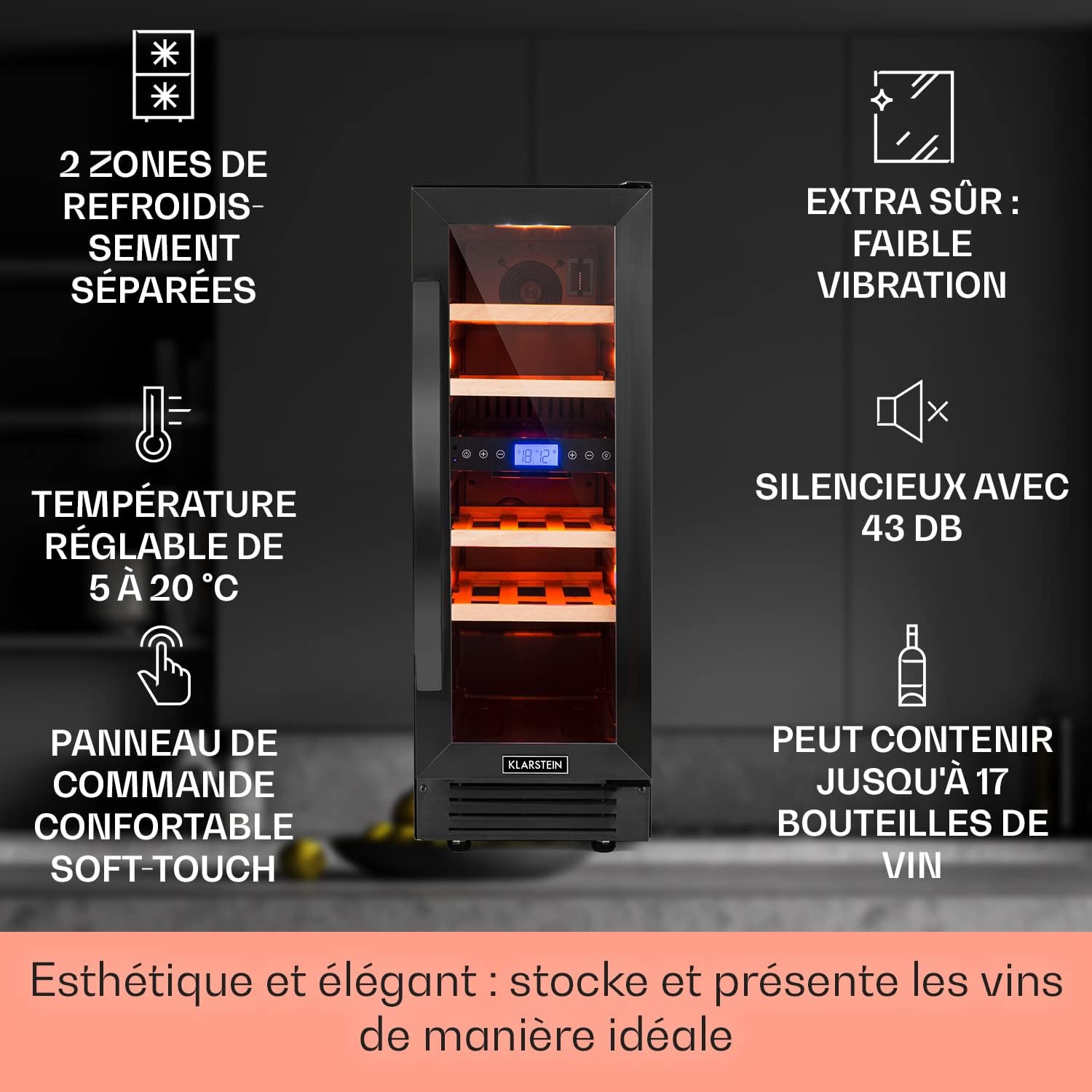 KLARSTEIN Cave a Vin Encastrable, Caves à Vin de 53L avec une Porte en Verre, Cave a Vins à Double Zone, Bar Intérieur/Extérieur, Frigo Vin, Cave a Vin de Vieillissement, Cave à Vin 17 Bouteilles