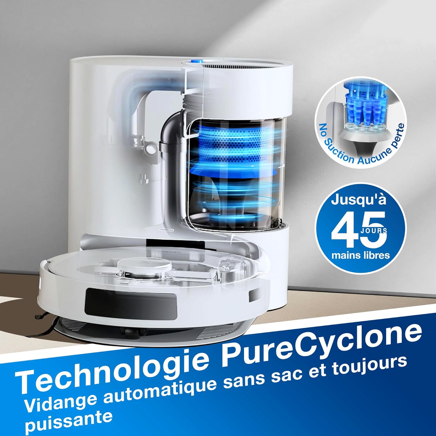 ECOVACS Aspirateur Robot DEEBOT N20 Plus, Robot Aspirateur Laveur 8000Pa avec vidange Automatique poussière, Nettoyage Autonome de 45 Jours, Batterie 300 Min, Anti-Tangle, Tapis et Poils d'animaux