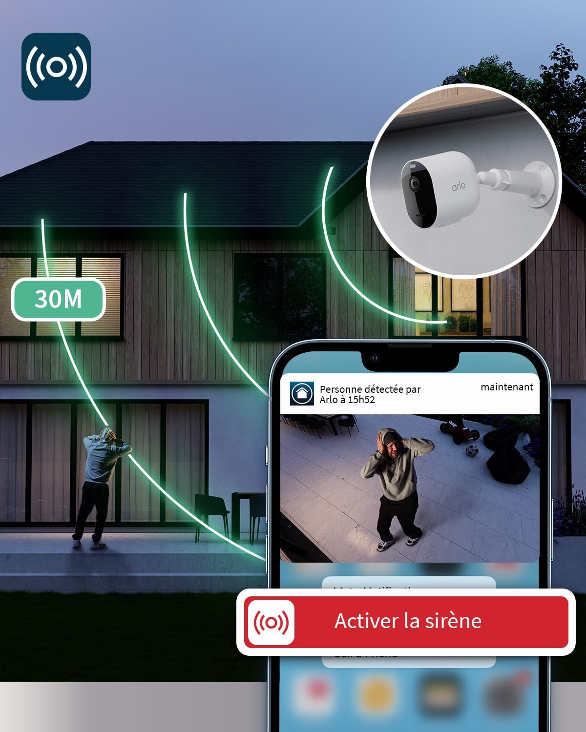 Arlo Pro 5 2K, Caméra de Surveillance WiFi Extérieure Sans Fil