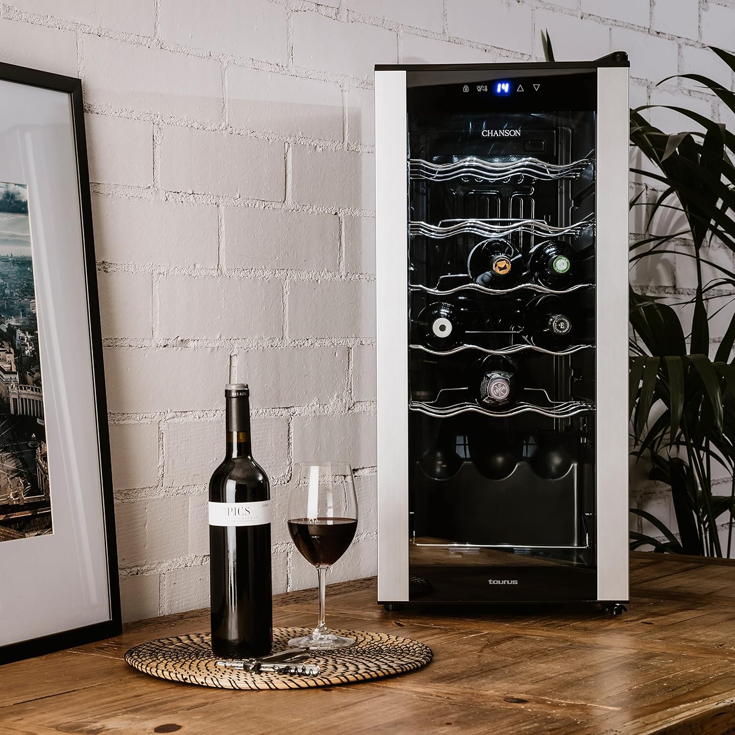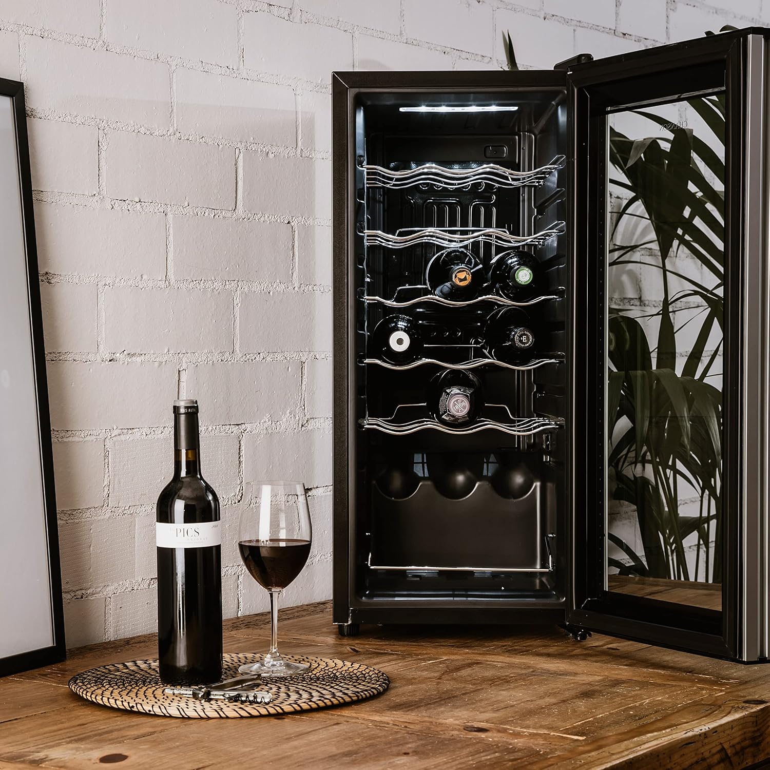 Taurus WC18C - Cave à vin pour 18 bouteilles, silencieux, ne vibre pas, isolation spéciale de l'intérieur, porte vitrée, température réglable, éclairage intérieur, noir