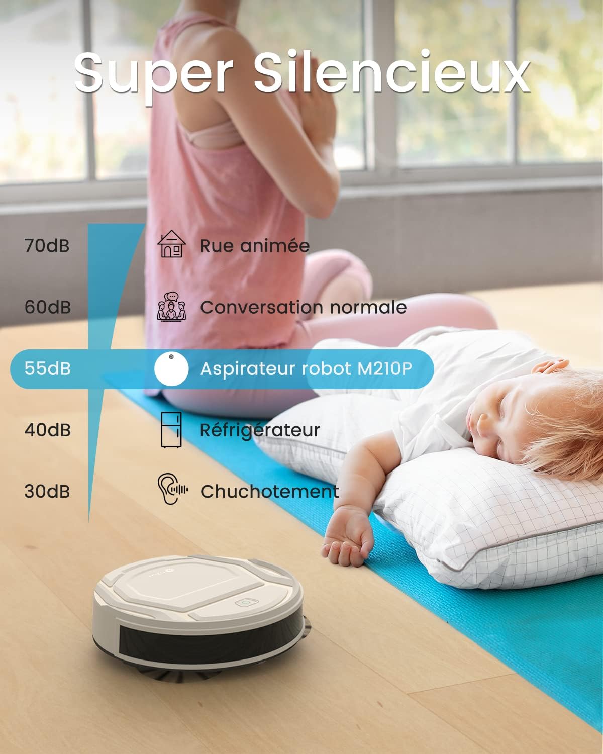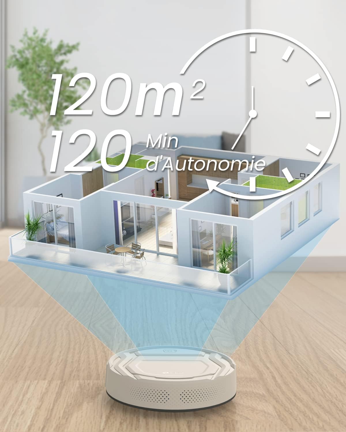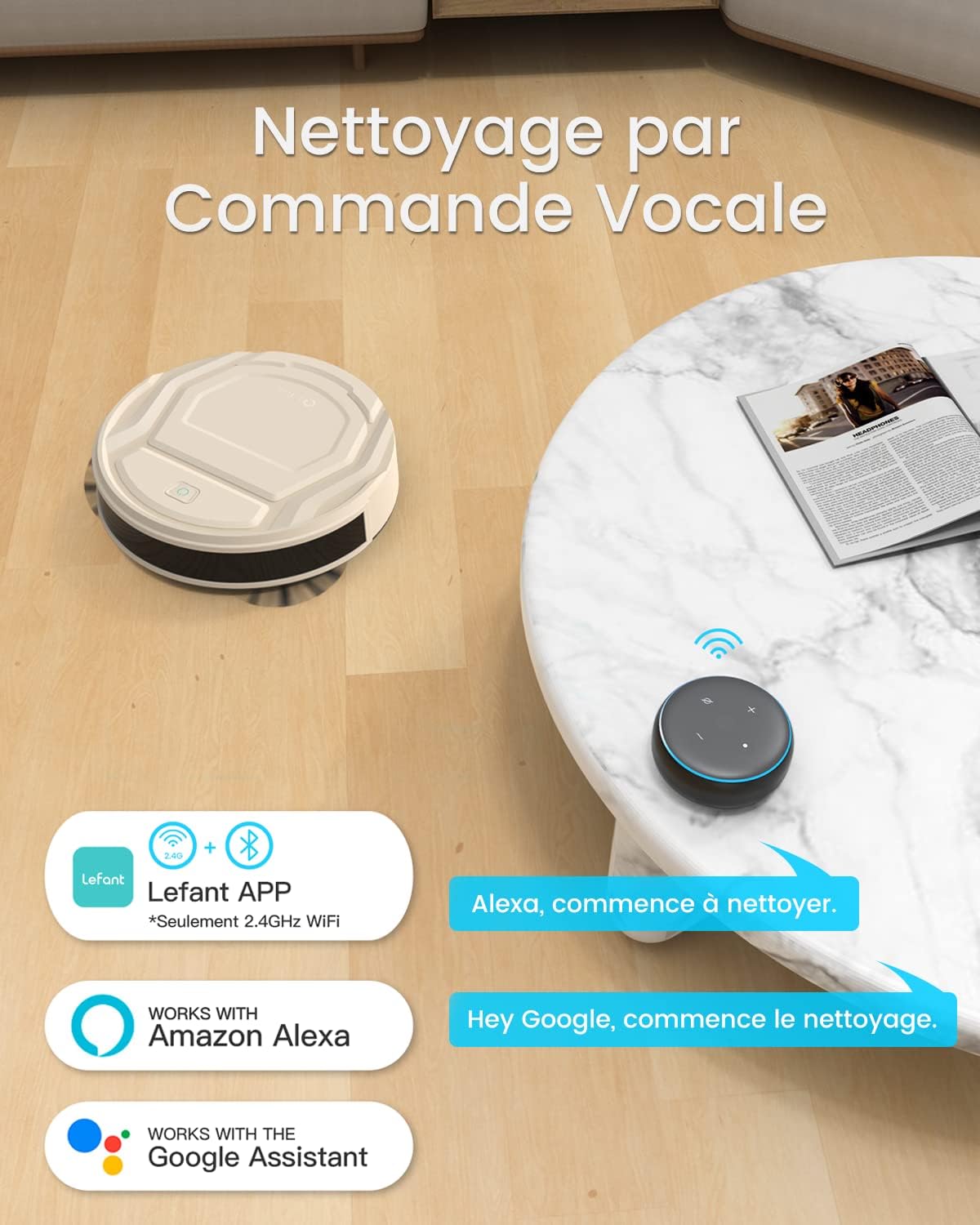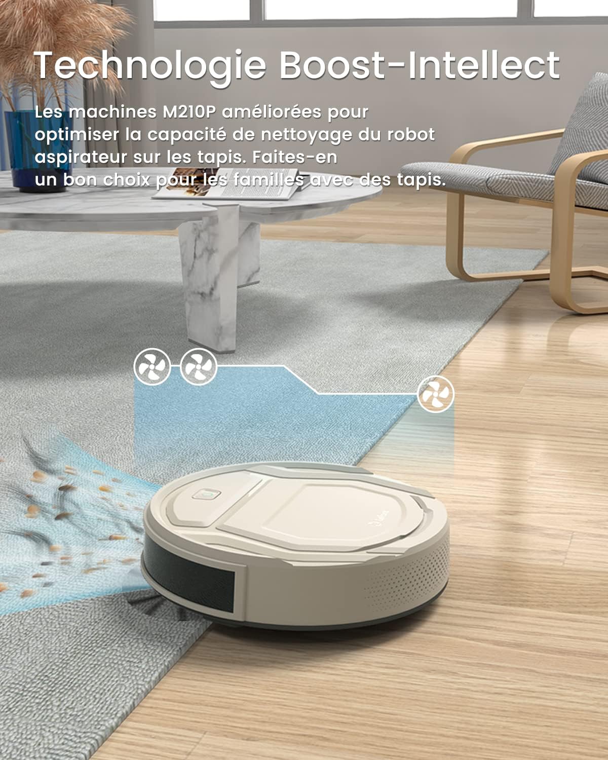 Lefant Aspirateur Robot, Robot Aspirateur Autonomie Mince Silencieux, Connecté avec WiFi/Alexa/App, 3 Modes d'aspirations, Programmable, Idéal pour Les Poils d'animaux Tapis Sols Durs, M210 Blanc