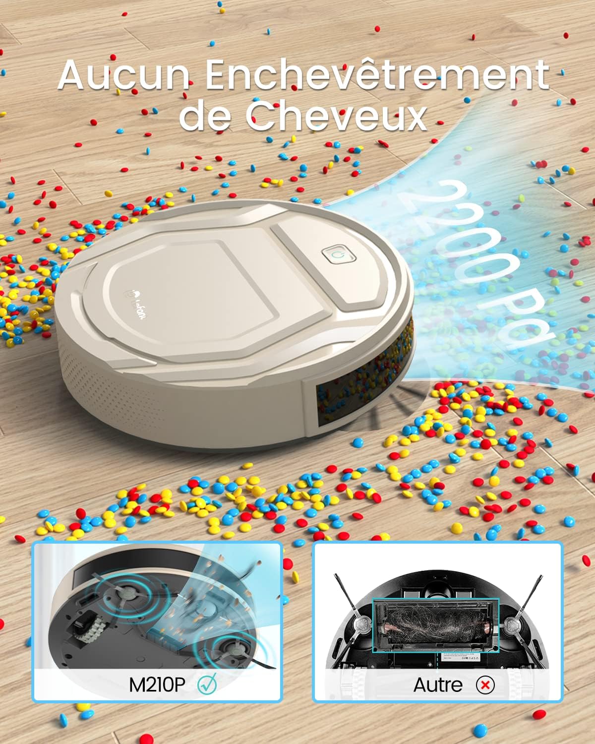 Lefant Aspirateur Robot Mince 2200Pa, Silencieux 55dB, Connecté avec WiFi/Bluetooth/Alexa/App, 120min d'Autonomie, Auto-Charge, Idéal pour Poils d'animaux Sols Durs, M210P Champagne