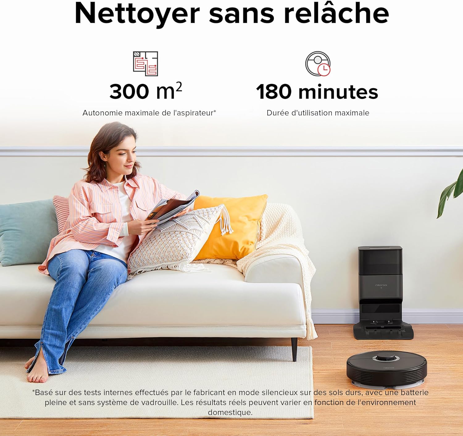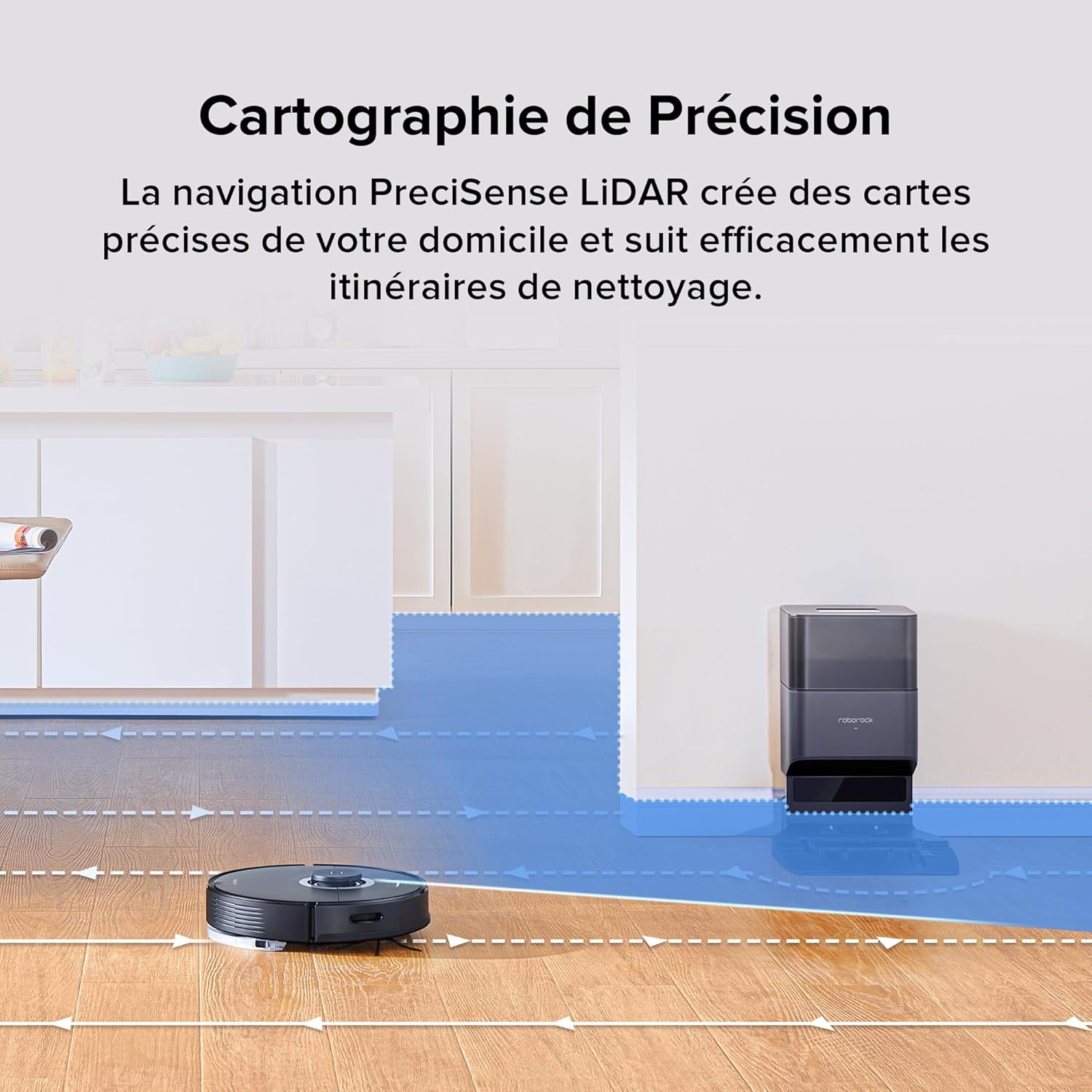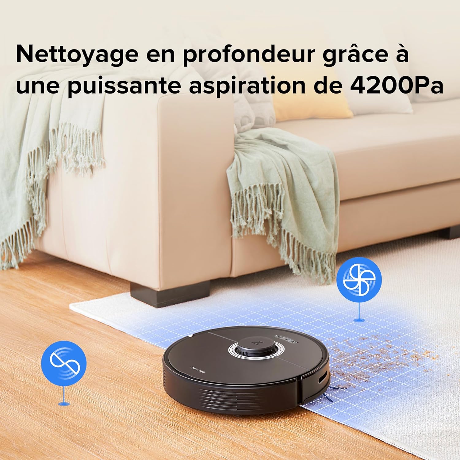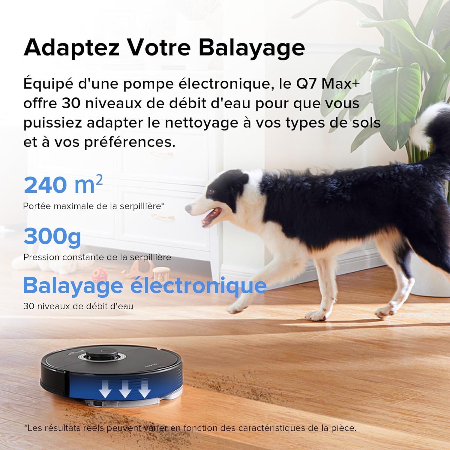 roborock Q7 Max+ Robot Aspirateur et Vadrouille avec Station d'accueil Auto-Vide Pure,Nettoyage Mains Libres jusqu'à 7semaines, 4200Pa,Zones No-Mop&No-Go,180mins d'autonomie,Contrôle APP/Alexa,Noir