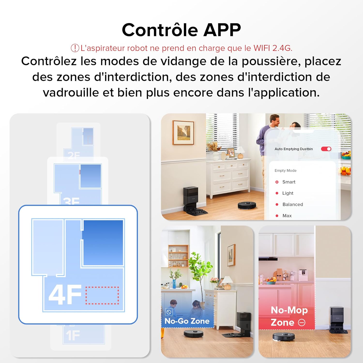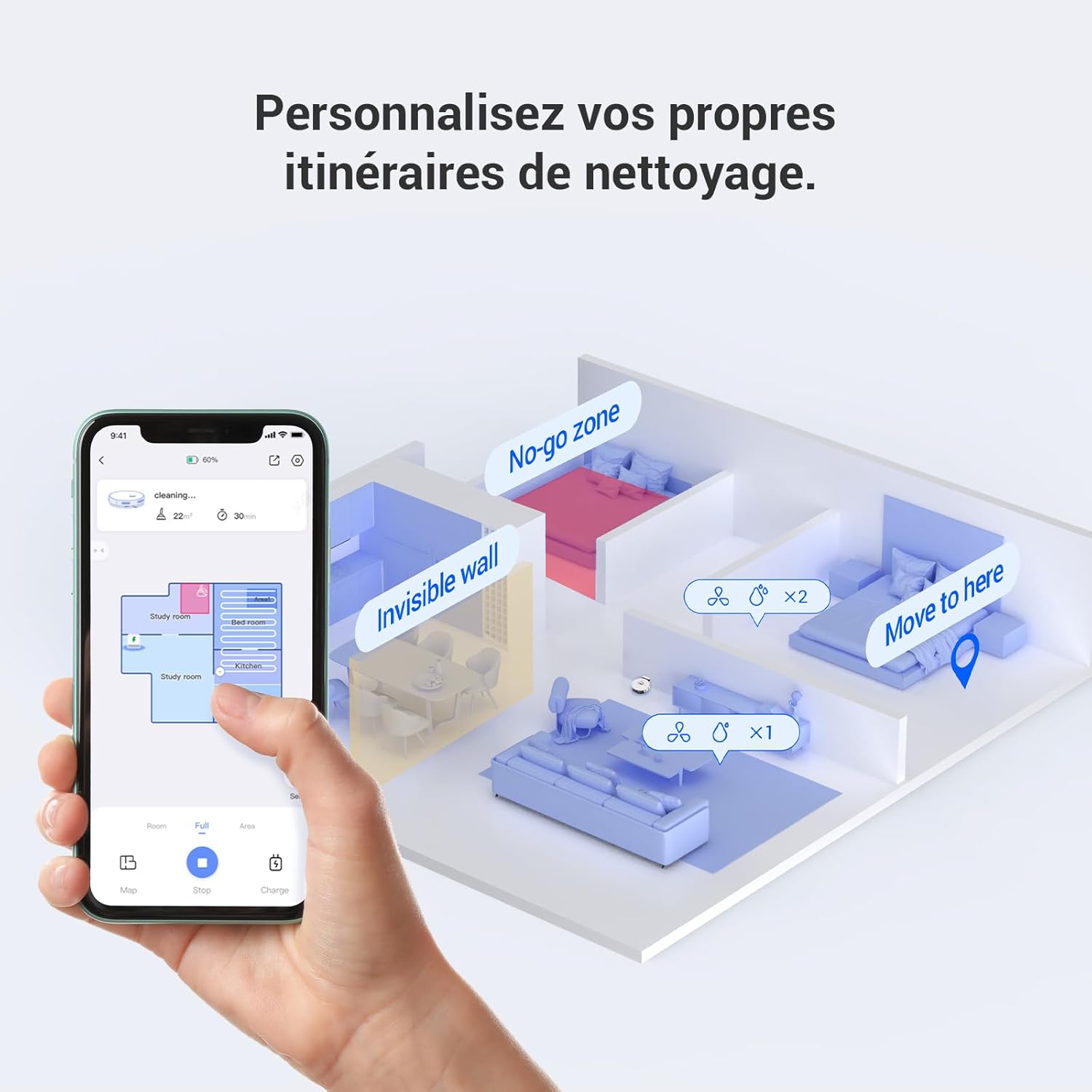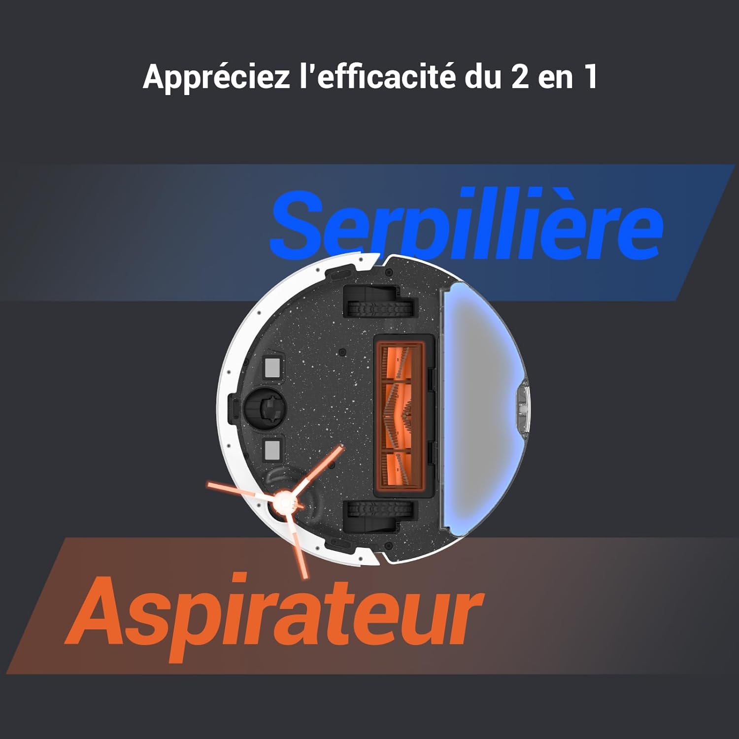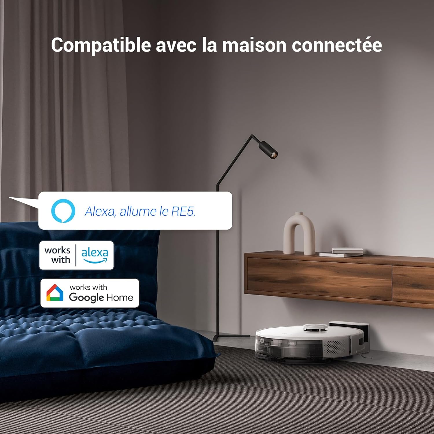 EZVIZ RE5 Aspirateur Robot Laveur 4000Pa, 300 m², Navigation et Planification d'Itinéraire LDS LiDAR, Alexa/APP, Nettoyage Précis et Personnalisé, pour Le Idéal Nettoyage des Tapis & des Cheveux