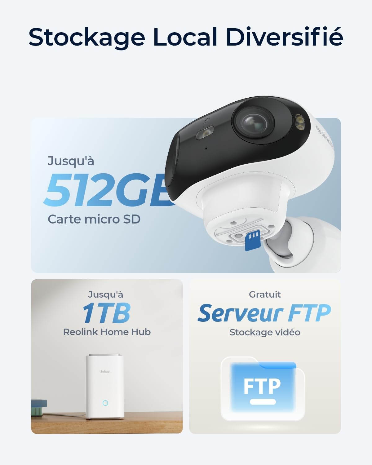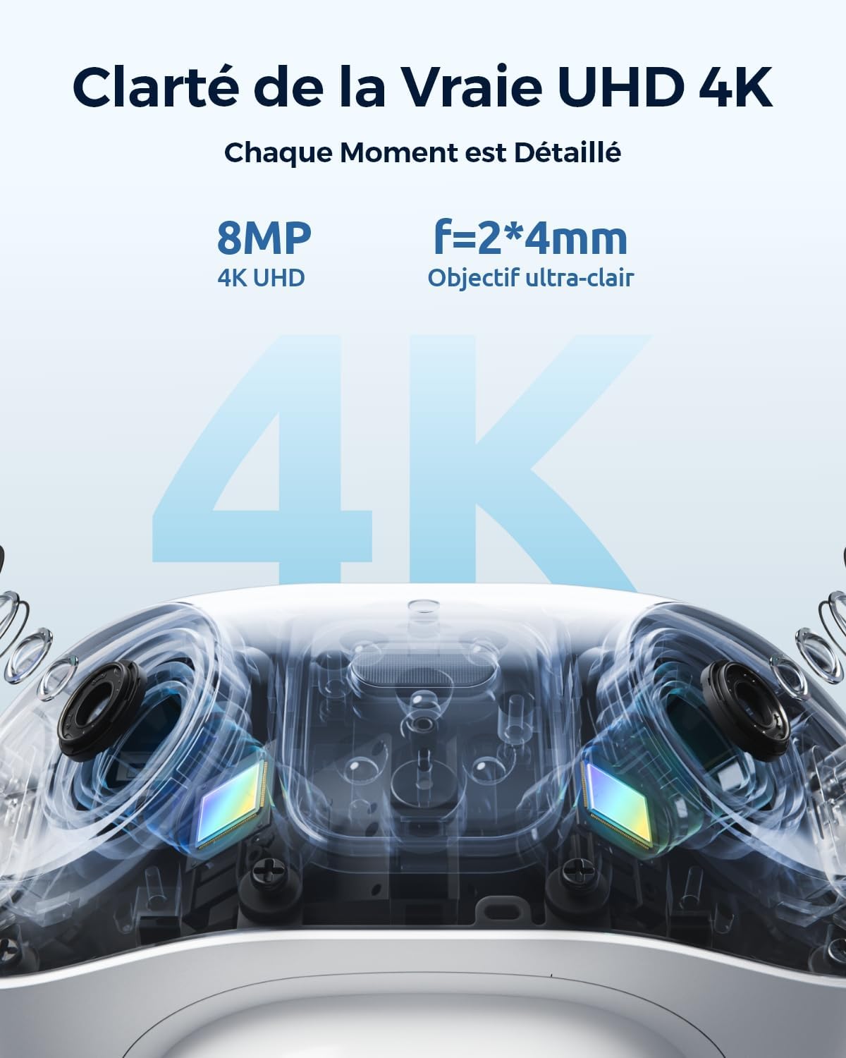 Reolink 180° 4K Camera Solaire Exterieur WiFi sans Filavec Vision