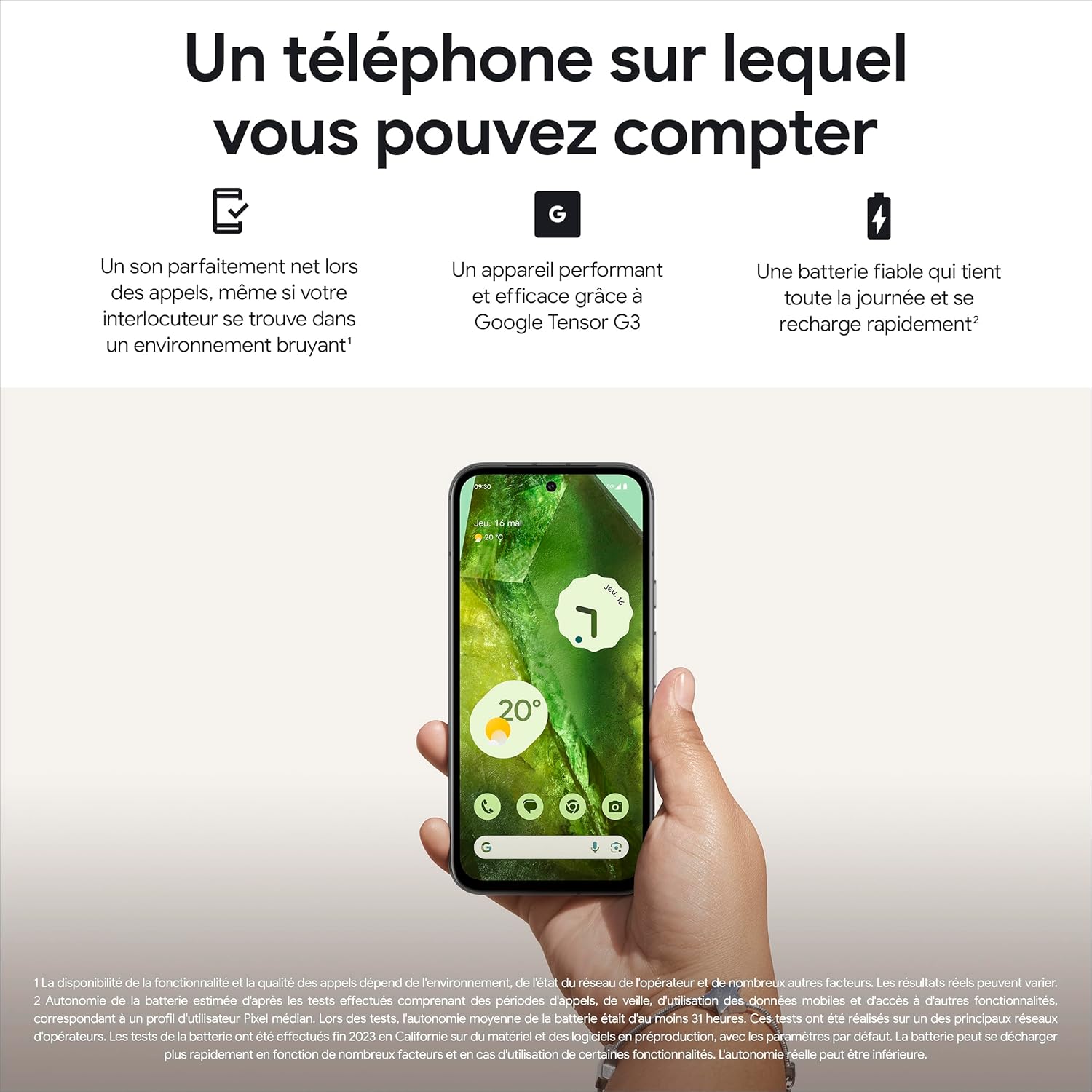 Google Pixel 7a et chargeur - Smartphone Android 5G débloqué avec objectif grand angle et 24 heures d'autonomie - Océan
