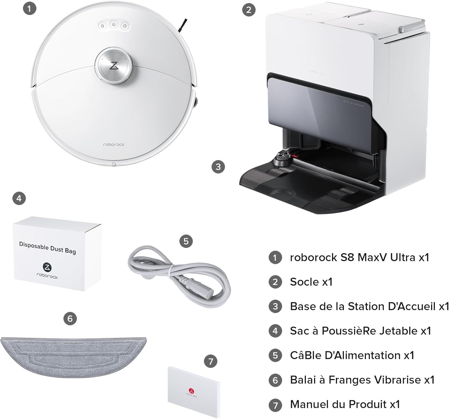 roborock S8 MaxV Ultra Aspirateur Robot avec 8-en-1 Station, Robot Aspirateur Laveur avec Brosse Latérale & DuoRoller Aspiration 10000 Pa, Auto-Nettoyage du Serpillière et de la Planche à Linge à 60℃