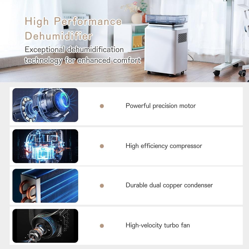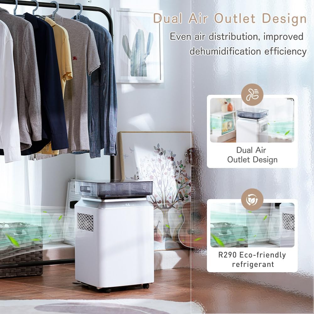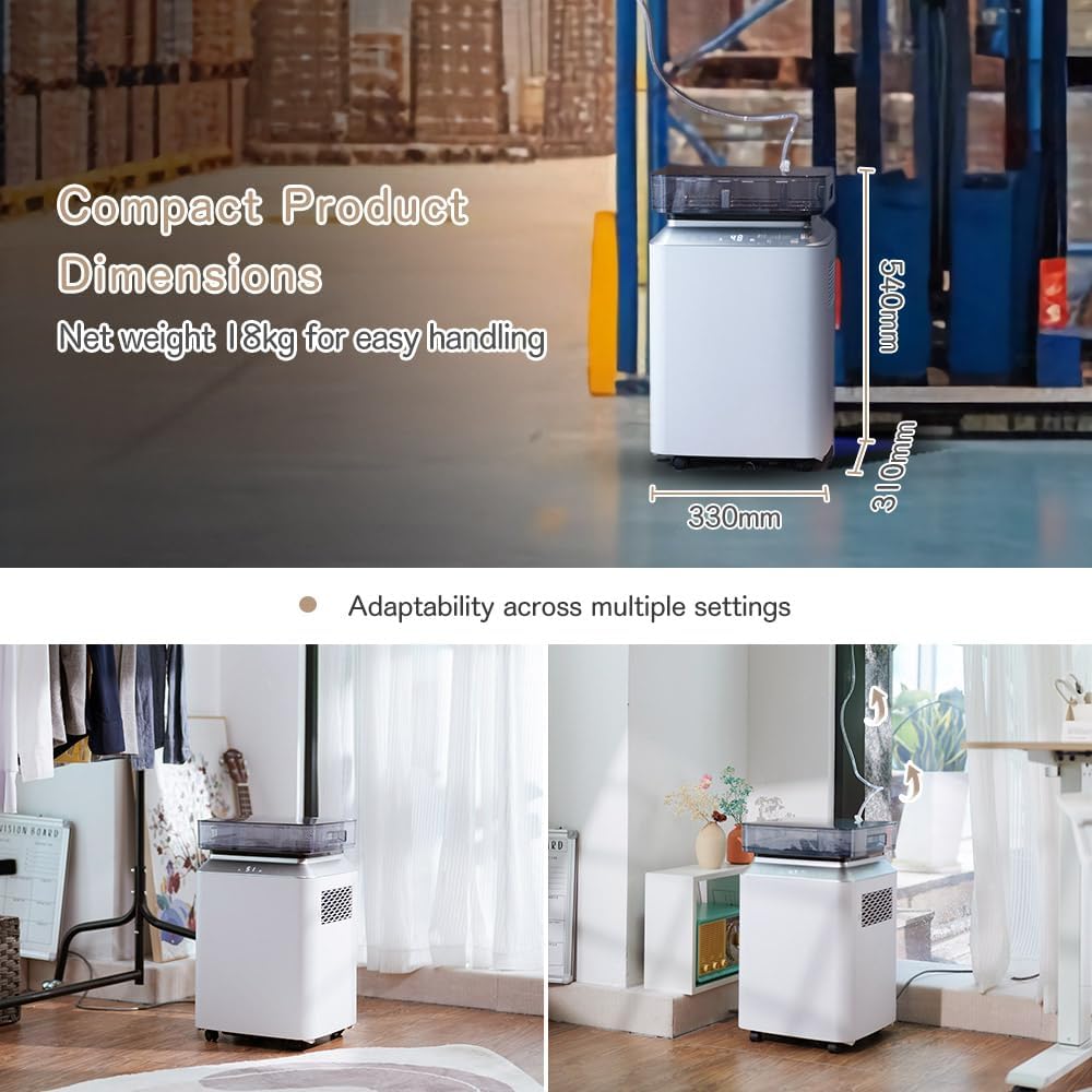 Kalopsia 50L/Jour Deshumidificateur Electric Commercial: Déshumidificateurs avec Pompe et Tuyau de Drainage Deshumidificateurs Compresseur Écologique R290 Minuterie 24Hr Déshumidificateur Cave Garage