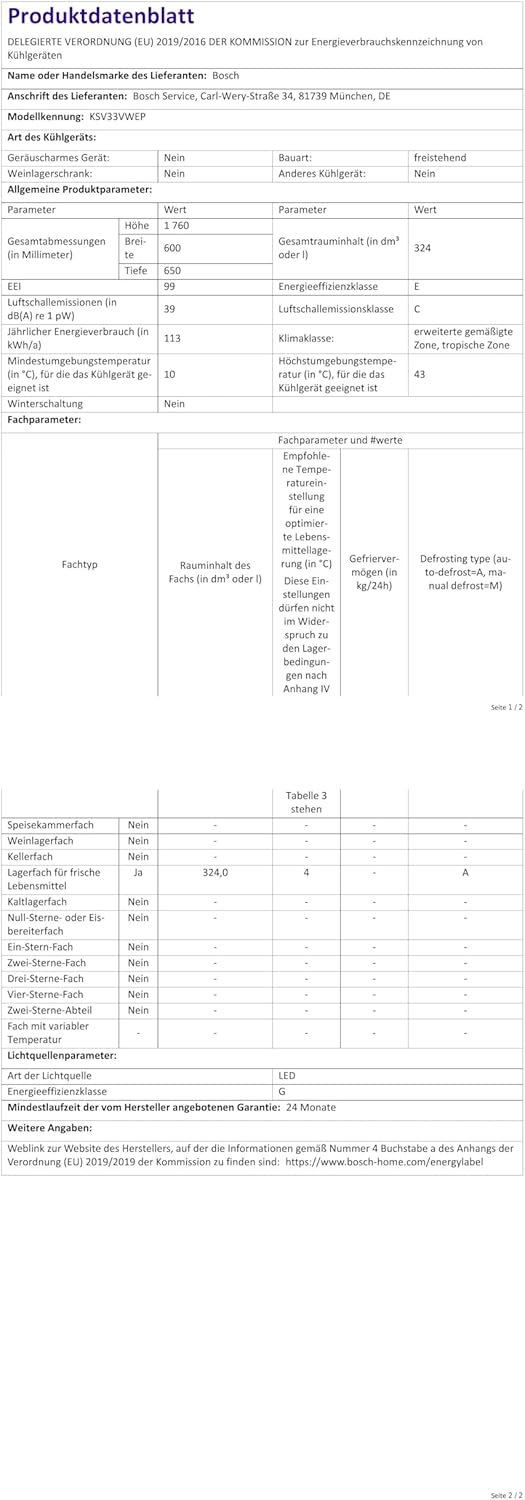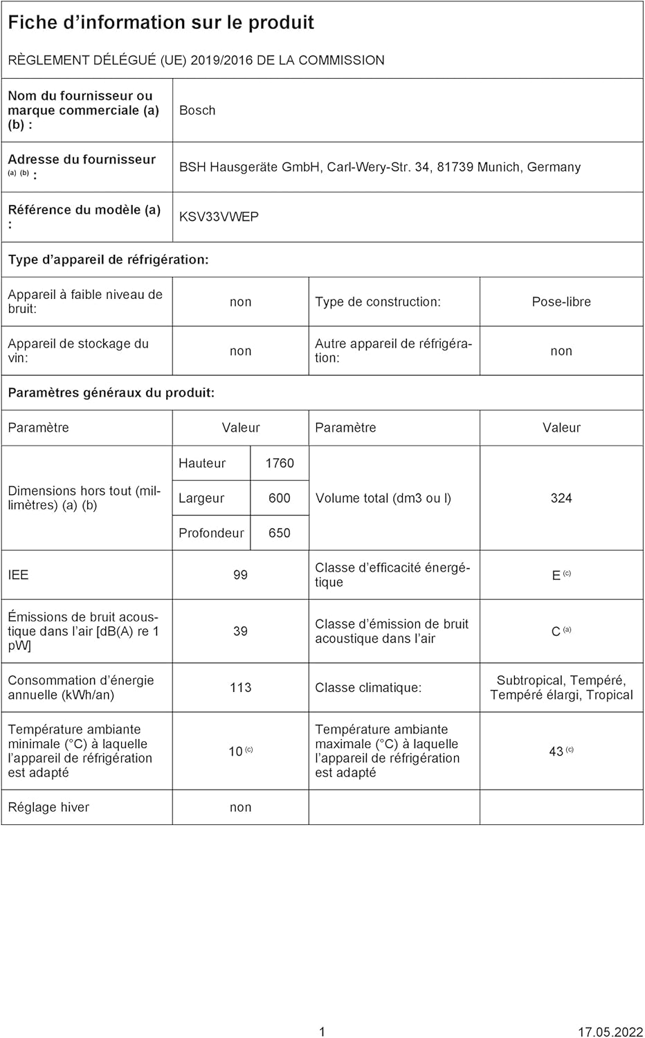 Réfrigérateur pose libre Bosch KSV33VWEP VitaFresh Série 4 - 324 litres - Blanc