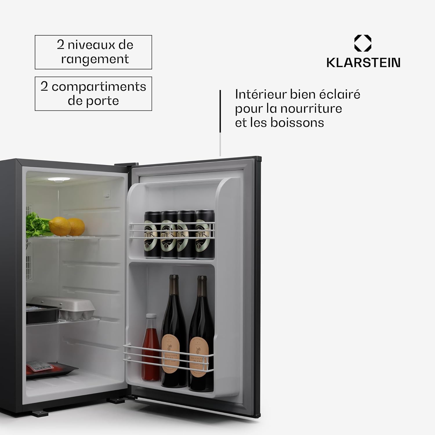 Klarstein Mini réfrigérateur et congélateur intérieur 68 L, réfrigérateur à étagères réglables