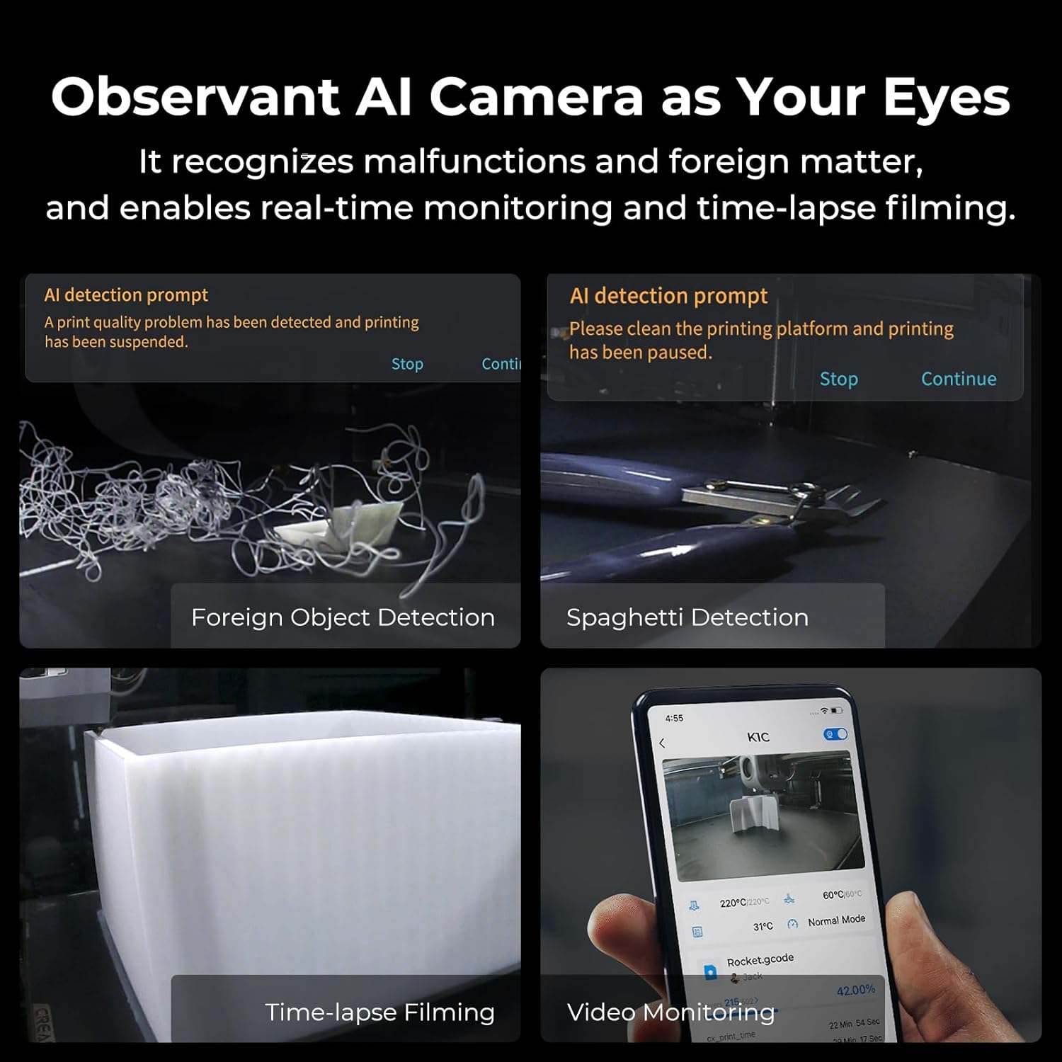 Imprimante 3D Creality K1C - 220x220x250mm, adaptée aux débutants en enseignement à domicile
