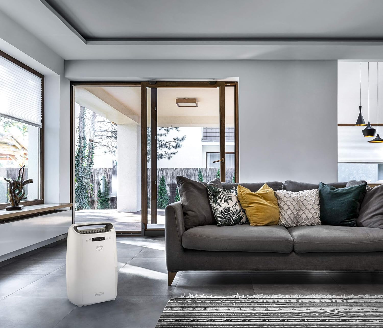 De'Longhi Tasciugo AriaDry Multi Déshumidificateur DEXD214RF, Déshumidificateur Portable avec Filtration à 3 Actions, Fonction Séchage, Déshumidification 14L/Jour, R290, Réservoir Amovible, Blanc