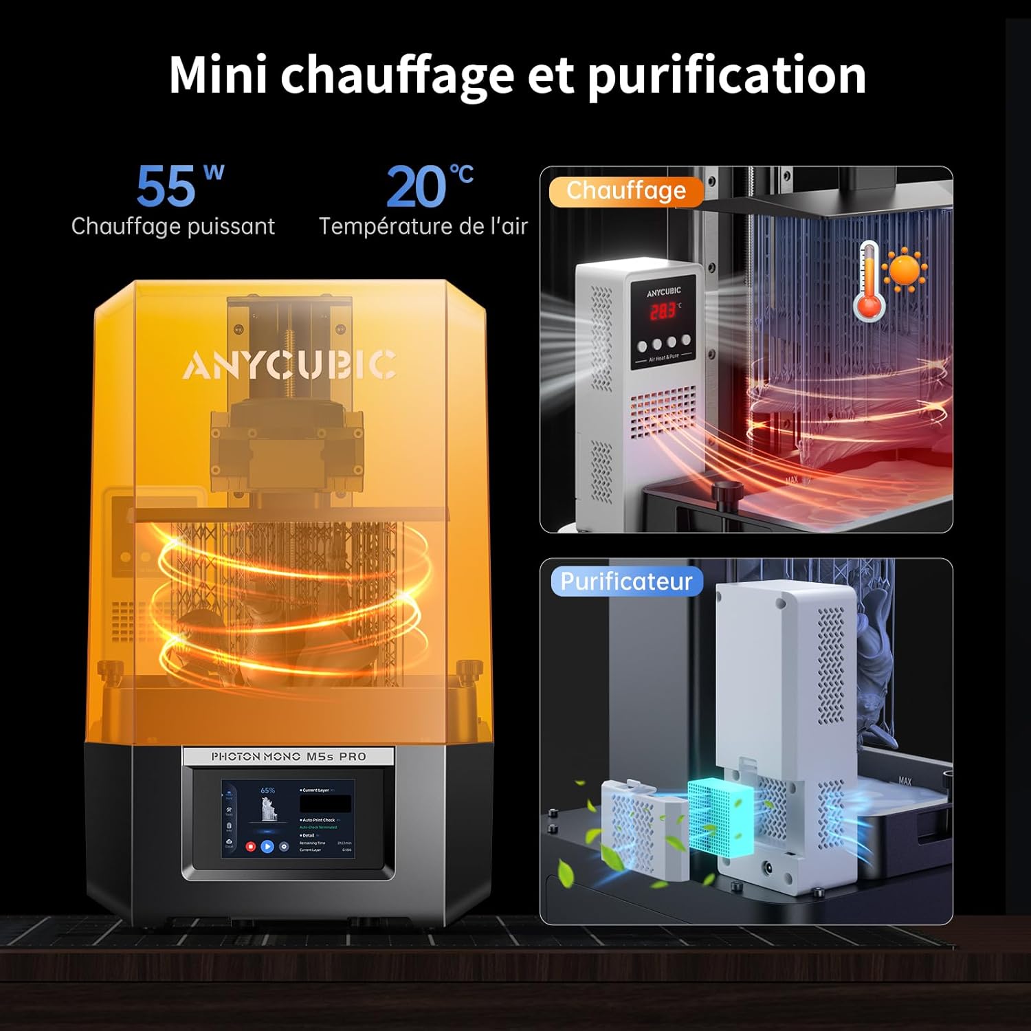 ANYCUBIC Photon Mono M5s Pro Ultra 14K Imprimante 3D en résine avec chauffage et purificateur - 223,78 x 126,38 x 200 mm