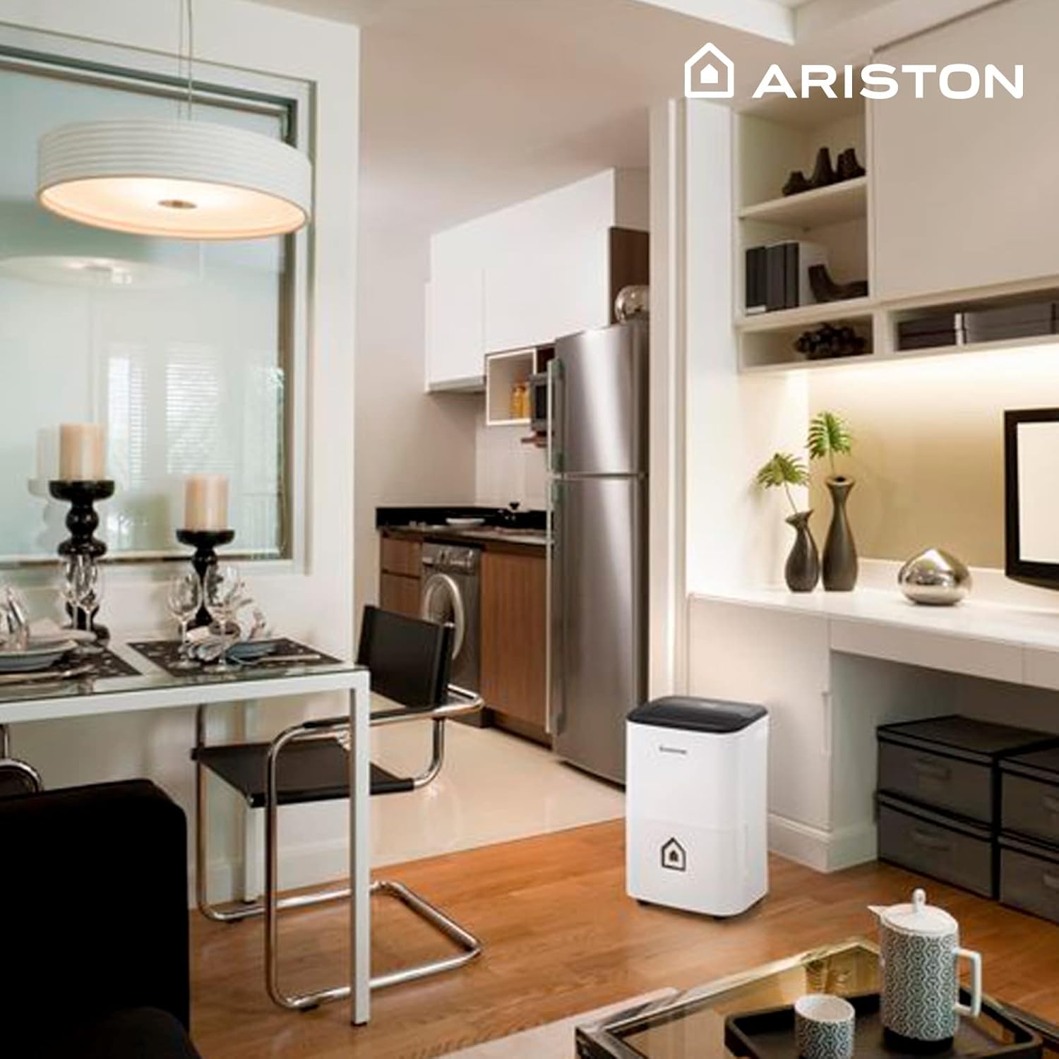 Ariston Deos 21S NET WiFi Déshumidificateur Portable avec Réservoir 21L-Contrôle Électronique du niveau d‘Humidité, pour des pièces allant jusqu'à 52 m². Conçu et fabriqué pour être installé en France