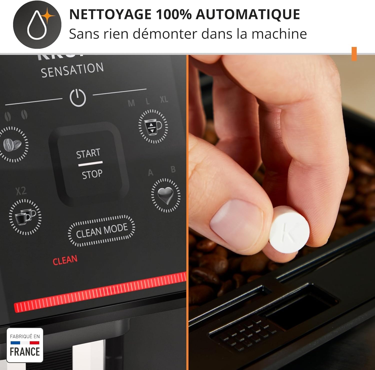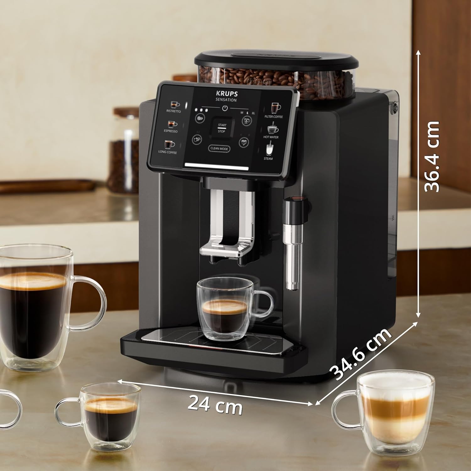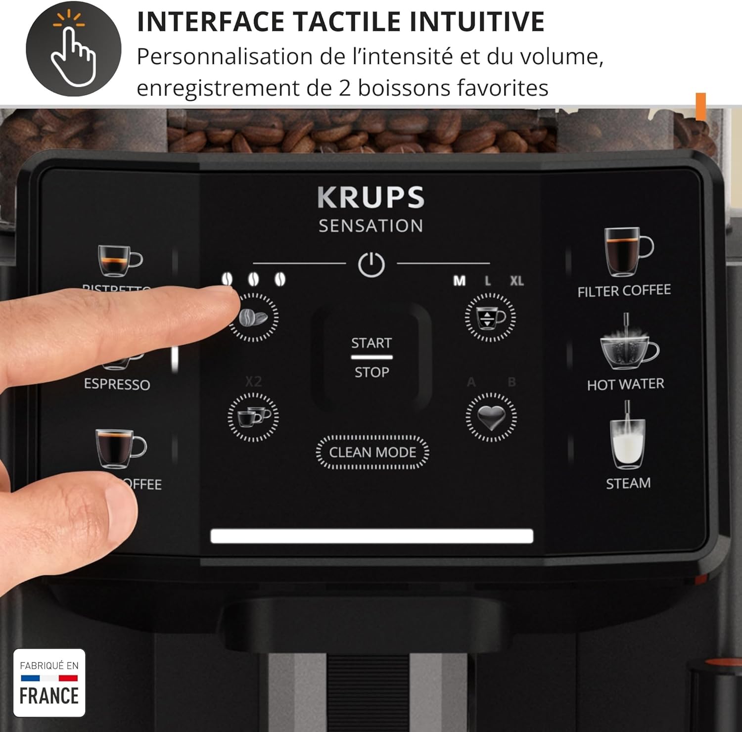 Krups Sensation C50, Machine à café grains, machine expresso, 5 boissons accès direct, Interface tactile, Facile à utiliser, Nettoyage automatique, Buse vapeur Cappuccino, Fabriqué en France EA910810