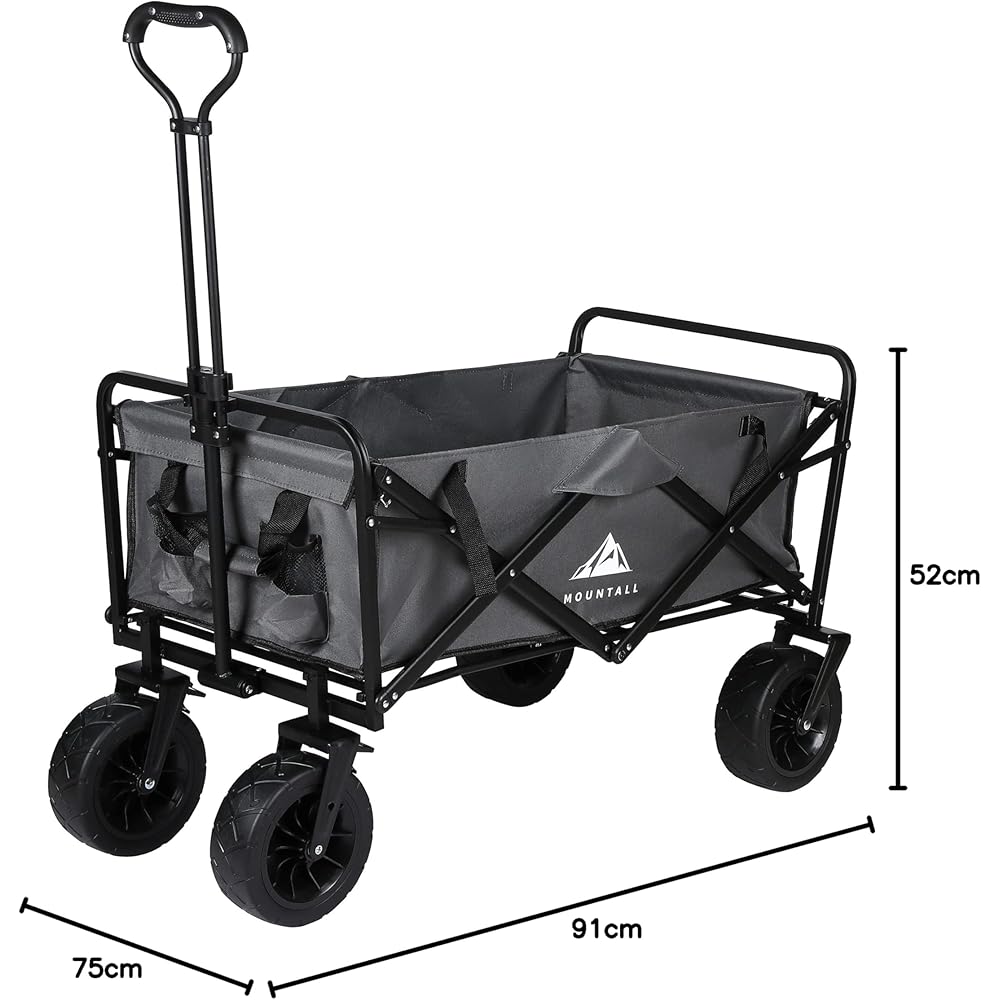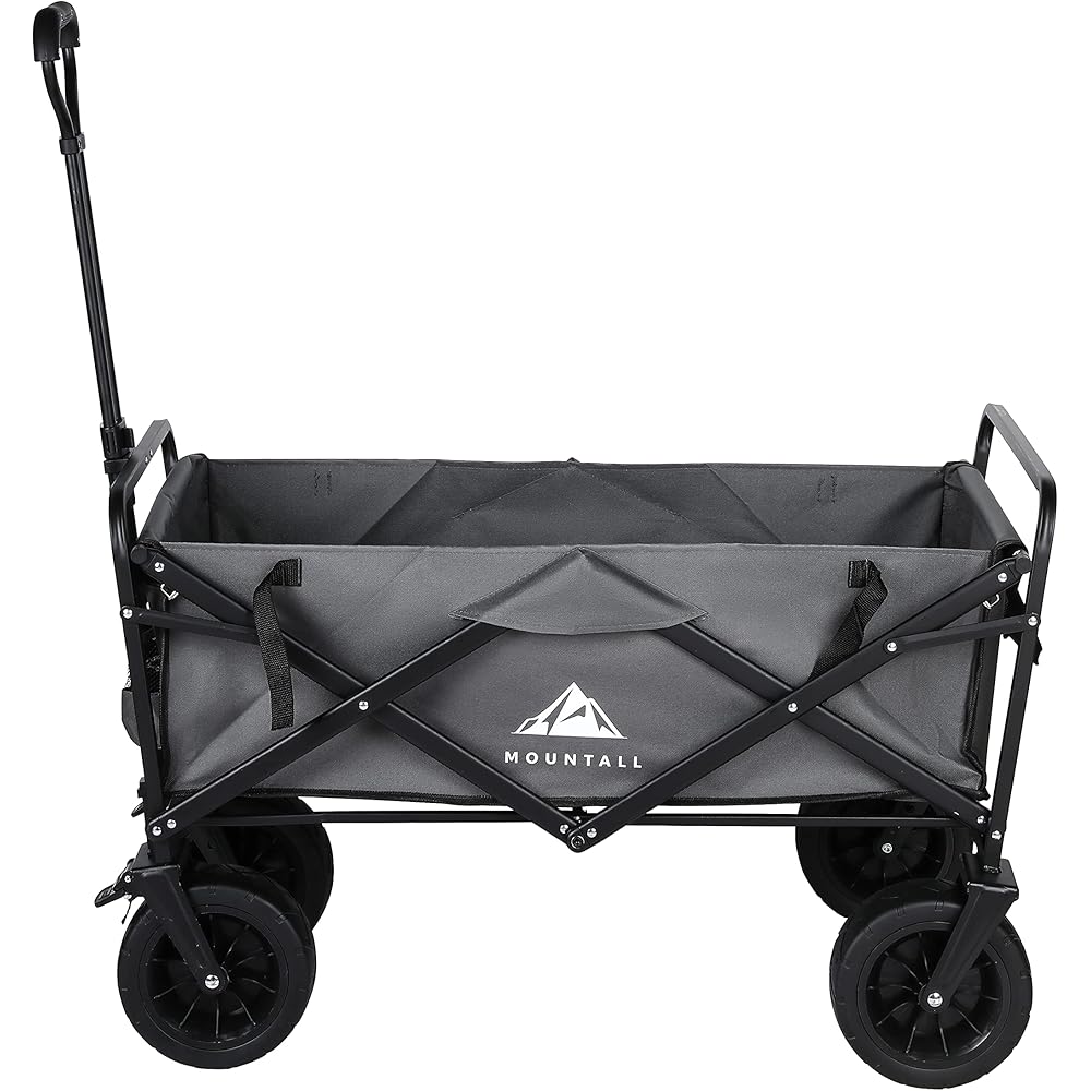 Chariot pliable robuste avec grande roue, chariot de transport en plein air, remorque de jardin, chariot utilitaire avec housse (gris) : Cuisine et Maison