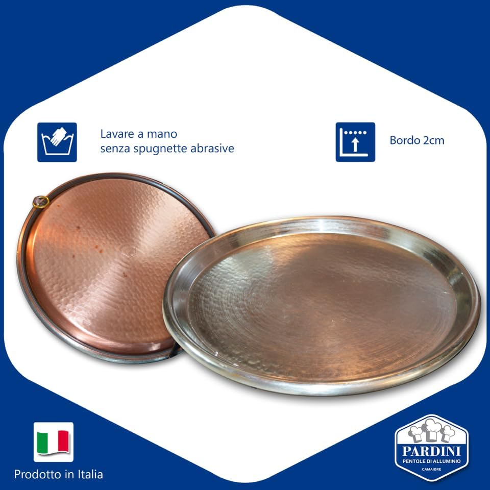 PARDINI Plat rond en cuivre étamé, bord 2 cm, diamètre 32 cm, idéal pour farinade, tessine, pizza ou focaccia : Cuisine et Maison
