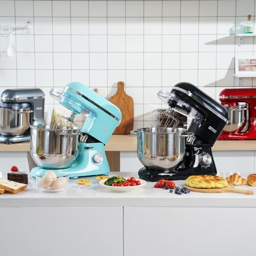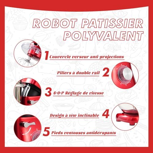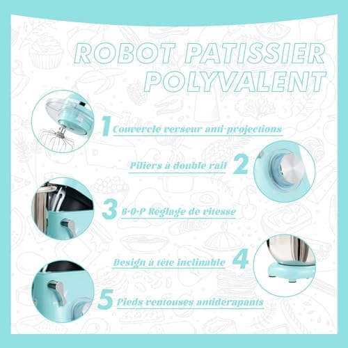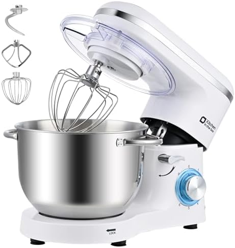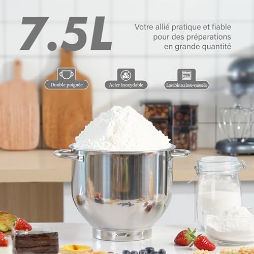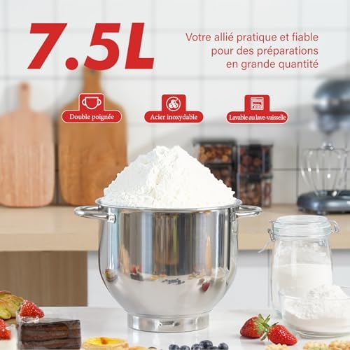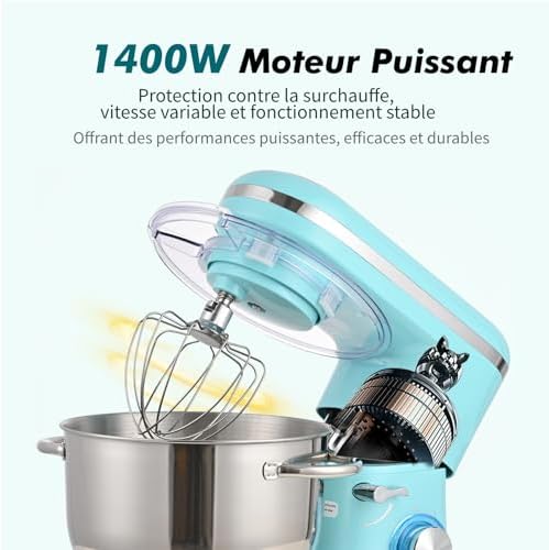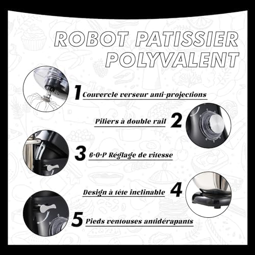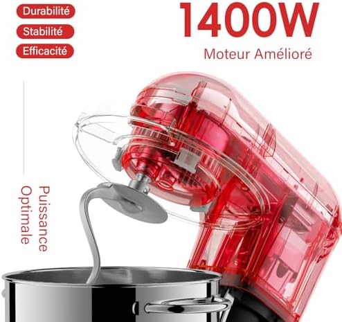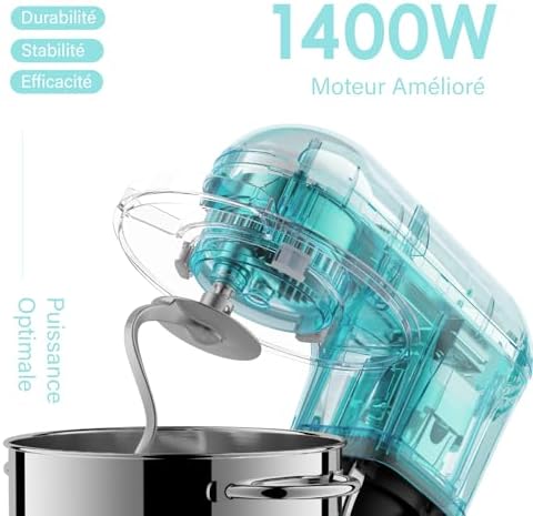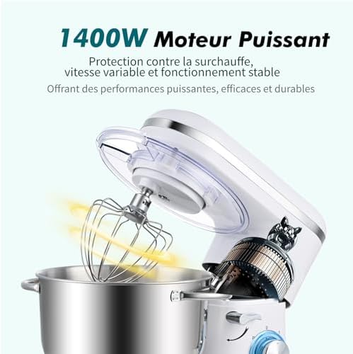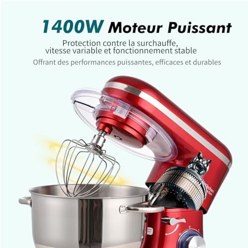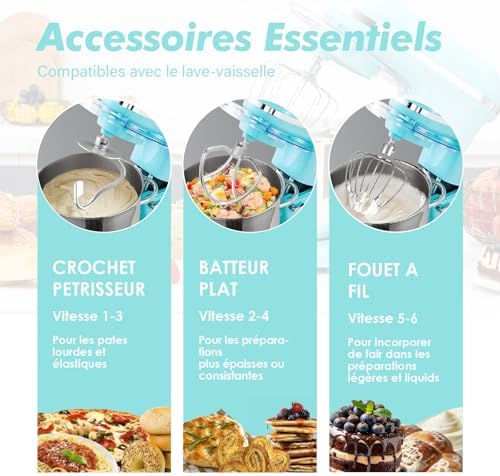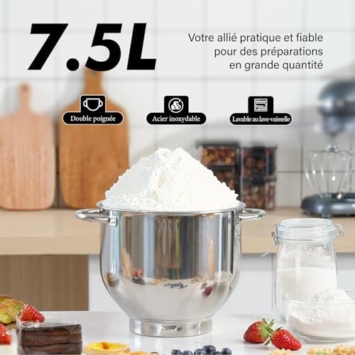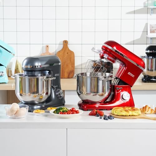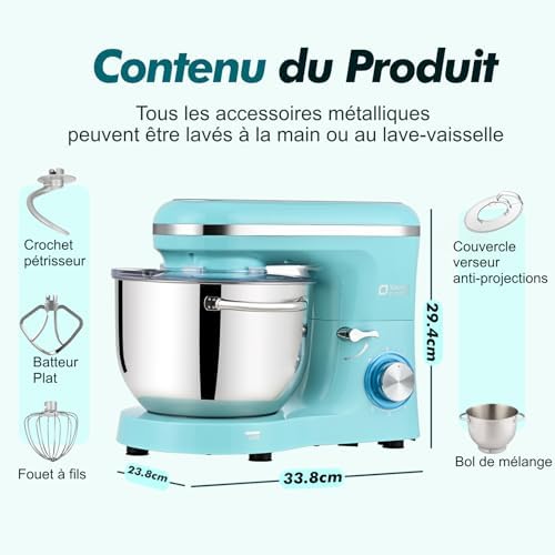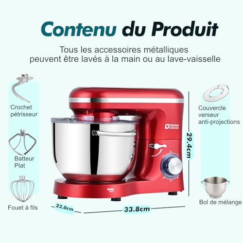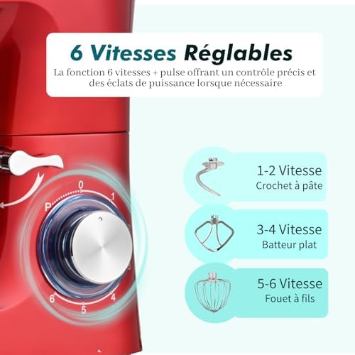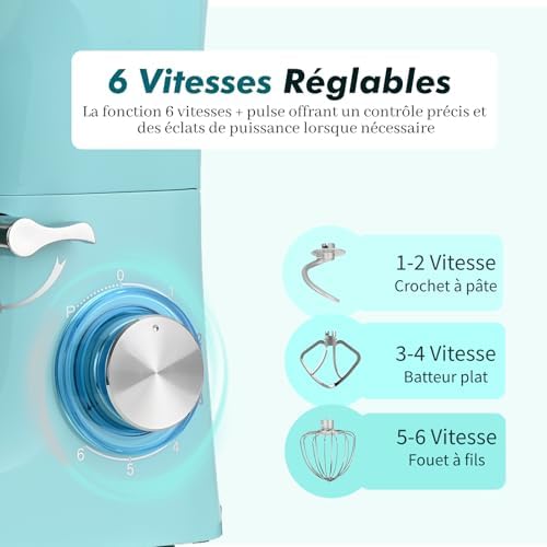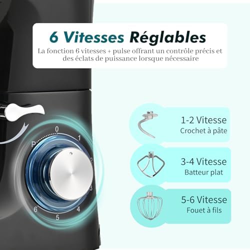 Kitchen in the box Robot Pâtissier 1400W, Bol 6,2L en Acier Inoxydable, 6 Vitesses, Fouet, Crochet et Batteur Inclus, Idéal pour Pâtisserie et Boulangerie (Gris) : Cuisine et Maison