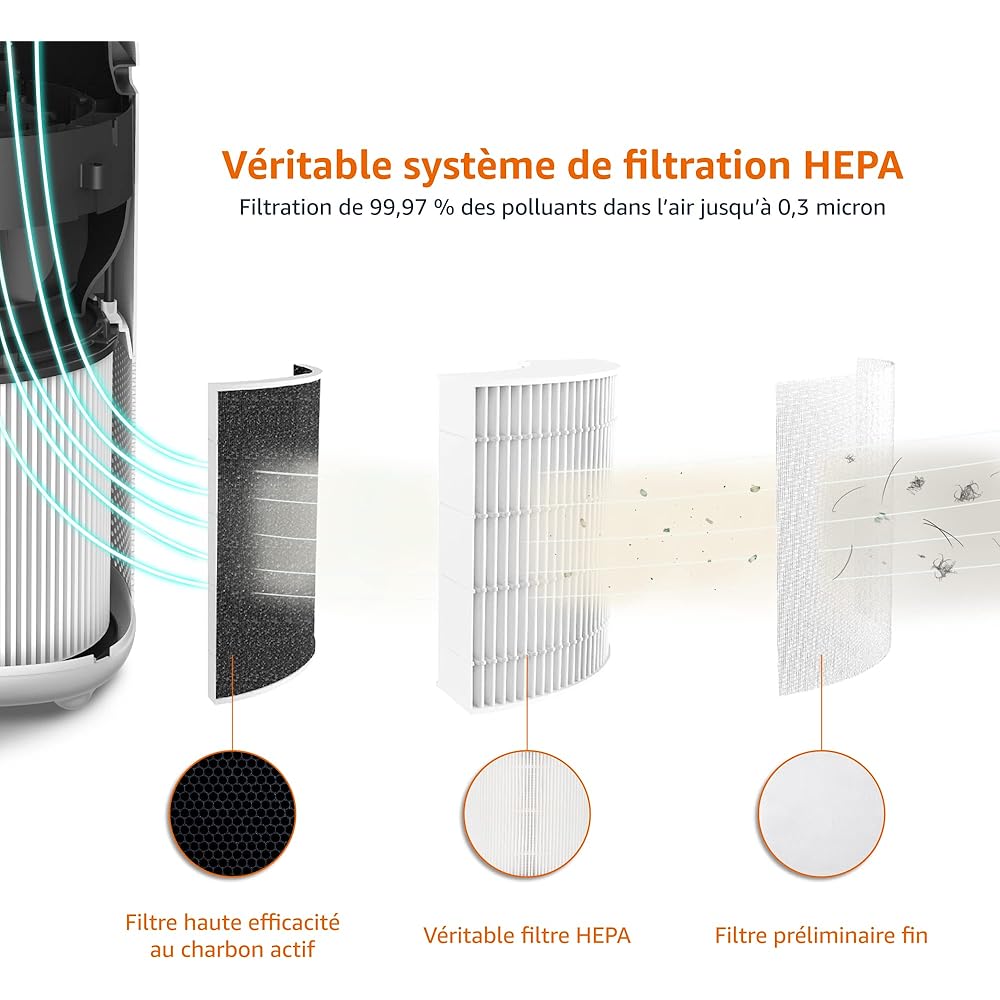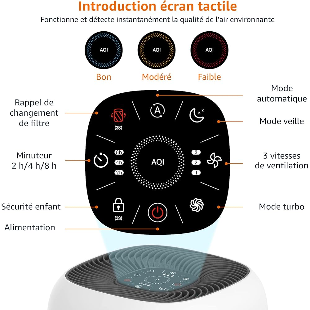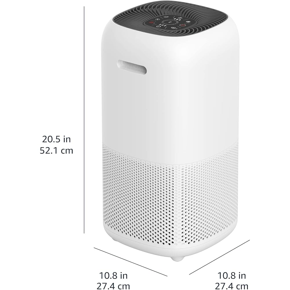 Amazon Basics - Purificateur d'air, Couvre 48 m2, Filtre True HEPA, élimine 99,97 % des allergènes (poussière, fumée, pollen), Capteur intelligent de la qualité de l'air, Prise européenne, Blanc : Cuisine et Maison