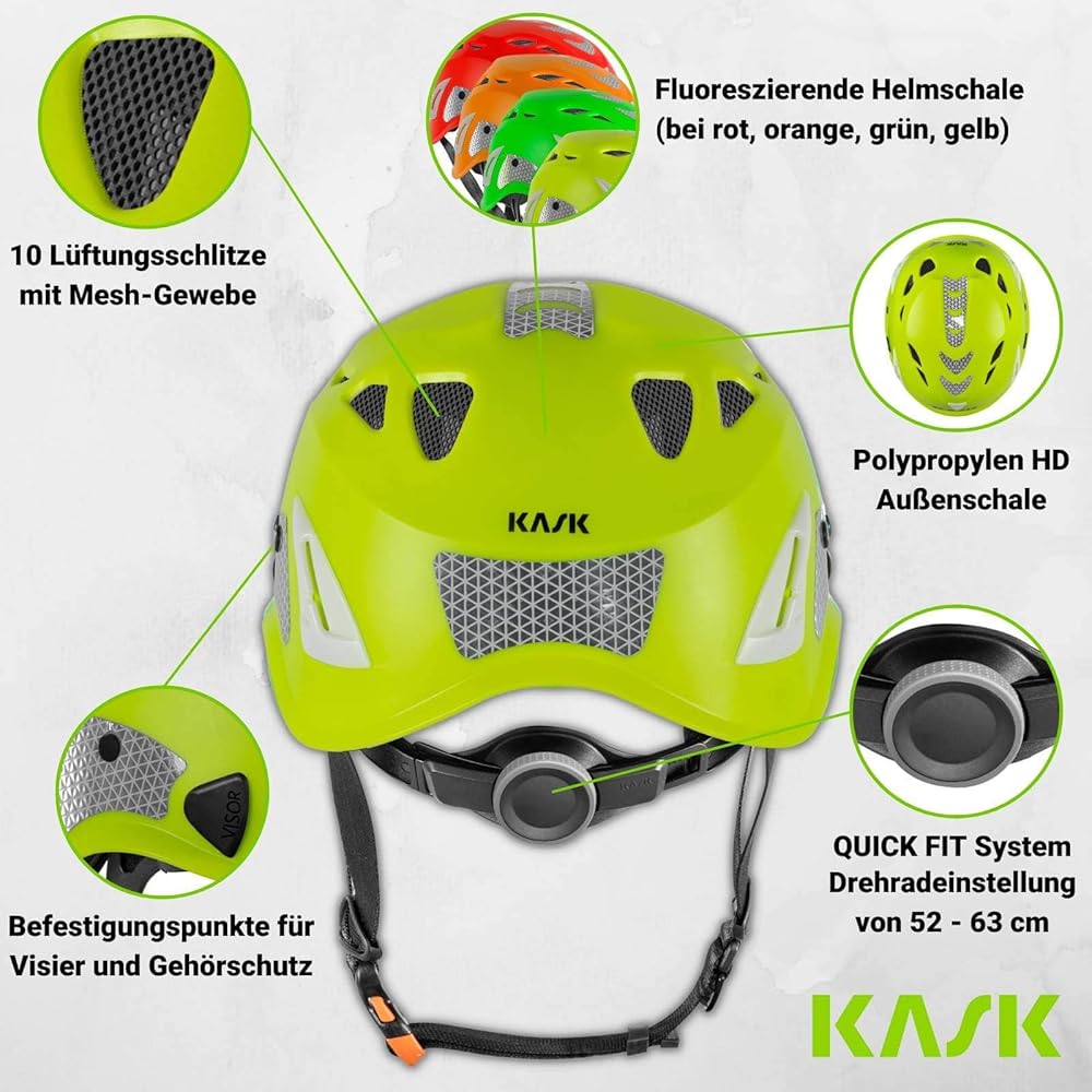 KASK Superplasma HI VIZ Casque de protection de travail, molette, bandes réfléchissantes, EN 397, couleur : blanc : Bricolage