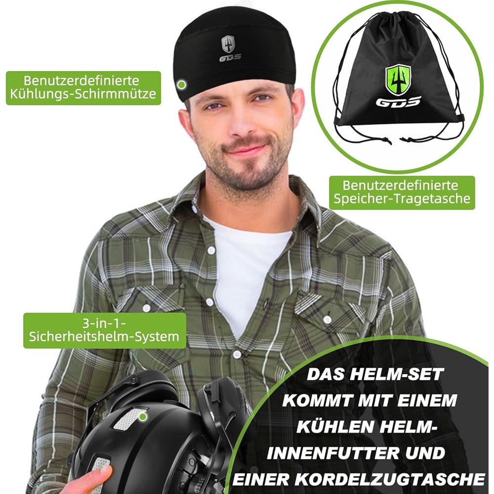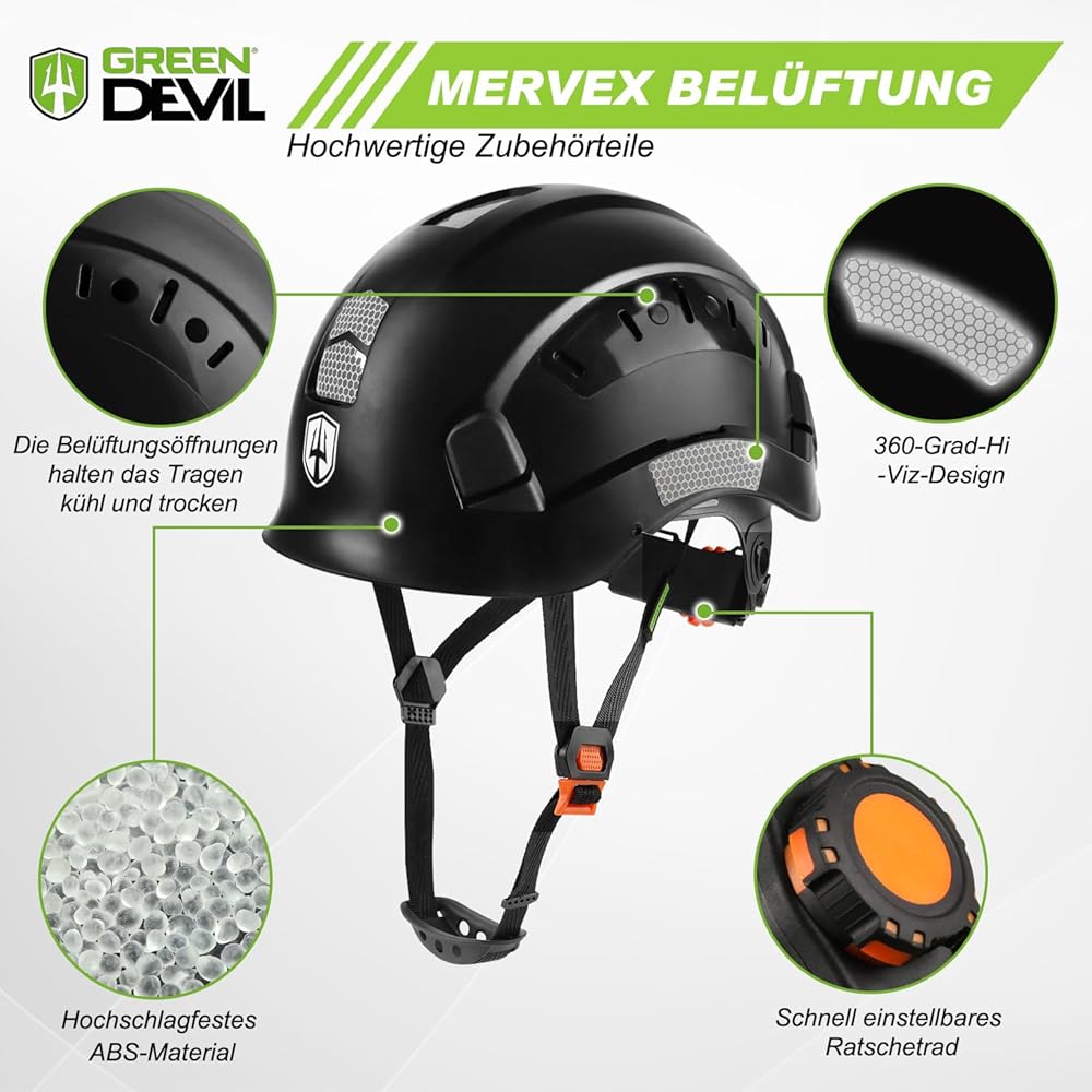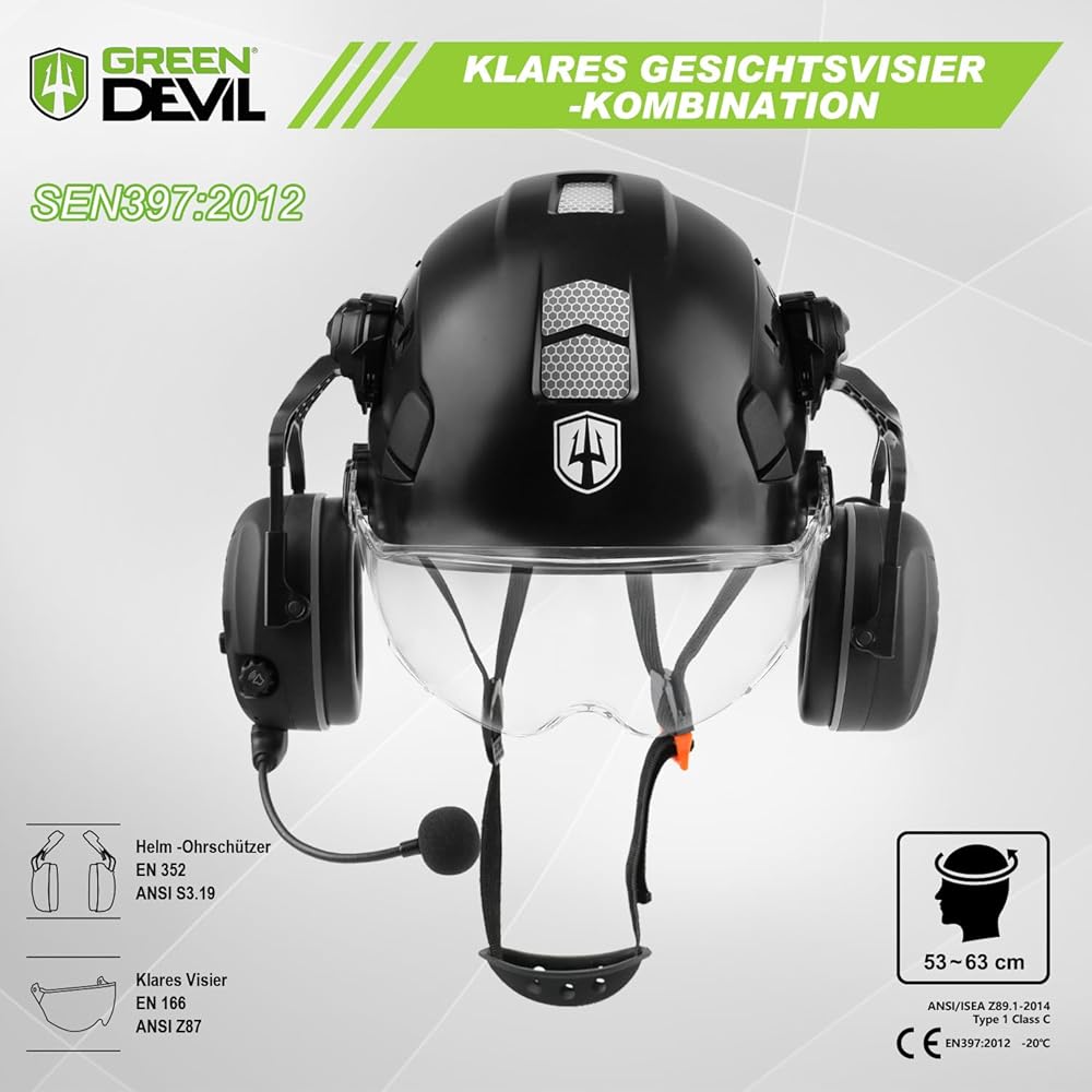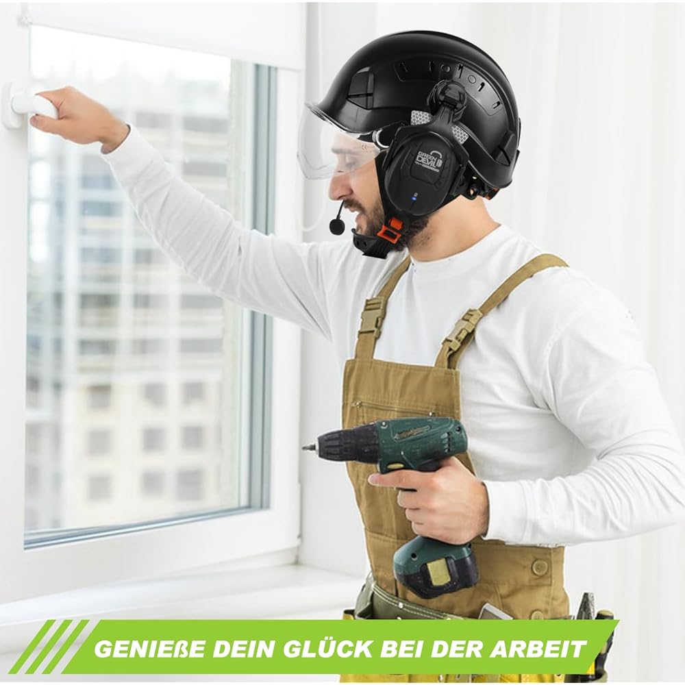 GREEN DEVIL Mervex Vent Casque de protection avec protection auditive active et visière transparente Casque de travail ABS Casque de sécurité EN 397 Casque industriel EN352 SNR 32 dB avec Bluetooth : Bricolage