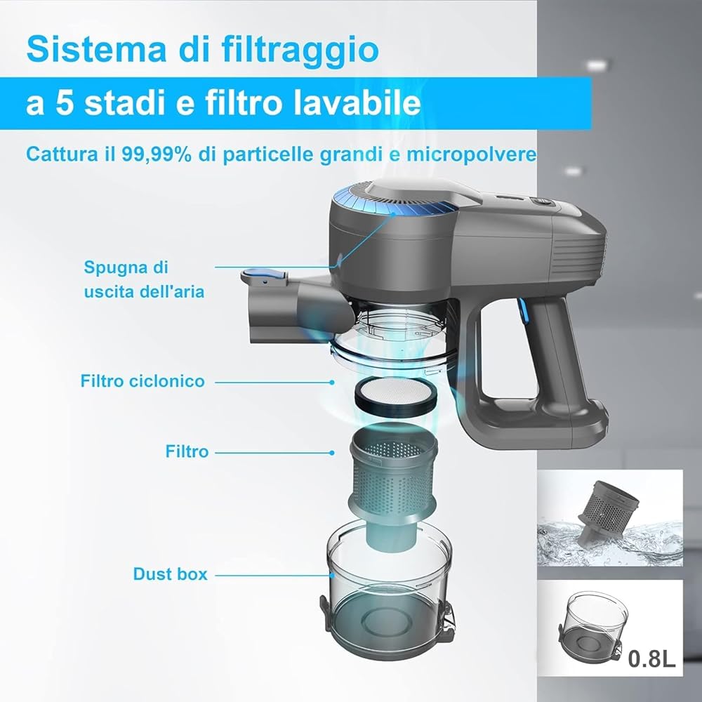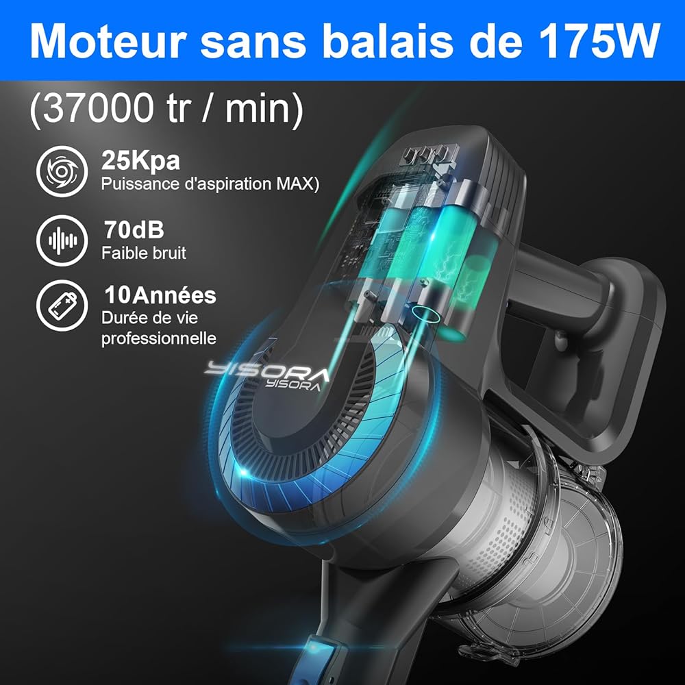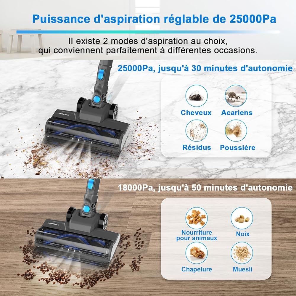 Aspirateur Balai sans Fil N300, 25KPa & 2 Vitesses, Aspirateur sans fil 175W, Aspirateur Léger, 50Min Autonomie, 6 en 1 Aspirateur Balai sans Sac pour Les Poils d'animaux, Tapis, Canapé, Voiture : Cuisine et Maison