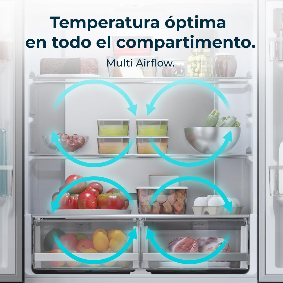 CHIQ CCD503NEIBE Réfrigérateur Américain, Multi-Portes 503 L, Inverter Compressor, No Frost, Multiple Airflow Care, Panneau tactile, Hauteur 177,5 cm,