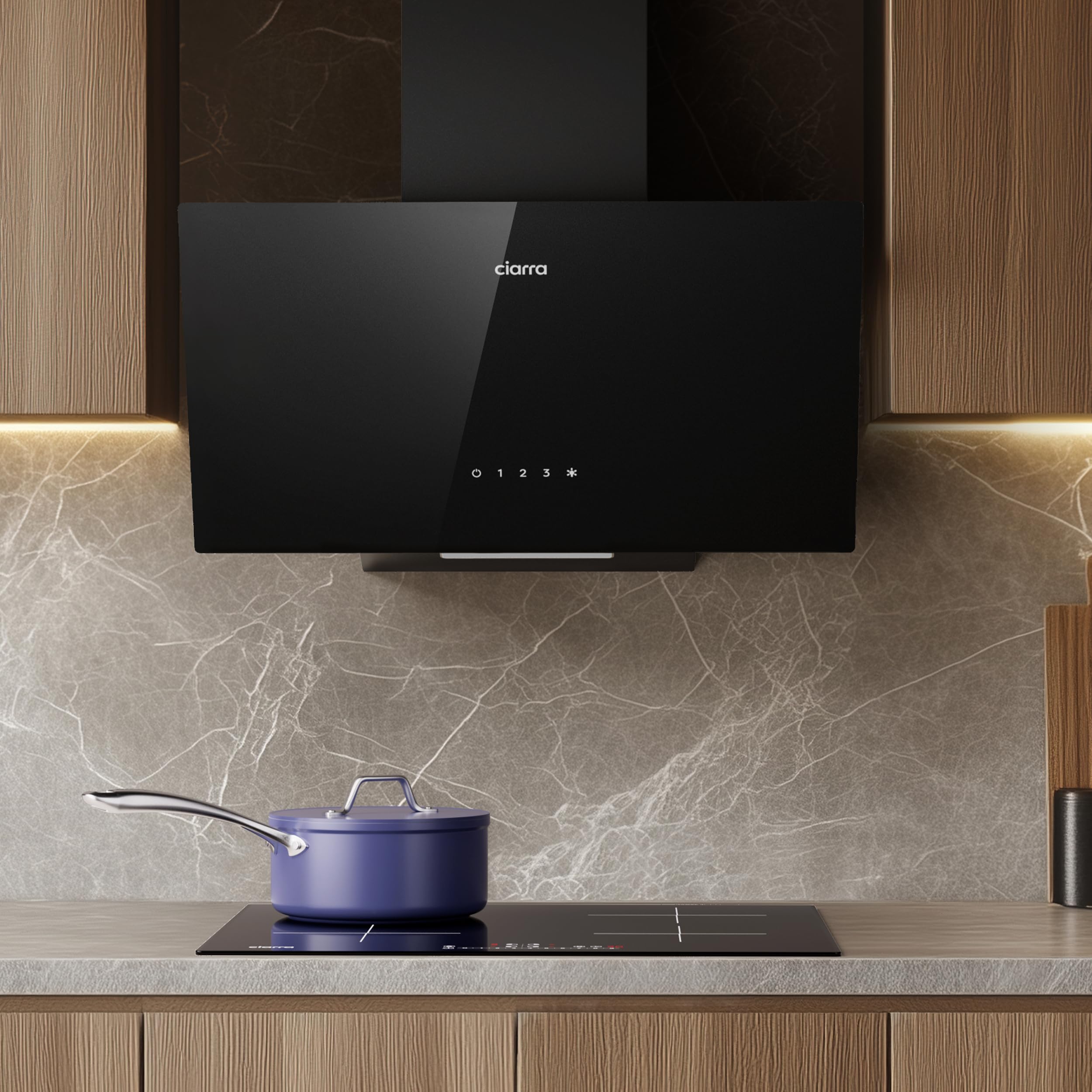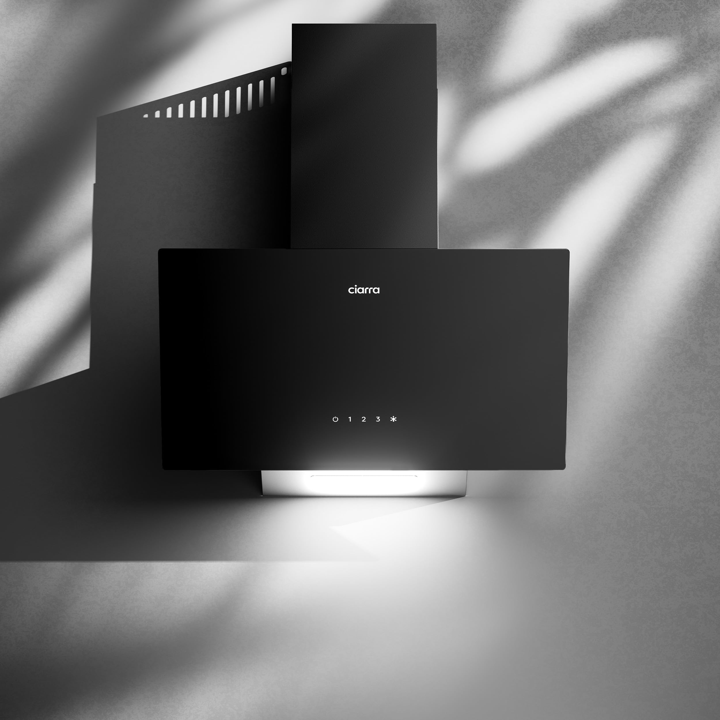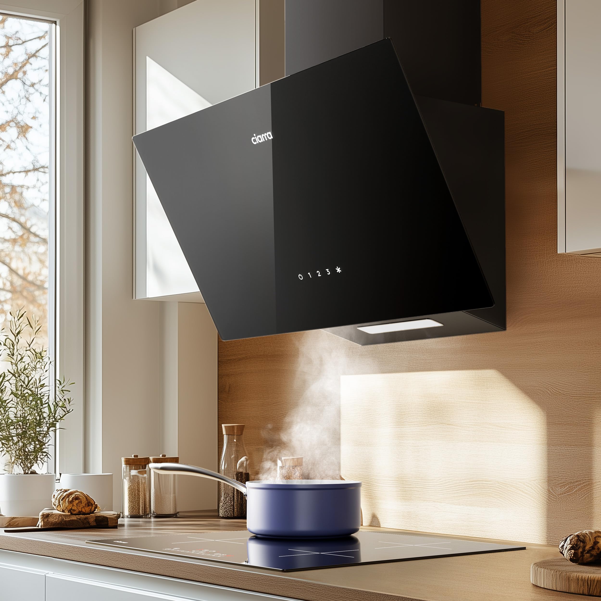 Ciarra CBCB6736F Classe A+++ Hotte Aspirante Inclinée 60cm - 650m³/h - Commande Tactile & Wi-Fi - Fonction Boost - Design en Verre Élégant - Noir