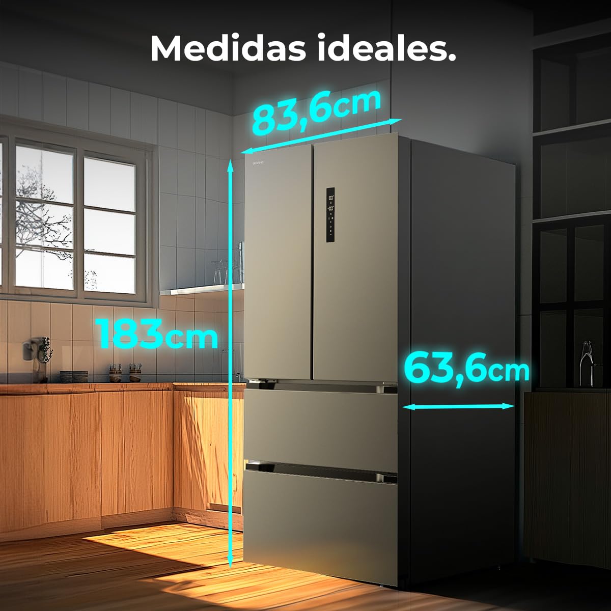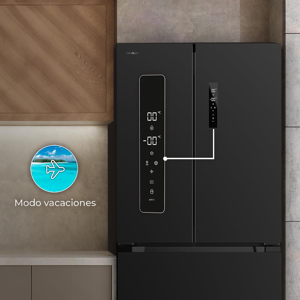 Cecotec Refrigerator French Door Dark 510 L Bolero CoolMarket FD 510 Dark E. 183 cm High, 84 cm Wide, Motor Inverter Plus, Fast Cooling and Fast Freez