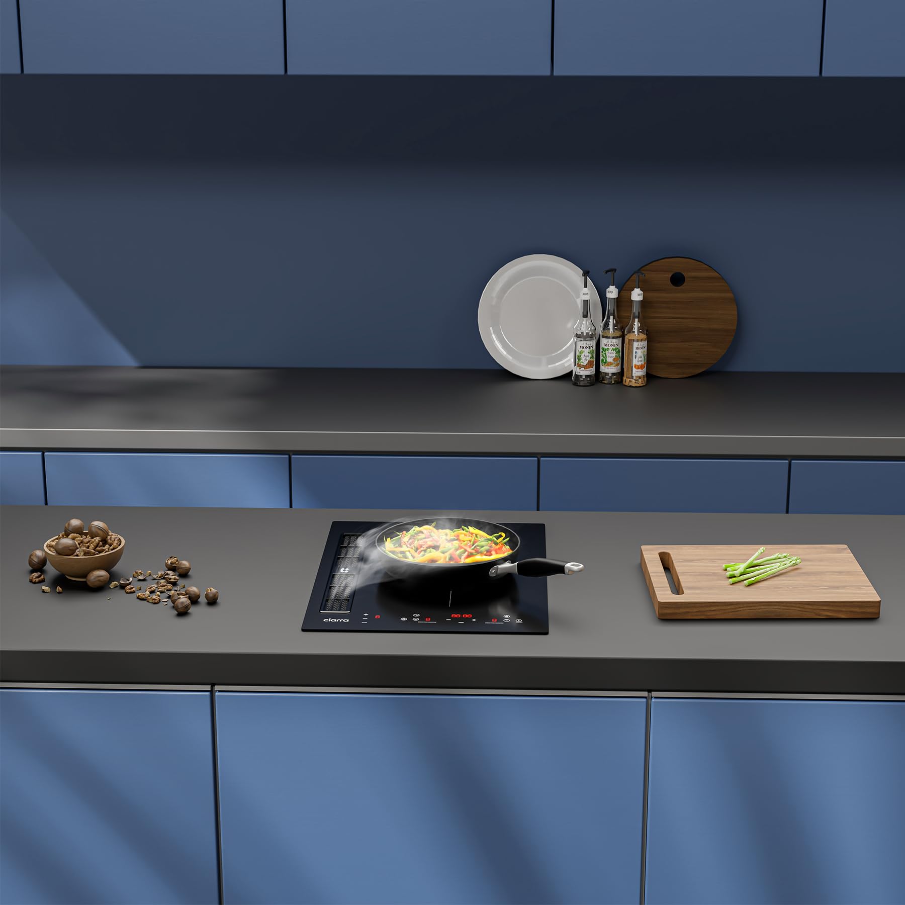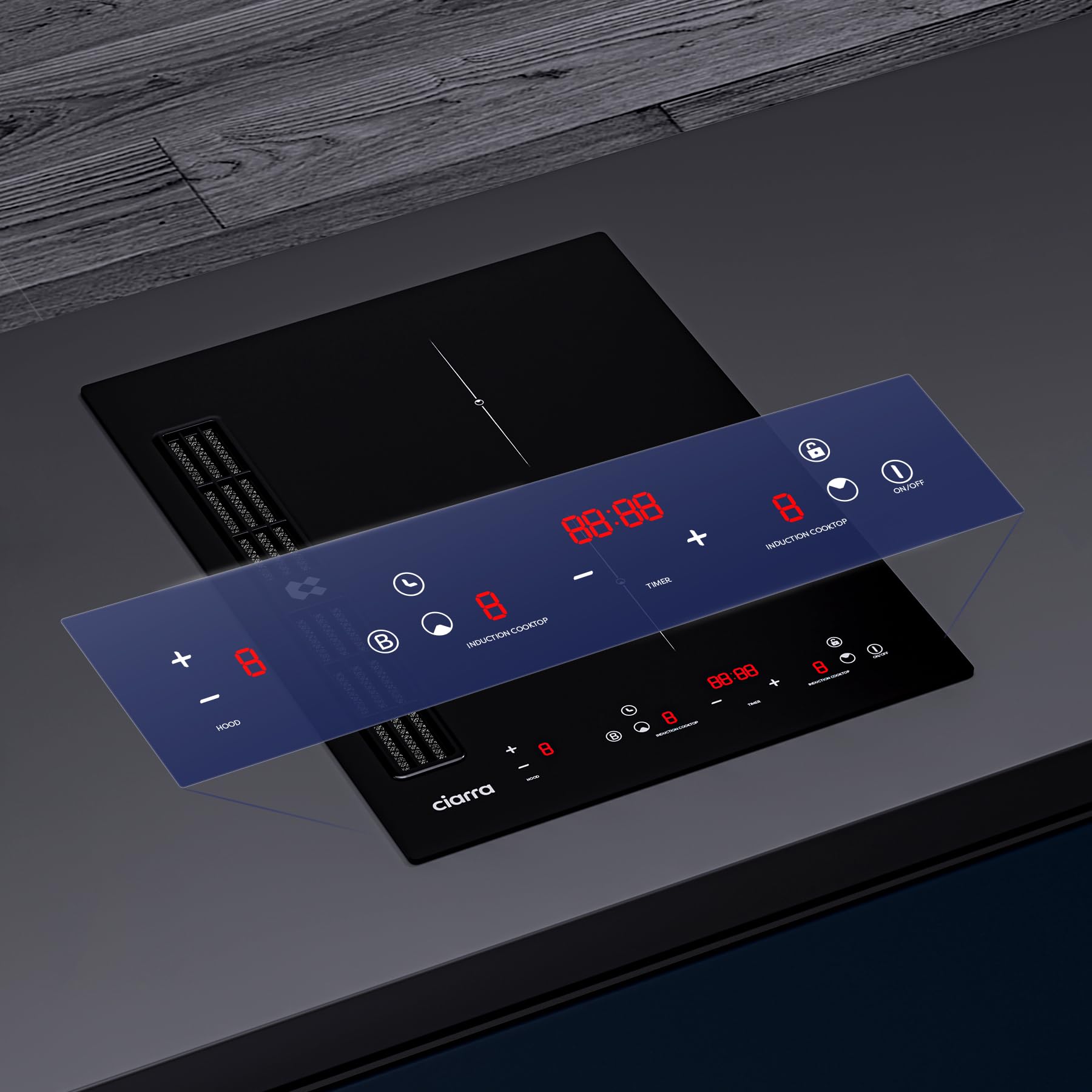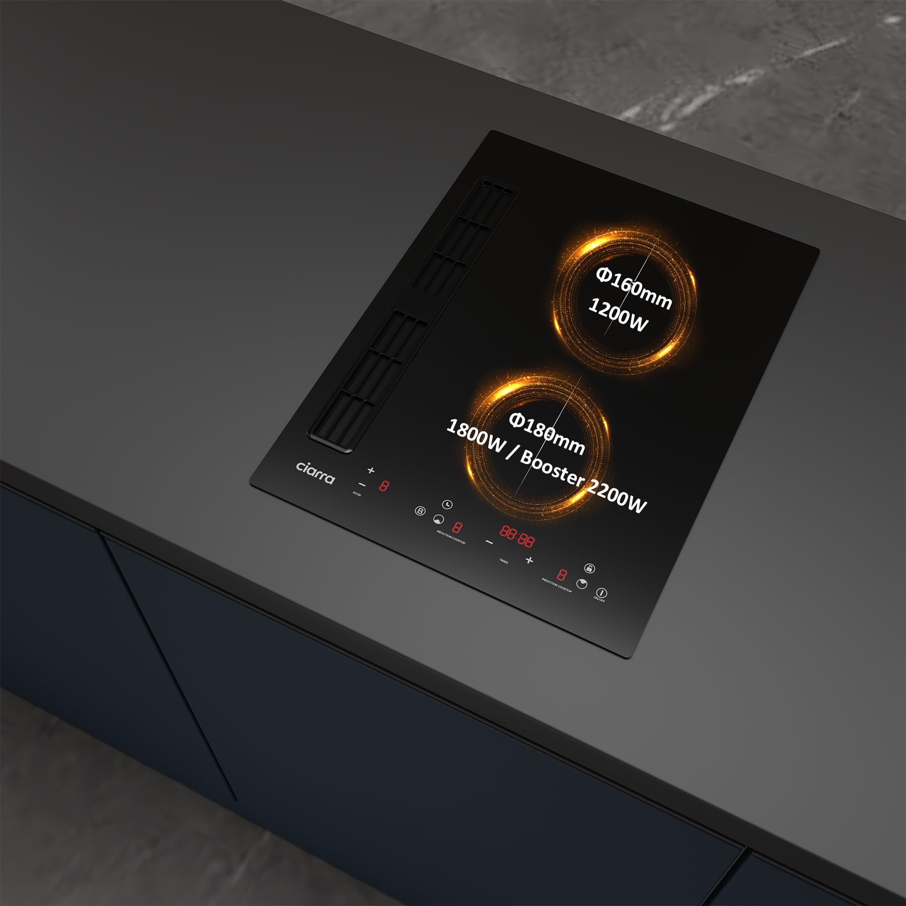 CIARRA One Plaque à Induction et Hotte Intégrée-39cm-3200W-9 Niveaux de Puissante-460m³/h- Évacuation ou Recyclage-4 Vitesses-Fonction Boost-Filtratio