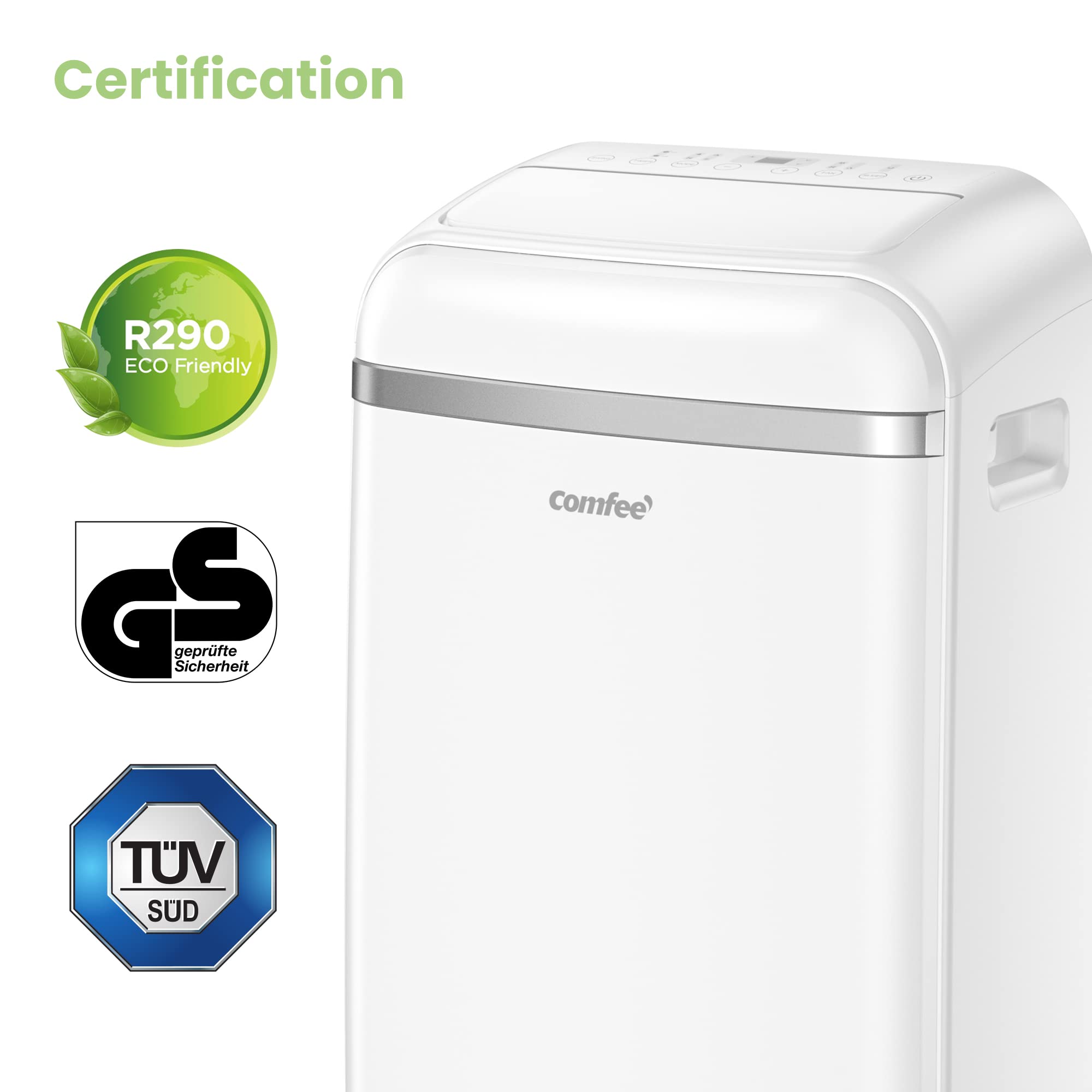 COMFEE' Climatiseur Mobile 9000 BTU/h 2,6kW, 3-EN-1 Refroidisseur Déshumidificateur Ventilateur, Fonction Follow me, Minuterie, Mode nuit, Pour salon
