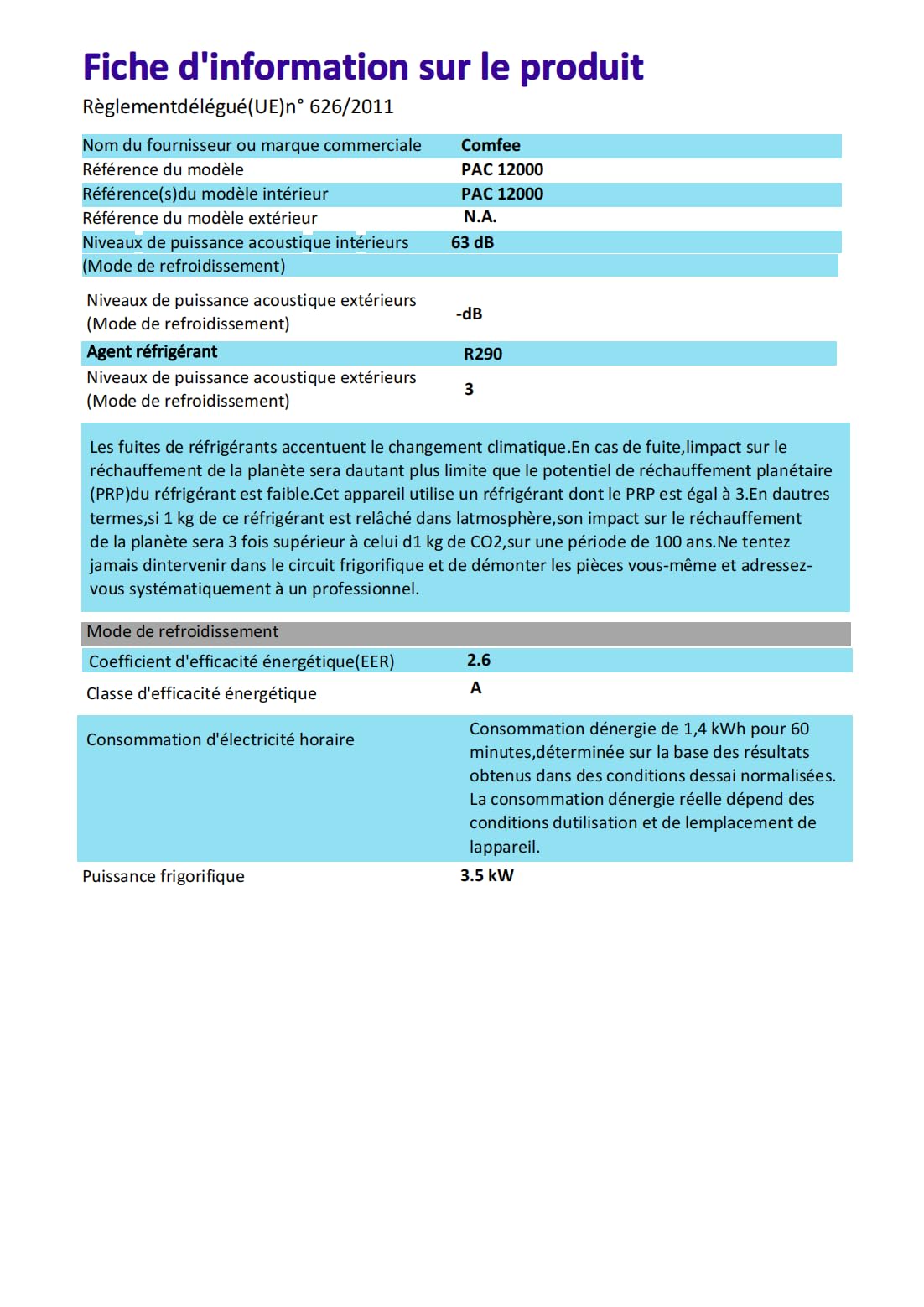 COMFEE' Climatiseur Mobile 12000 BTU/H 3,5 kW, 3 Modes, Fonction Follow Me, Télécommande, pour grandes pièces de 43㎡/117m³, Kit d'évacution inclus, Ré
