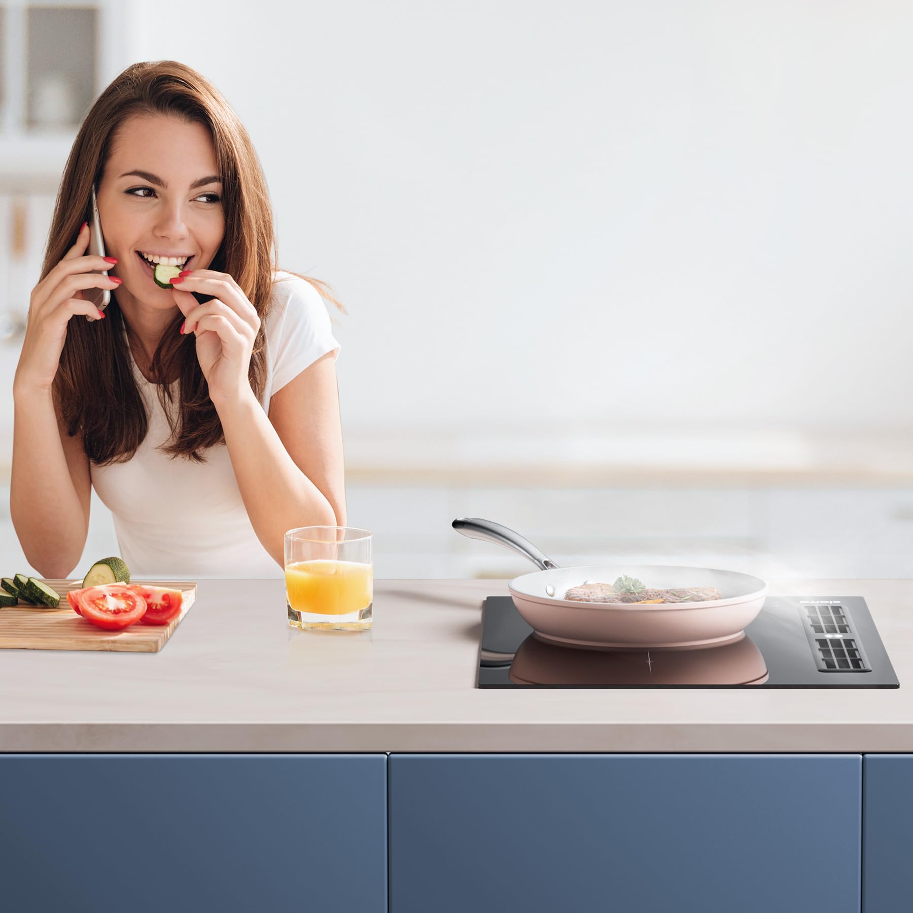 CIARRA ONE CBBEH392BF Plaque de cuisson à induction avec hotte aspirante, hotte de table intégrée, 39 cm, 2 plaques, Flexzone, 9 niveaux, sécurité enf