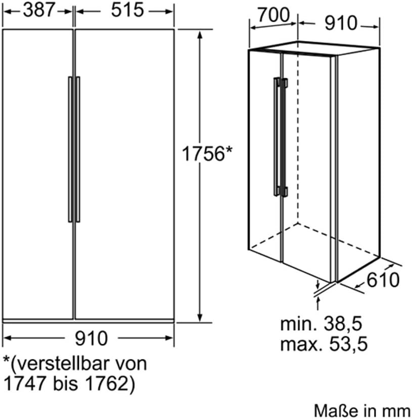 Siemens KA62DV71 Side by Side/A + / Refroidissement : 385 L/Congélateur : 177 L/Inox anti-empreintes/NoFrost/Anti-traces de doigts [Classe énergétique A+]