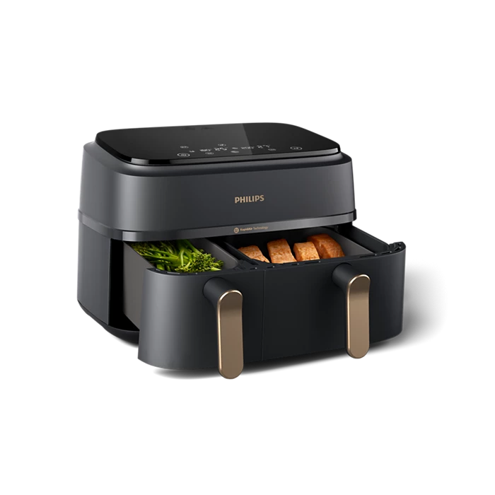 NINJA Foodi FlexDrawer Air Fryer, Dual Zone Avec Séparateur Amovible, Grand Tiroir de 10.4 L, 7-en-1, Double Zone, Pièces Antiadhésives Compatibles Au Lave-Vaisselle, Noir & Cuivre, AF500EUCP