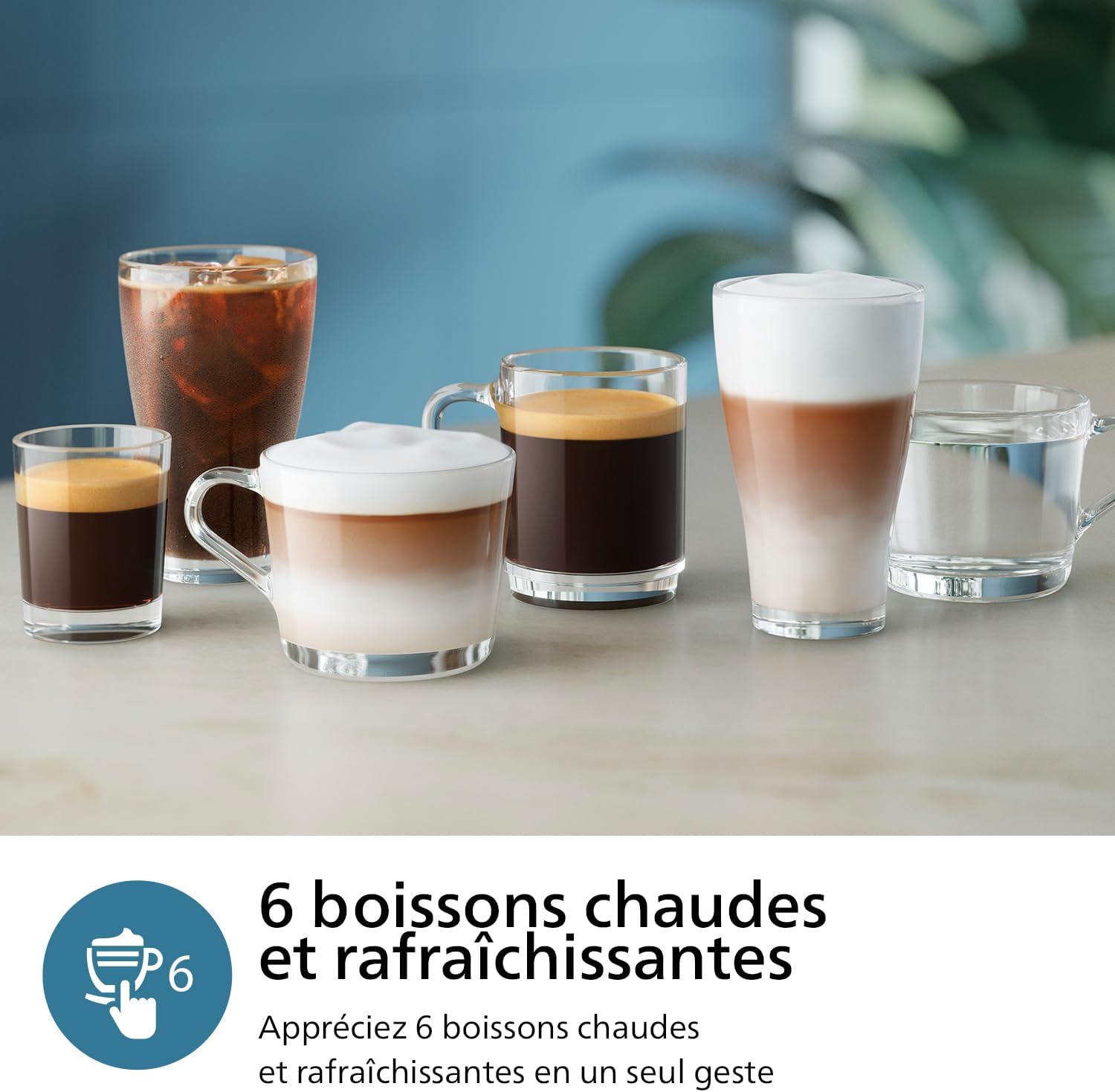 Philips Machine à Expresso Entièrement Automatique Séries 3300-6 Boissons,cran tactile couleur moderne,Système à lait LatteGo,SilentBrew,Broyeur 100%Céramique,Filtre AquaClean.Noir Chrome (EP3347/90)