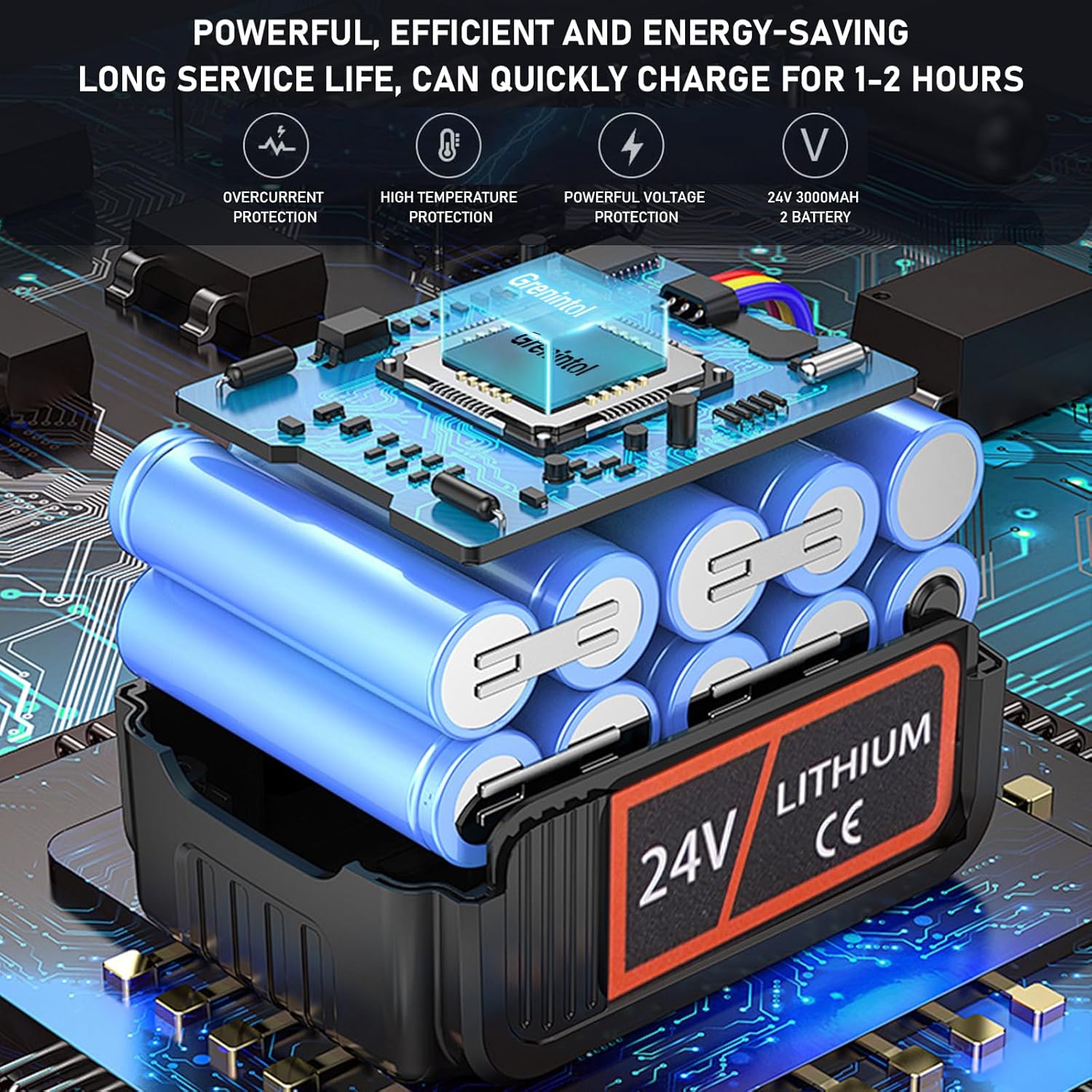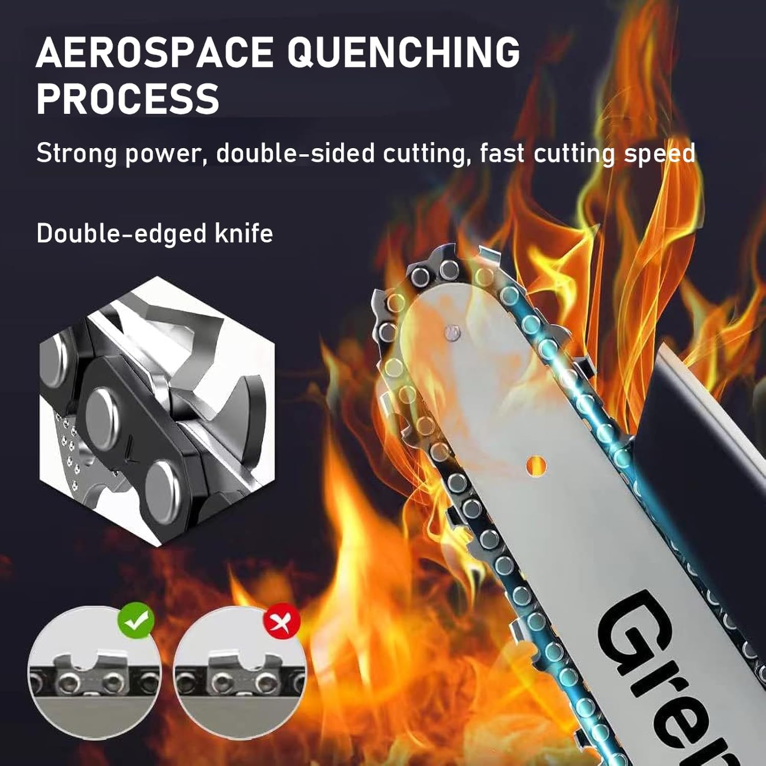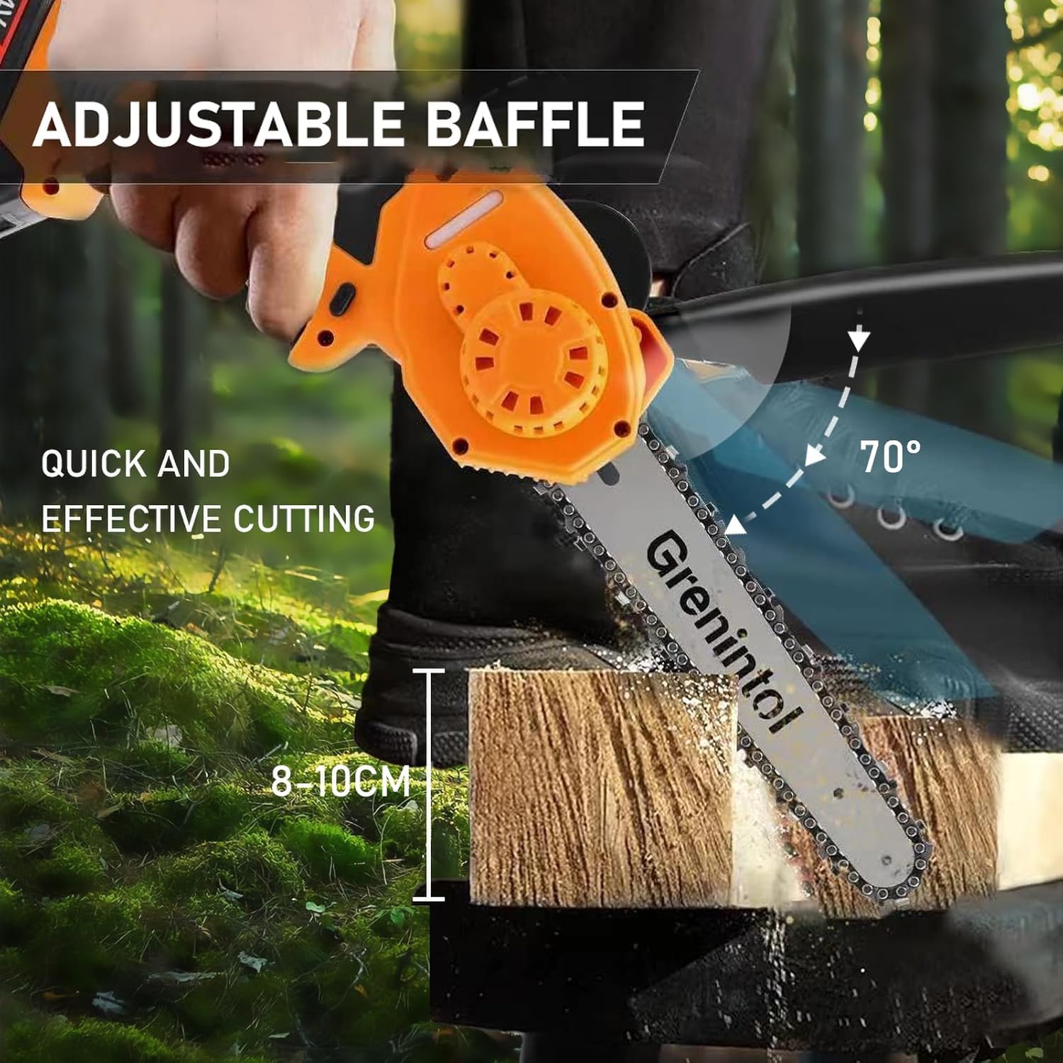 Grenintol Mini Trononneuse à Batterie, 8 Pouces Trononneuse lectrique sans Fil, 24V/1000W/6000mAh Mini Tronconneuse sans Fil avec 2 Batterie, 2 Chanes, Trononneuse lectrique pour Jardin