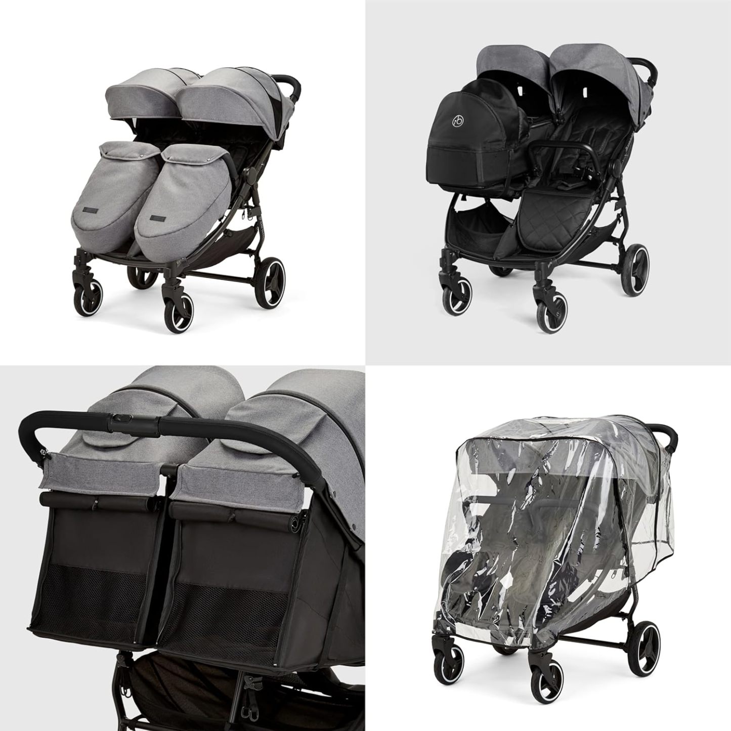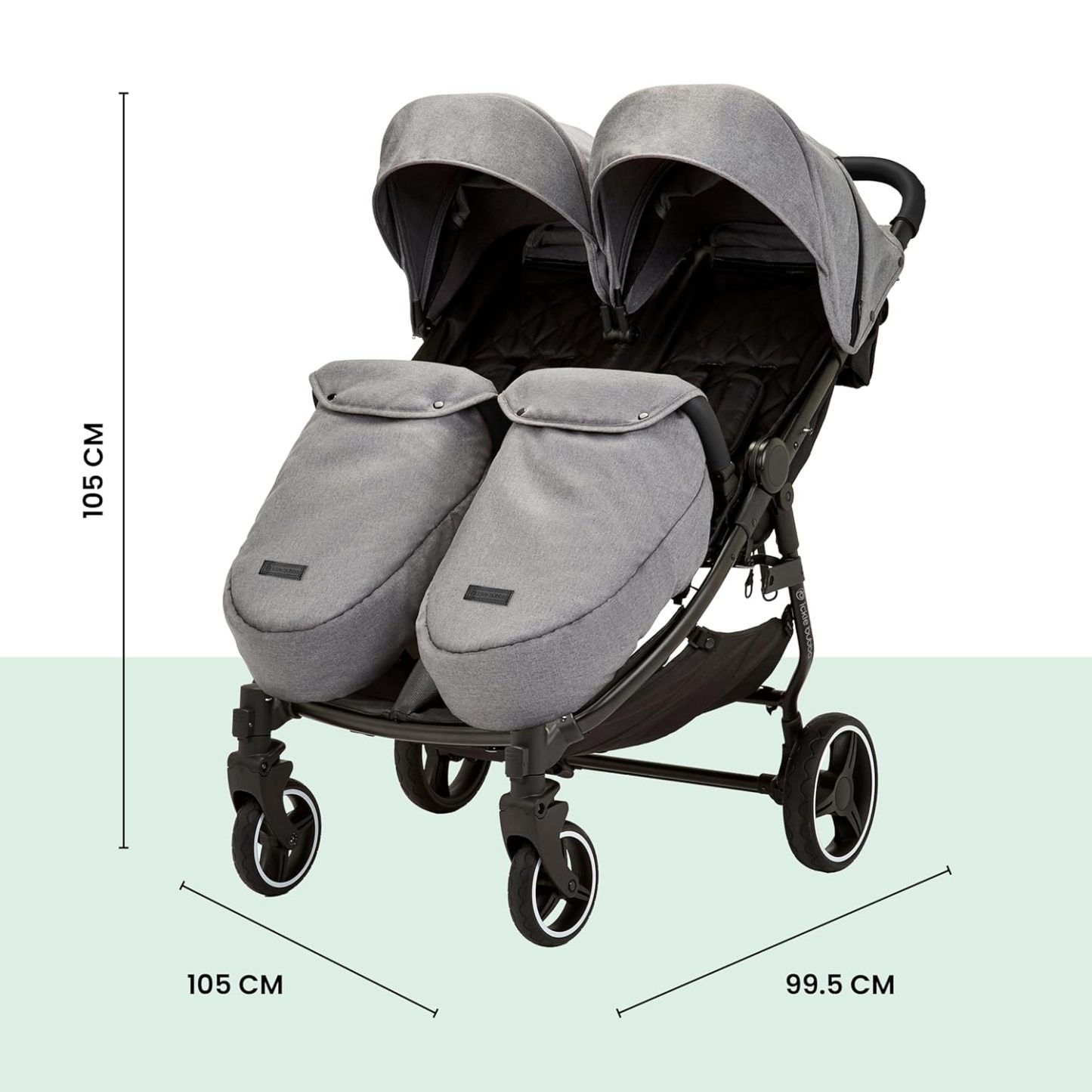 Venus Max Doppel kinderwagen - geeignet von Geburt bis 15 kg (ca. 3 Jahre), kompakter, leichter, faltbarer Zwillingskinderwagen, inklusive Regenschutz und Fußwärmer (Biscuit)