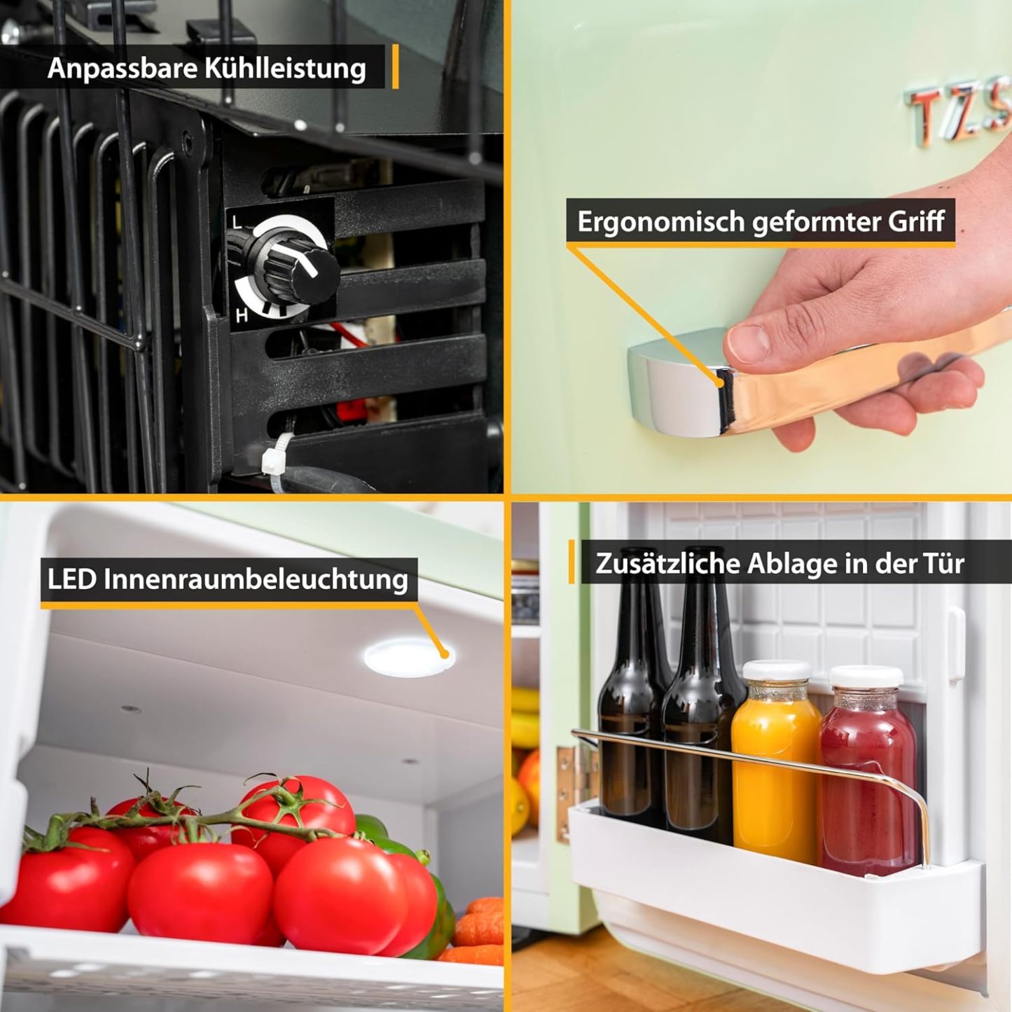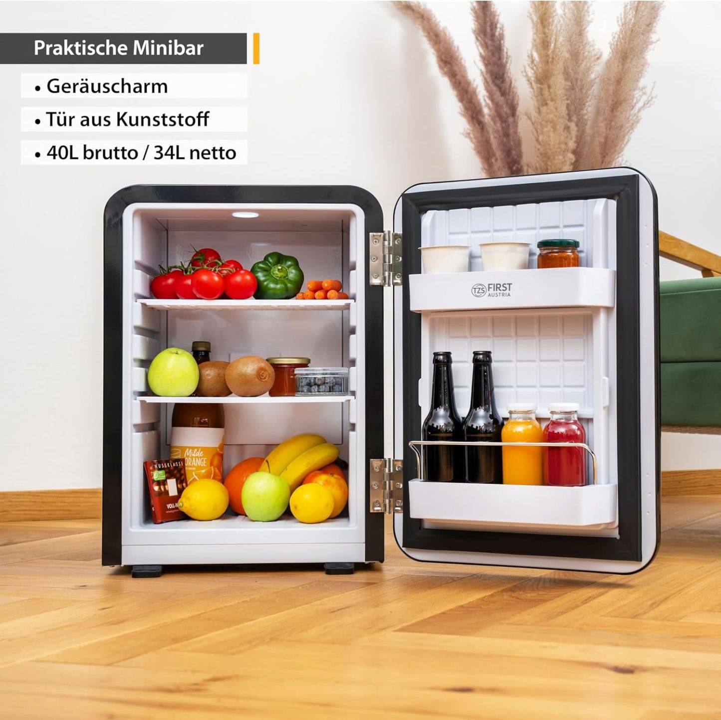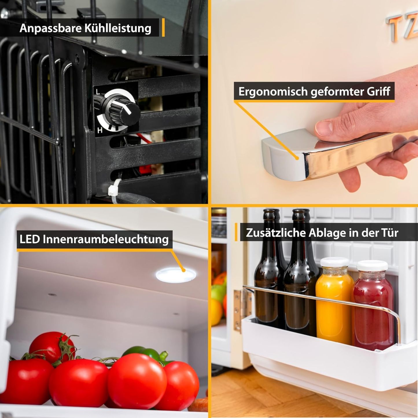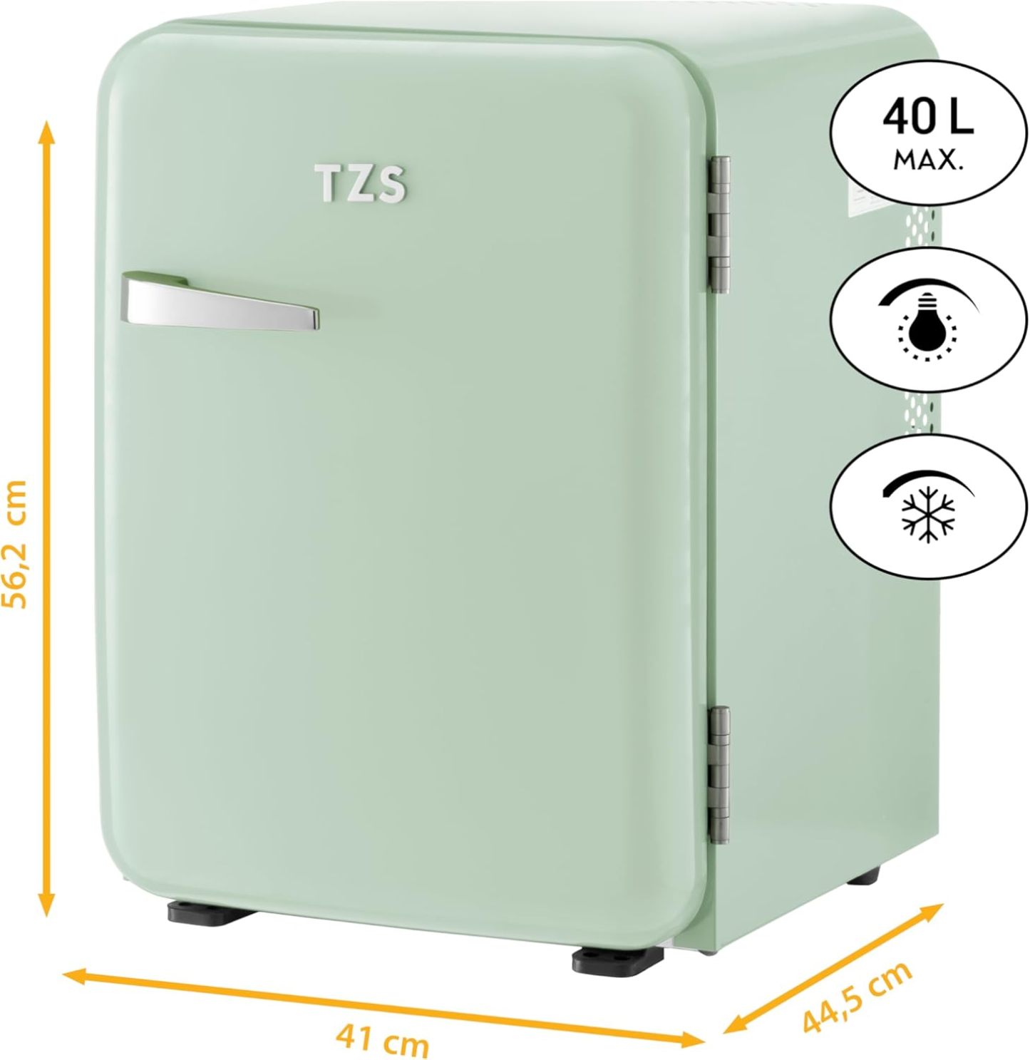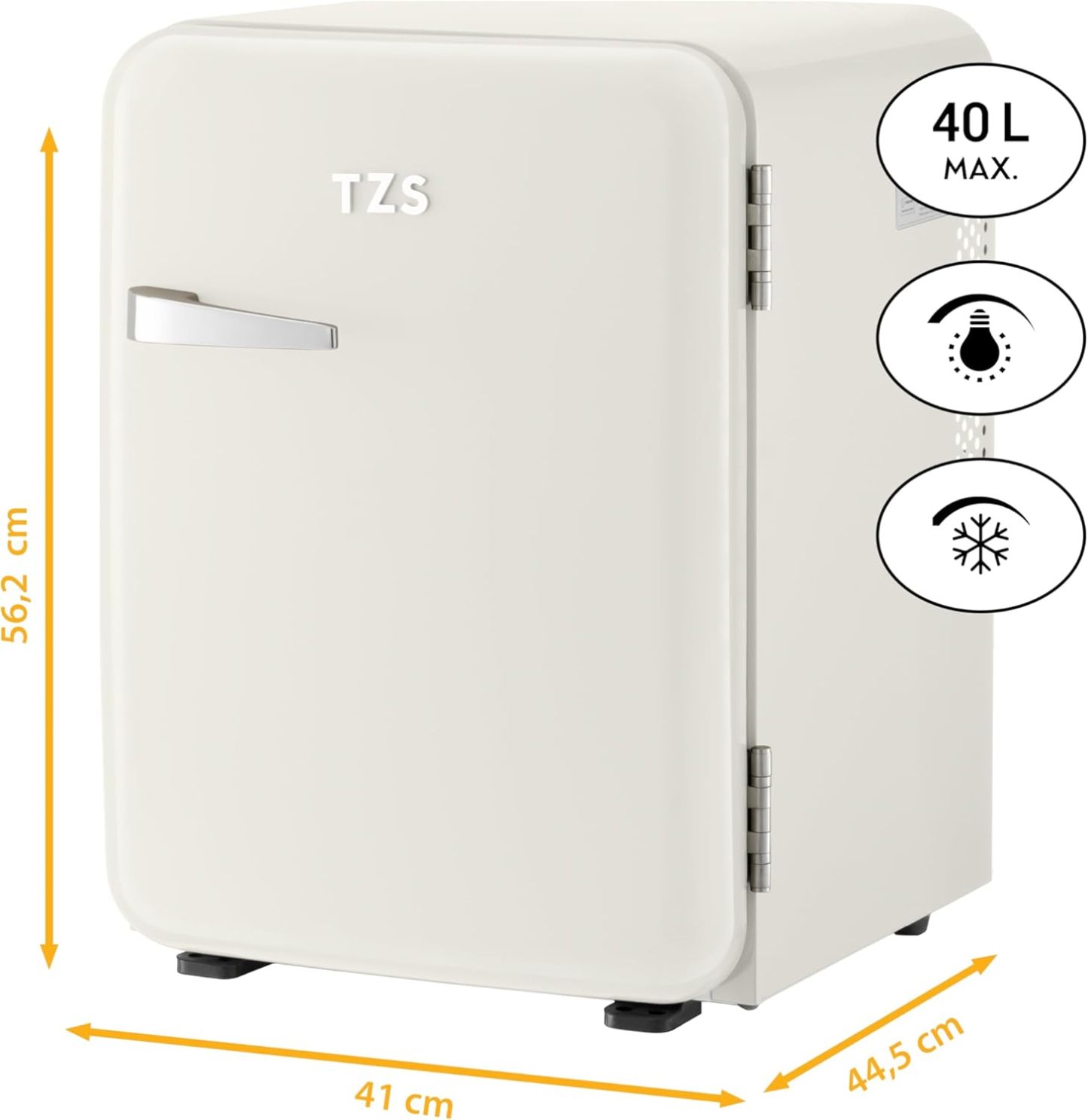 TZS First Austria lautloser Minikühlschrank | Retro Design | Einstellbare Kühlleistung | Türgriff |Thermoelektrisches Kühlsystem | 40L | creme