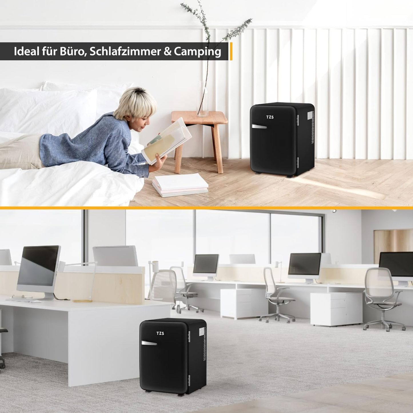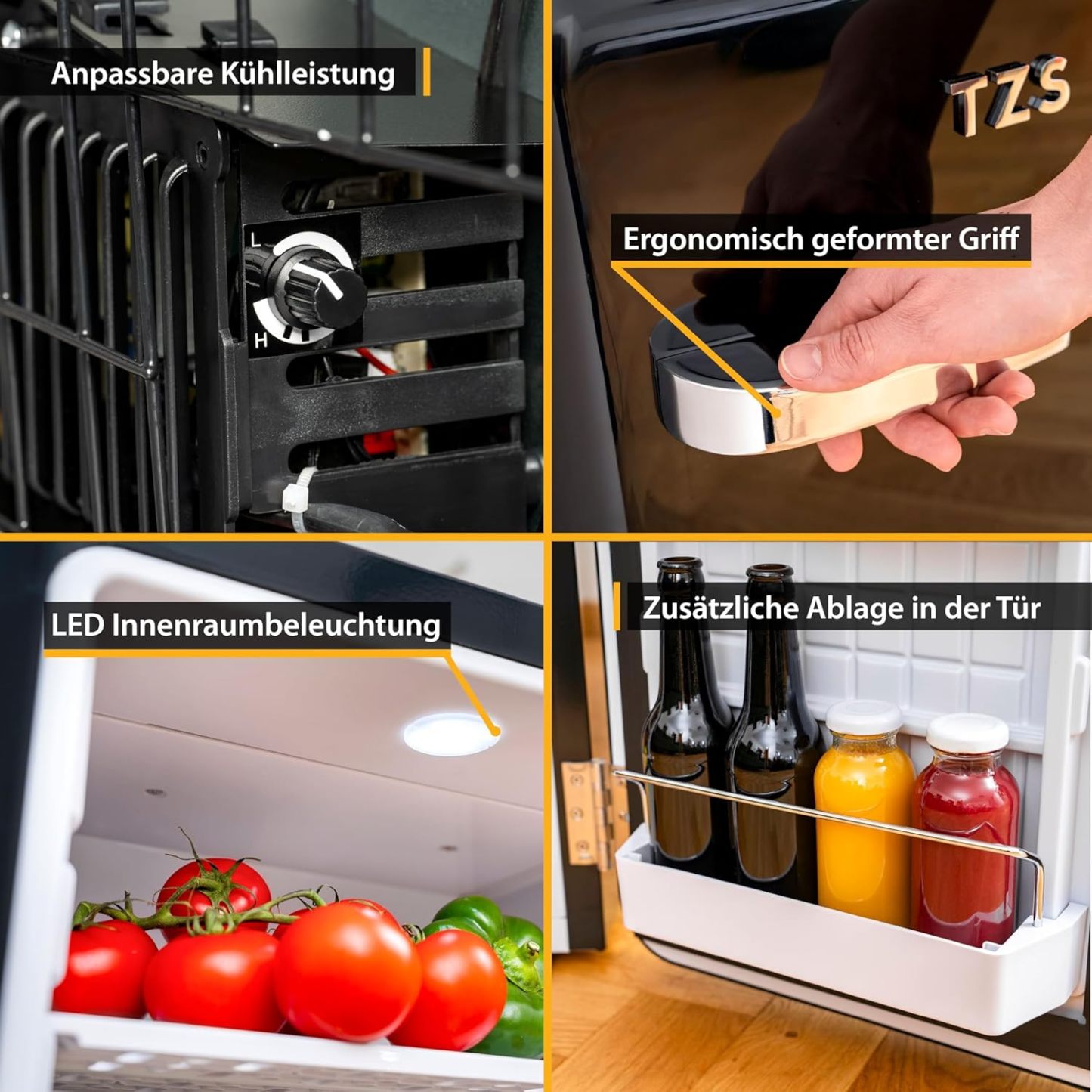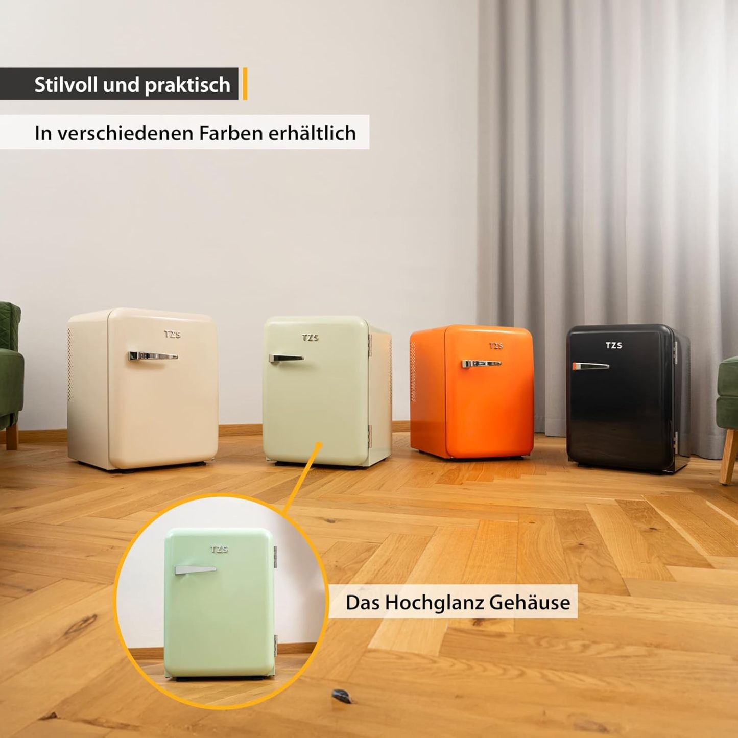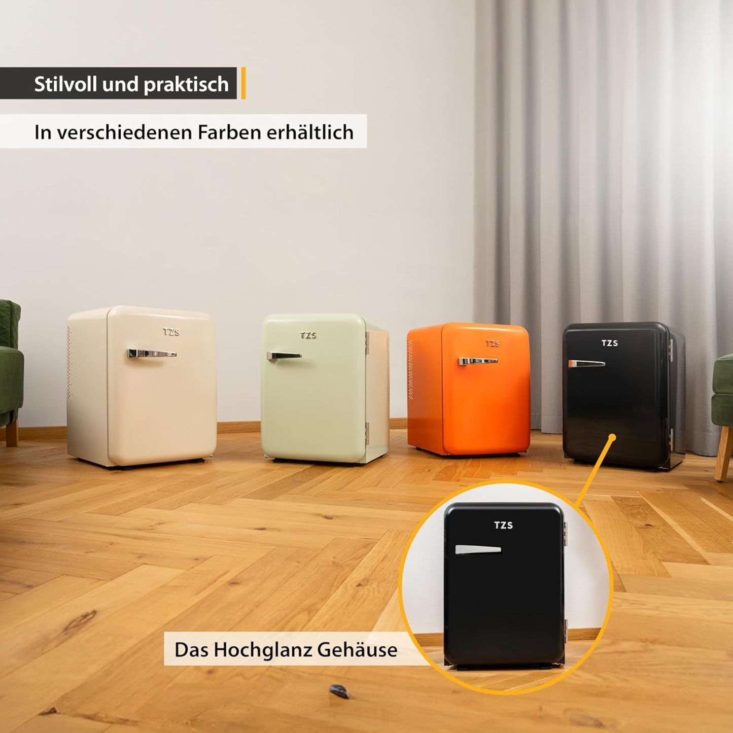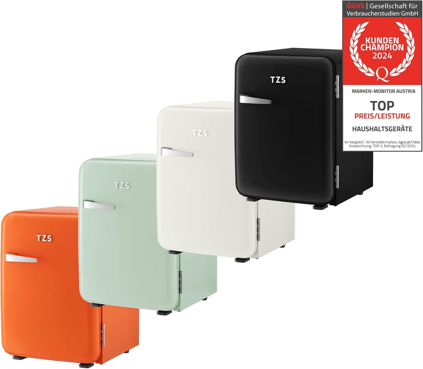 TZS First Austria lautloser Minikühlschrank | Retro Design | Einstellbare Kühlleistung | Türgriff |Thermoelektrisches Kühlsystem | 40L | creme