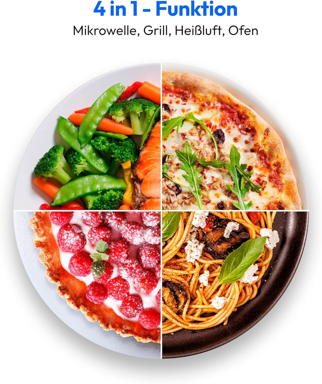 MEDION MD 15501 4 in 1 Mikrowelle mit Grill (25 Liter, 900 Watt, 1100 Watt Grill, 2500 Watt Heißluft, 10 Automatik-Programme) silber