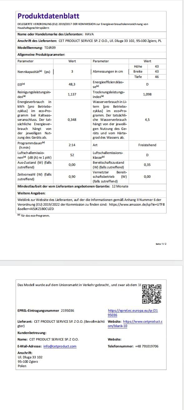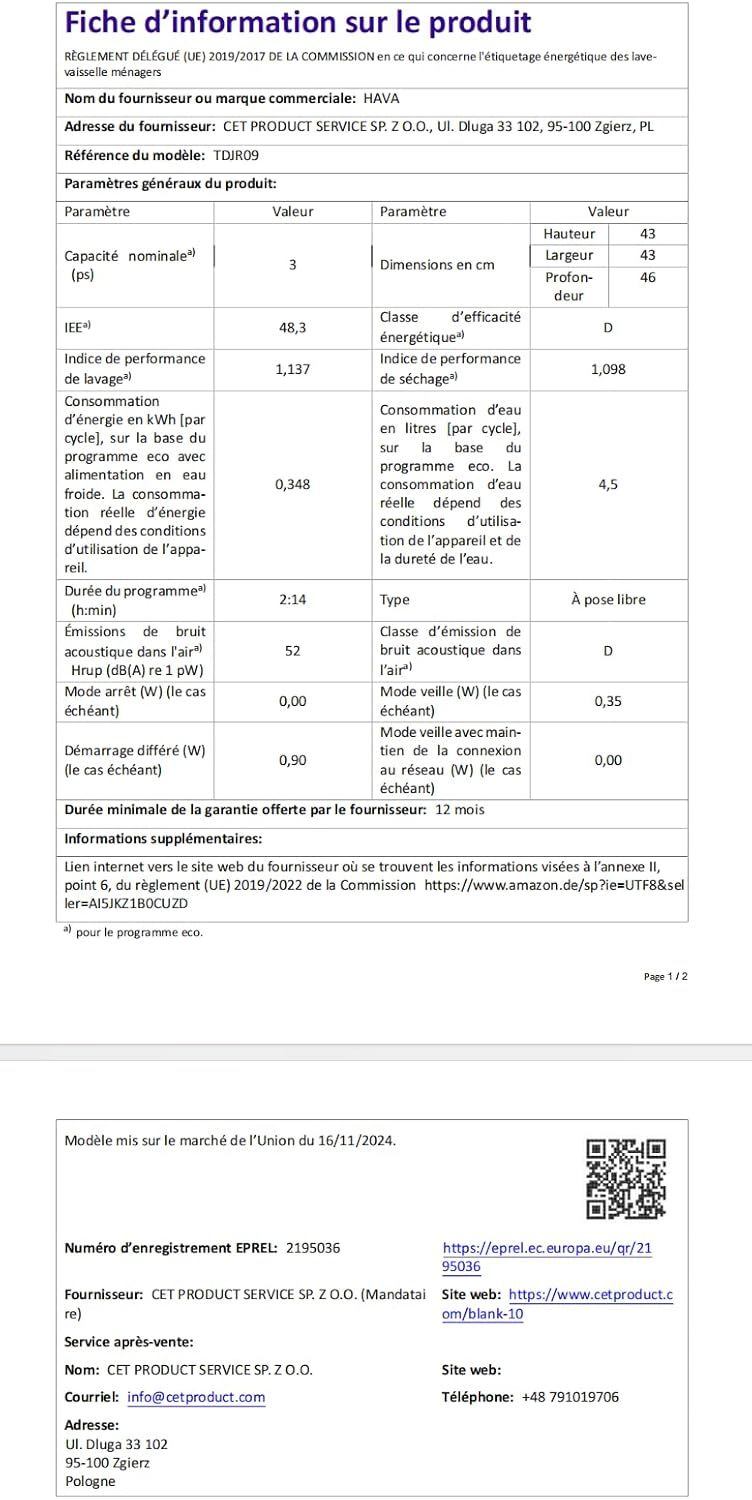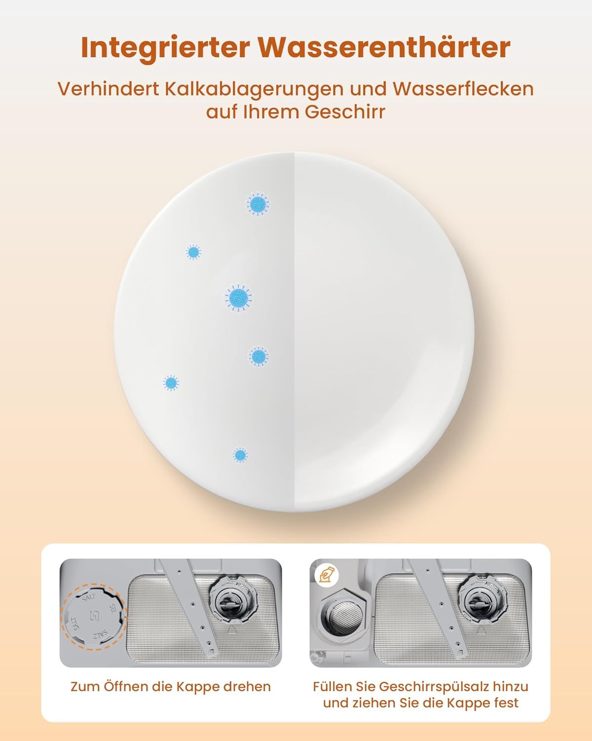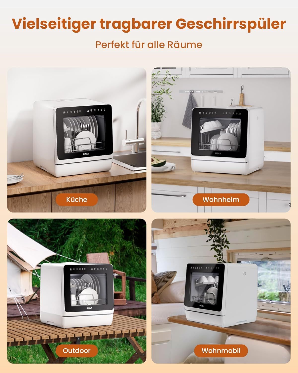 HAVA 2025 NEUE Tischgeschirrspüler mit Wasserenthärter und erhöhter Energieeffizienz, Spülmaschine mit 8 Programmen, Kindersicherung & verzögerter Start, keine Installation erforderlich
