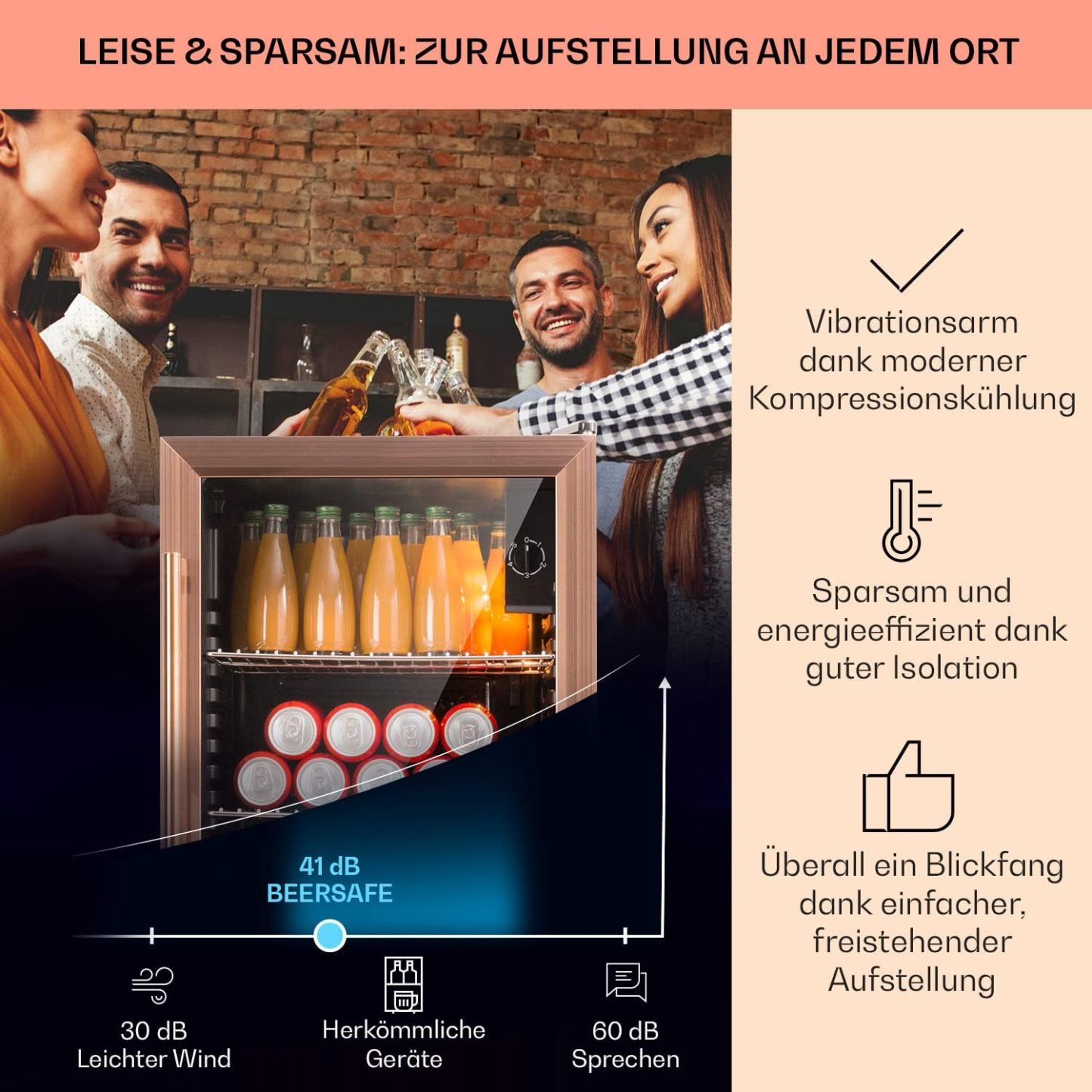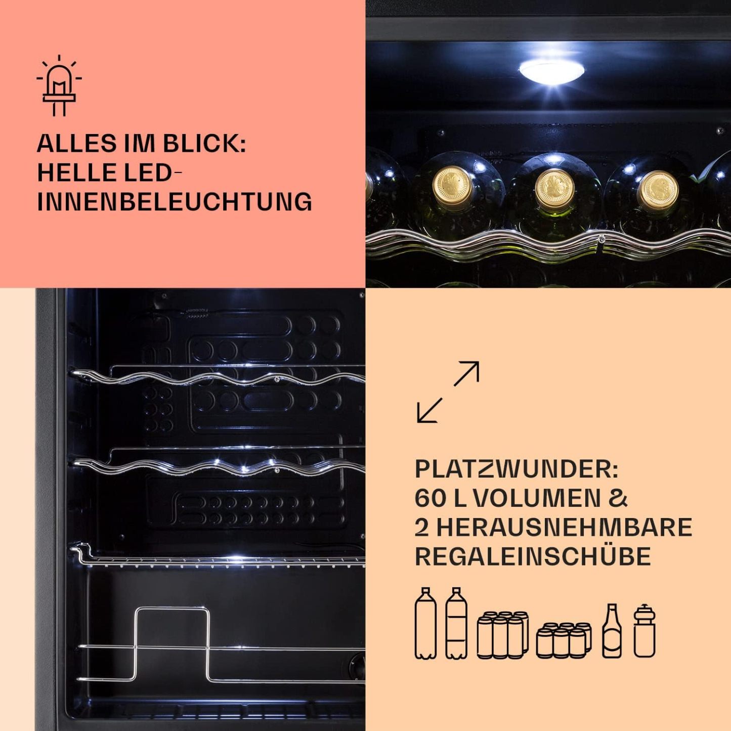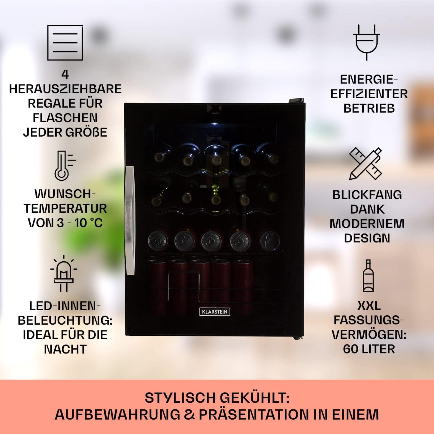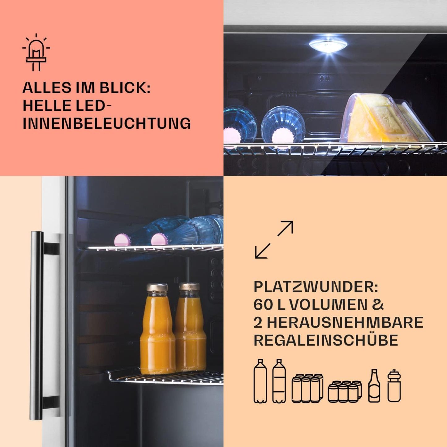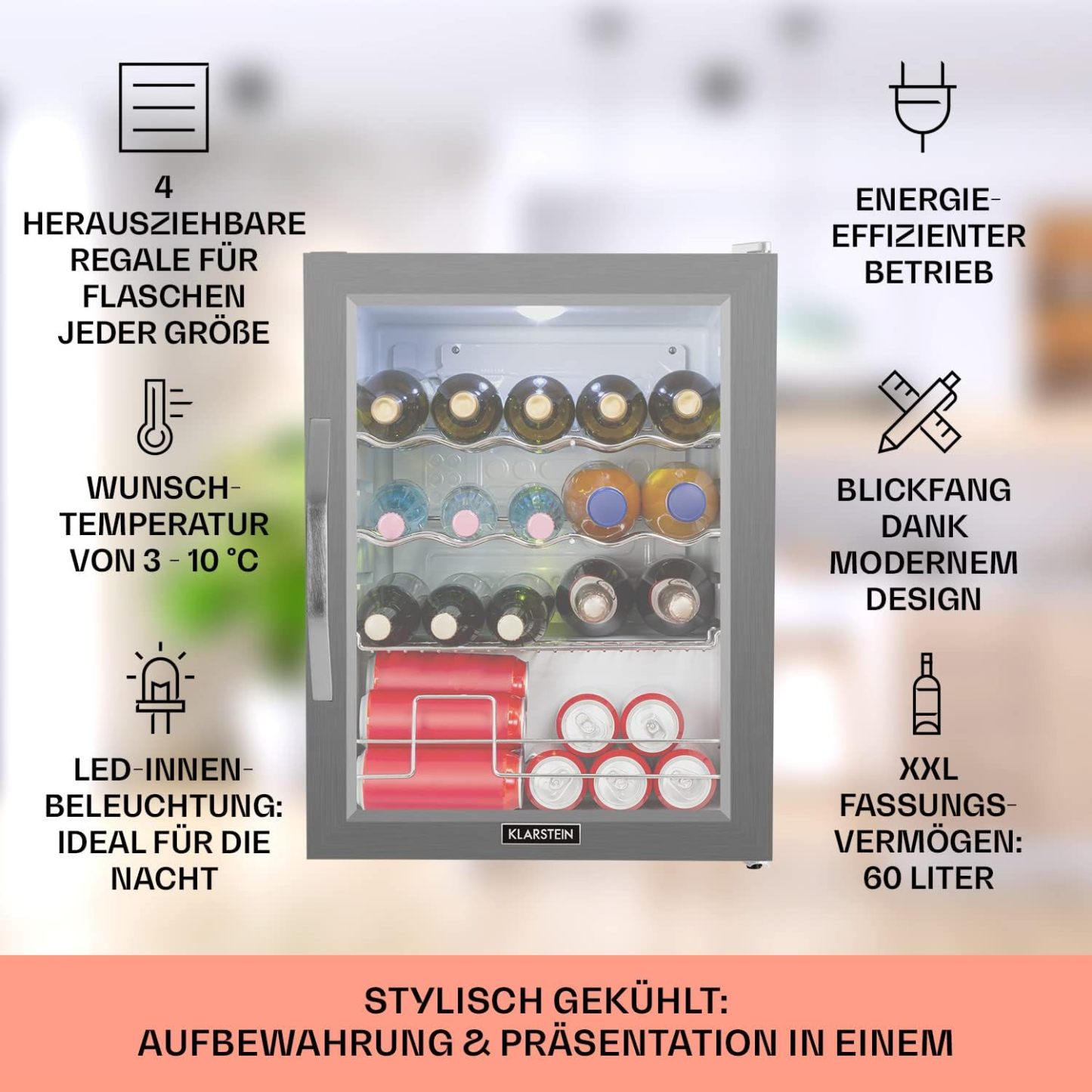 Klarstein Mini Kühlschrank mit Glastür für Zimmer, Getrnkekühlschrank mit Verstellbaren Ablagen, Kleiner 80 Liter, Indoor/Outdoor Kühlschrank Leise