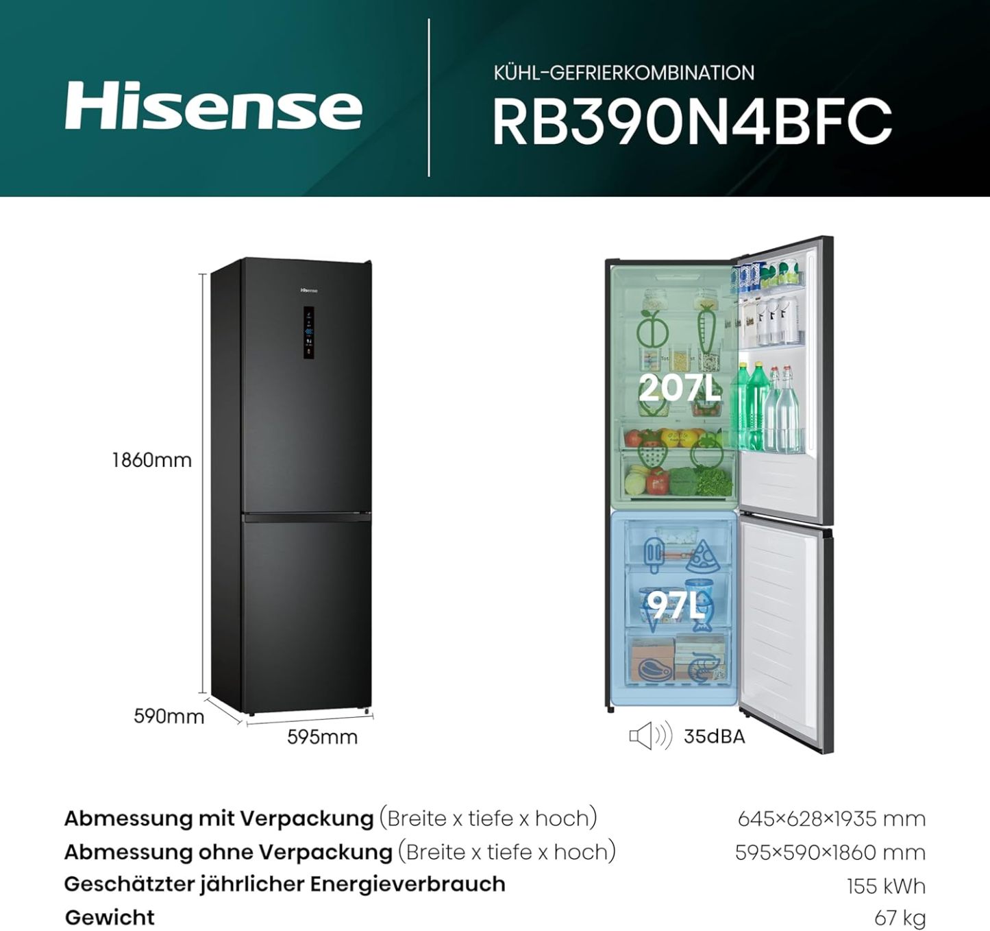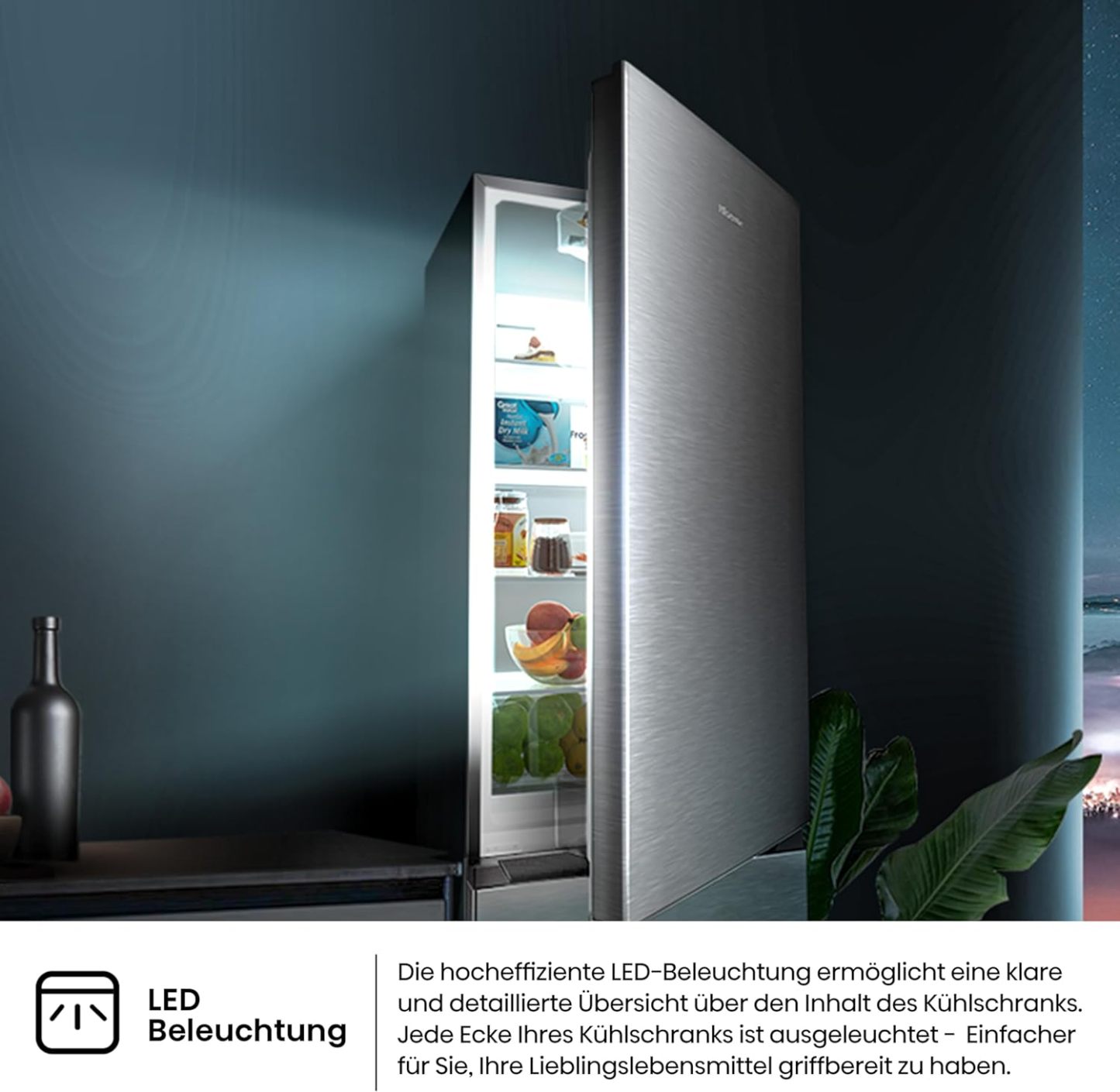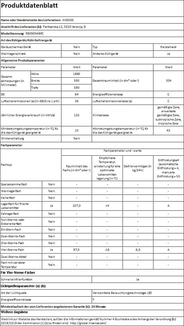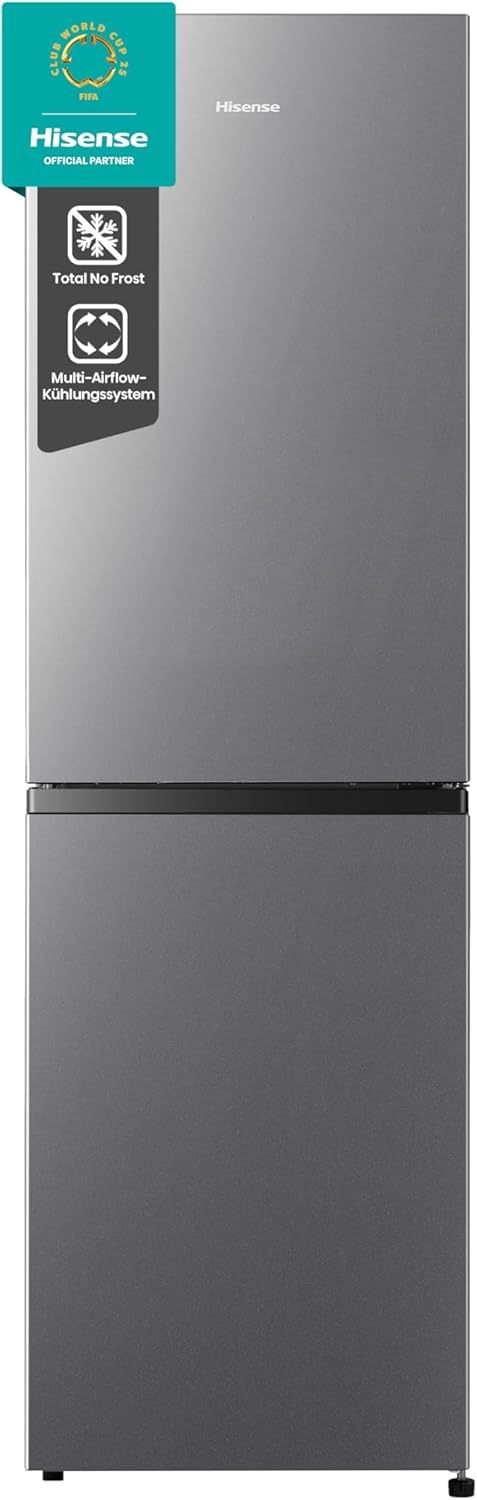 Hisense RB327N4AD2 Kühl-Gefrierkombination/ NoFrostPlus/ Multiflow 360°/ HolidayMode/ FreshZone/ 182,4 cm/ Kühlteil 171 l/ Gefrierteil 85 l/ 41 dB/ 287 kWh/ Jahr/ Edelstahl-Look