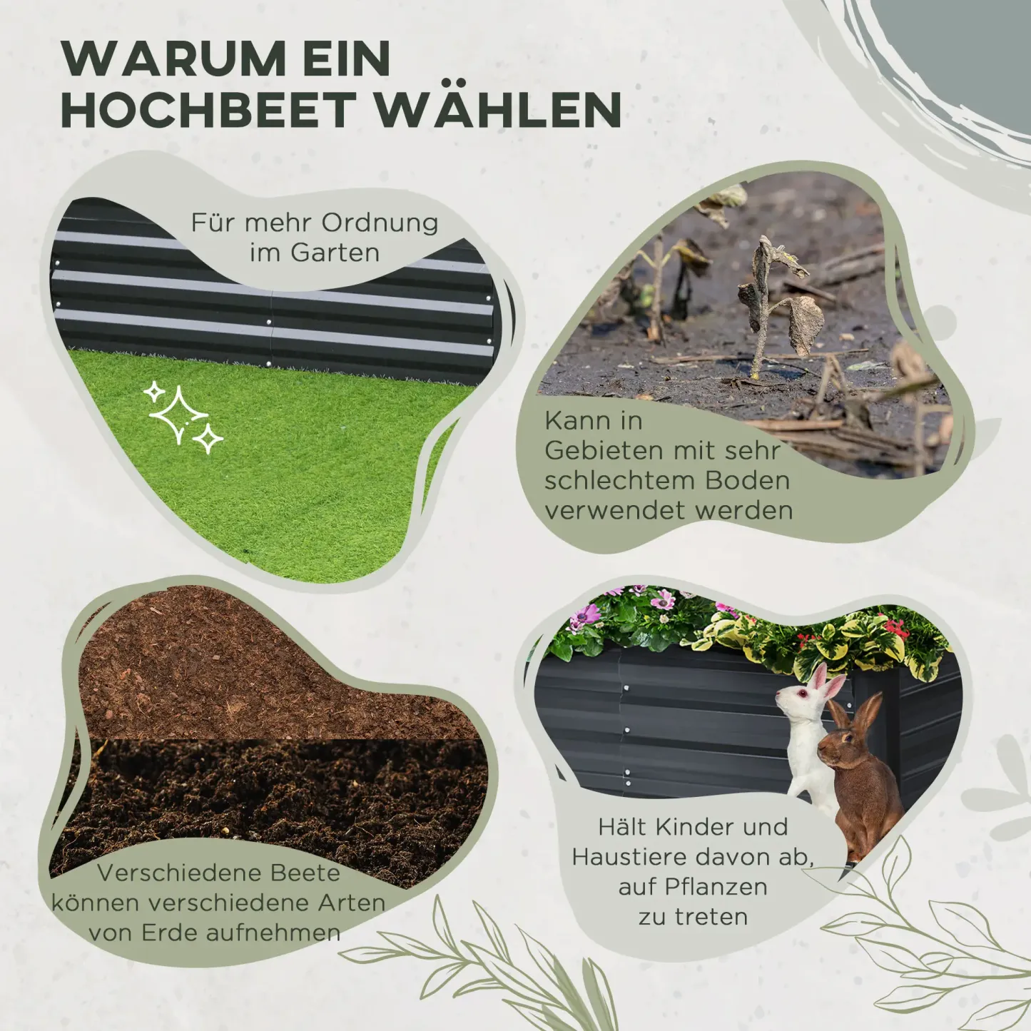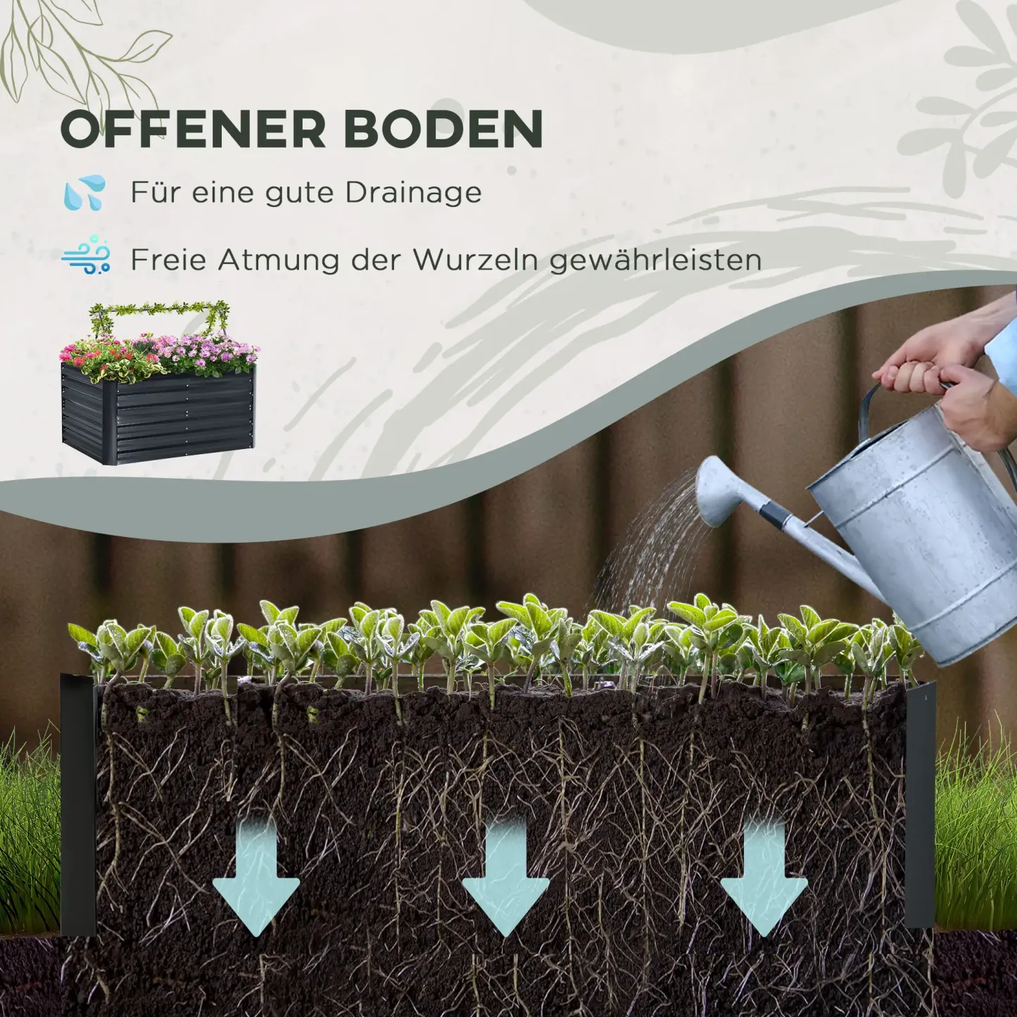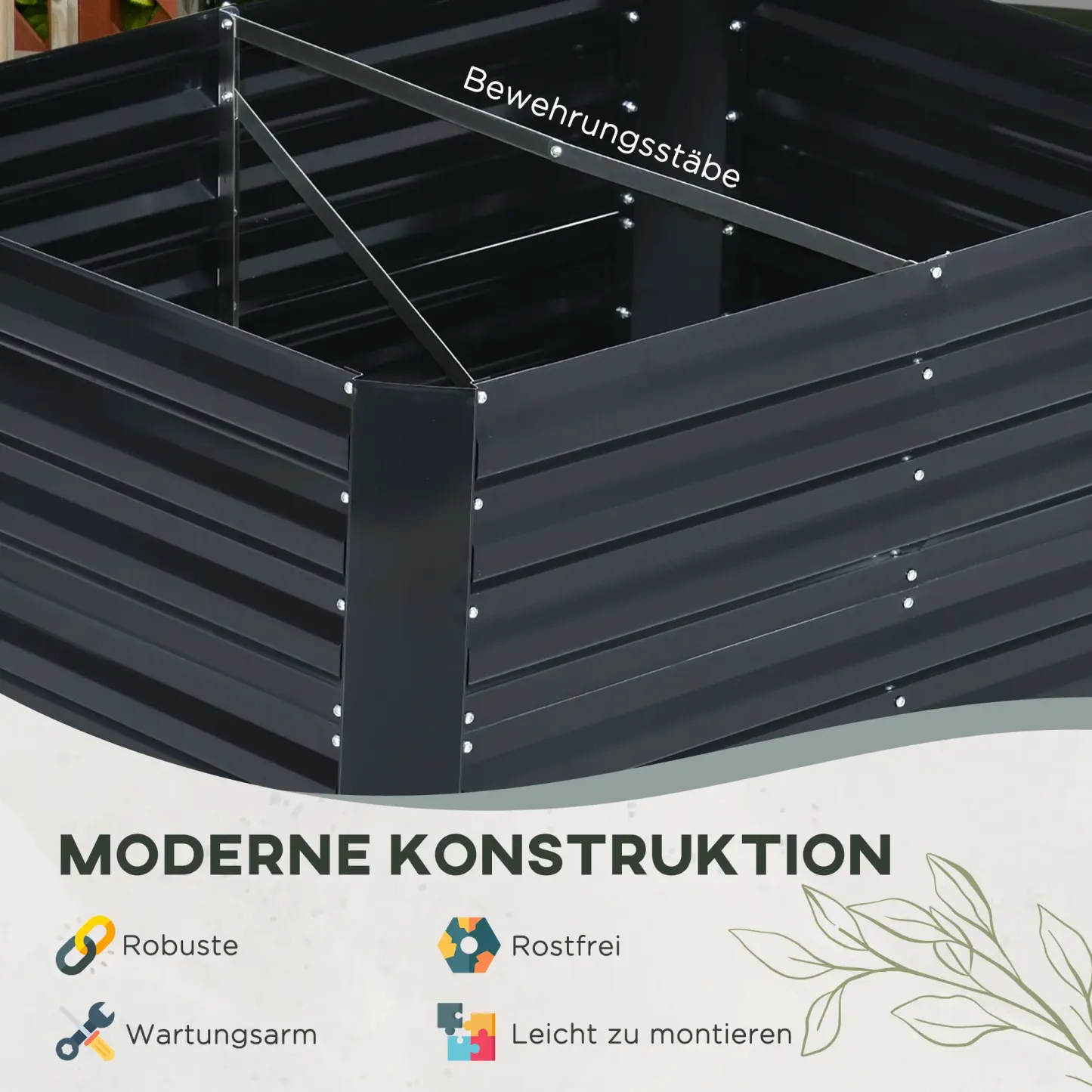 Outsunny Hochbeet Pflanzkasten offener Boden Stützgitter Stahl