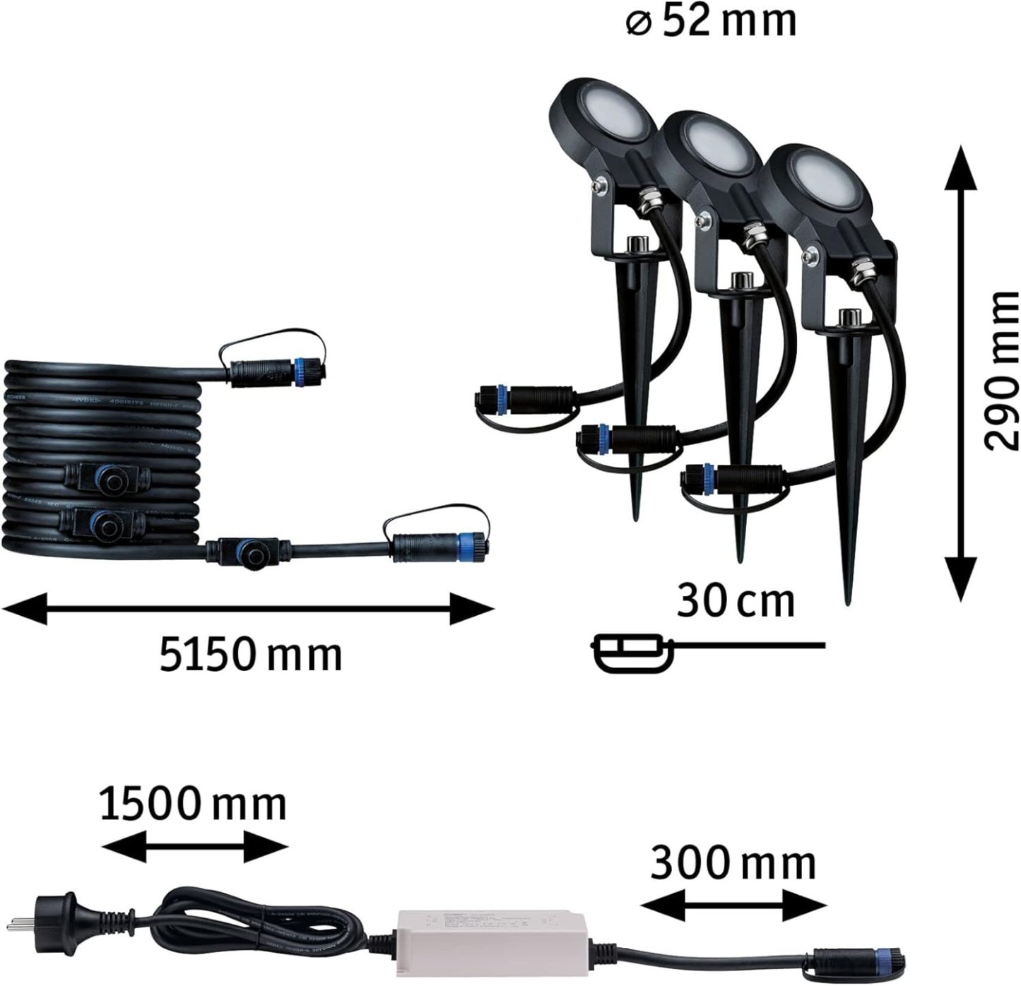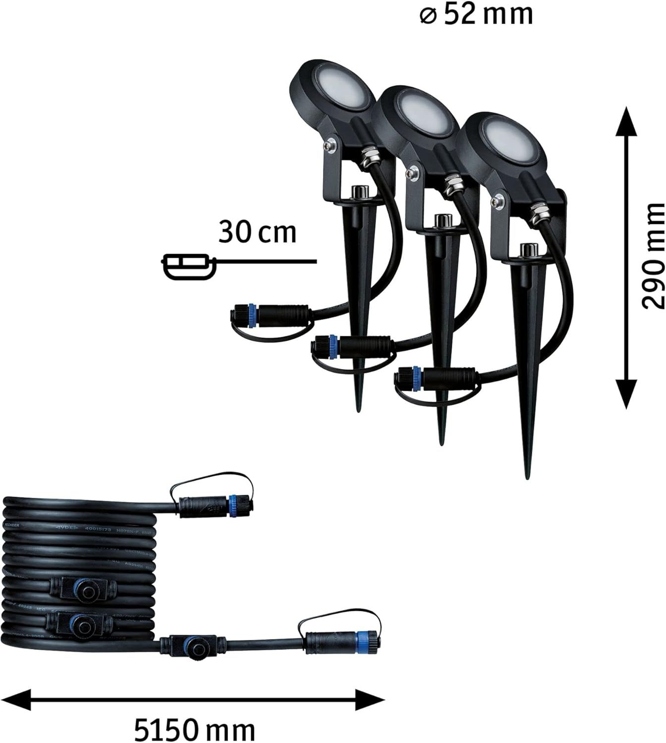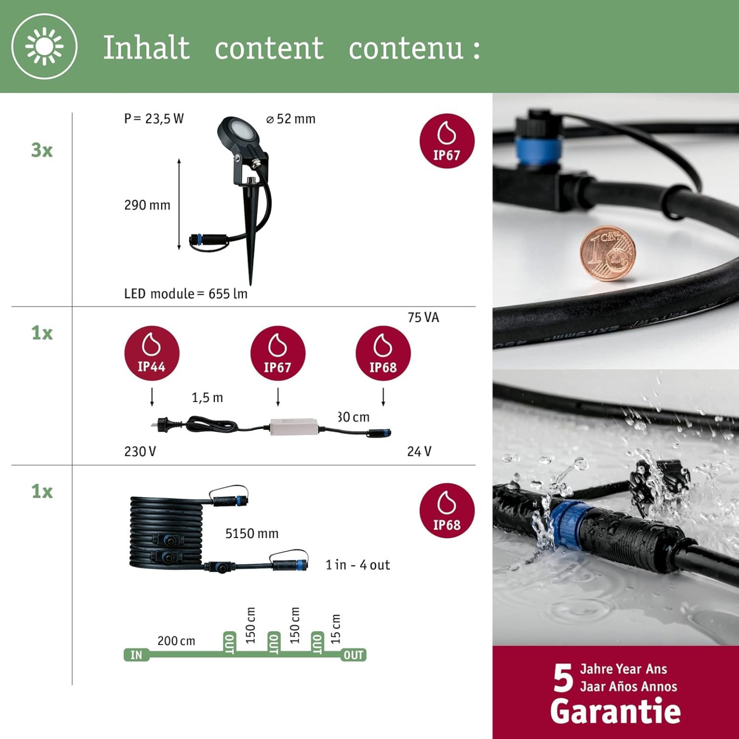 Paulmann Leuchten Paulmann 93696 Outdoor Plug & Shine 3er-Set Spot Sting Basisset IP67 3000K 3 x 6W