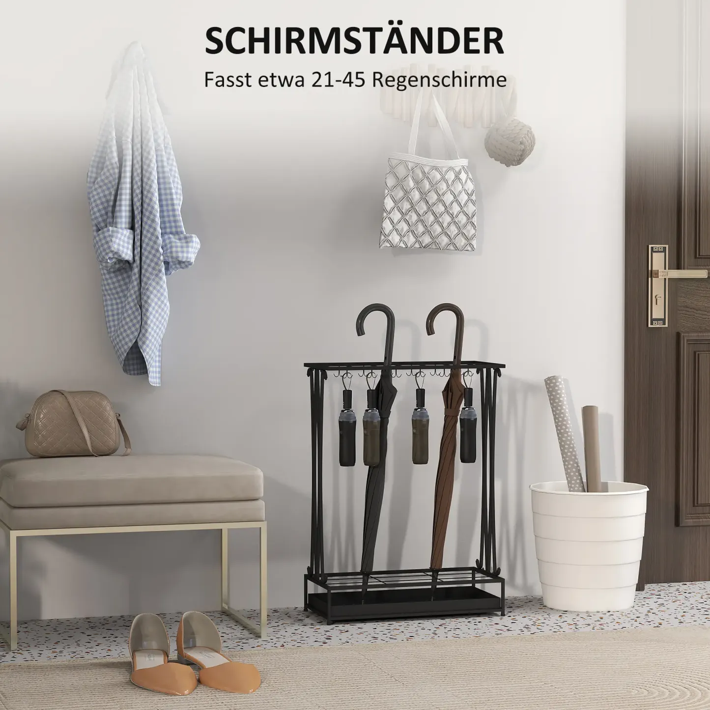 HOMCOM Regenschirmständer Stahl Schwarz mit 24 Haken & Auffangschale