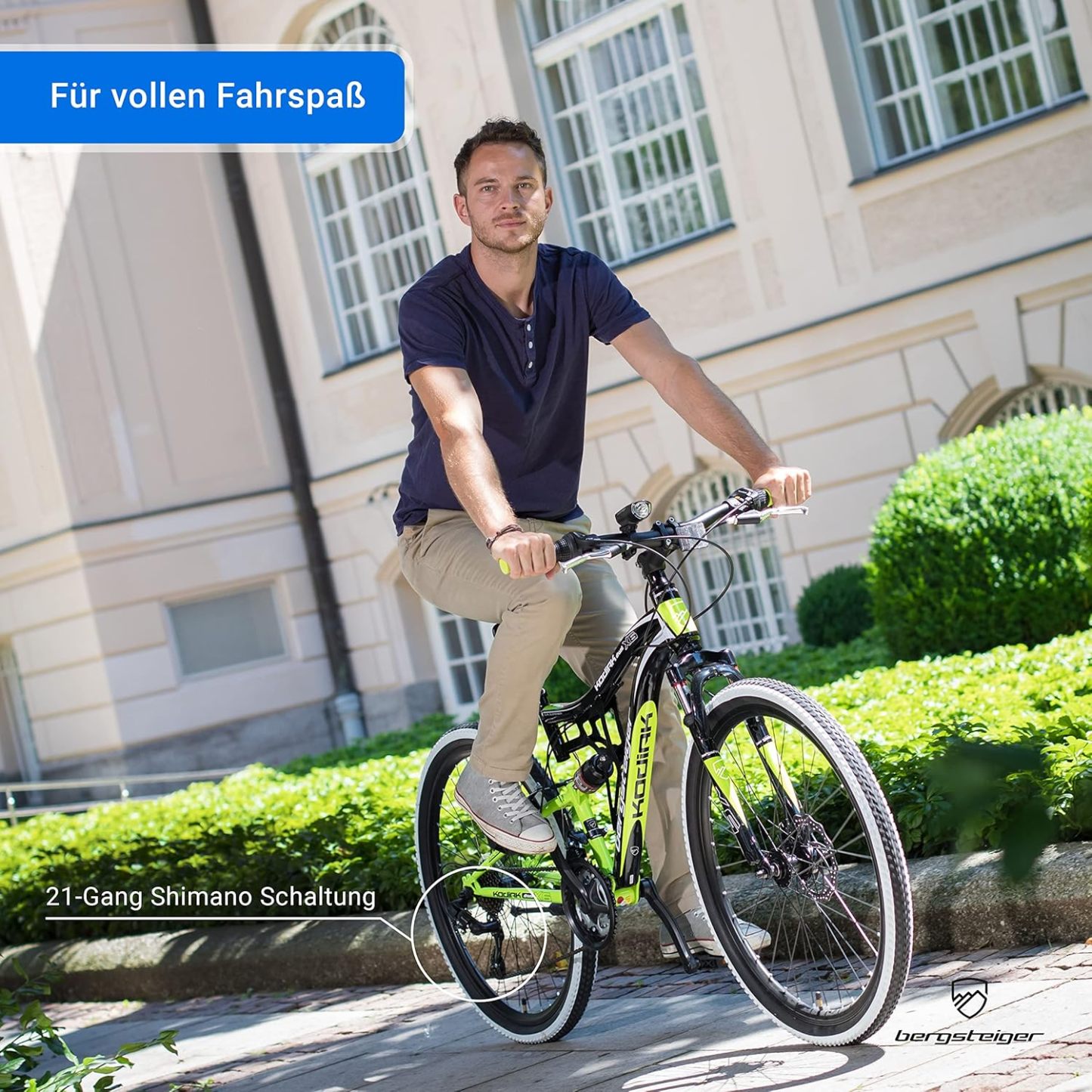 Bergsteiger Kodiak 26 Zoll, 29 Zoll Mountainbike, Scheibenbremse, Shimano 21 Gang-Schaltung, Vollfederung, Fully MTB für Jungen, Mädchen, Damen & Herren