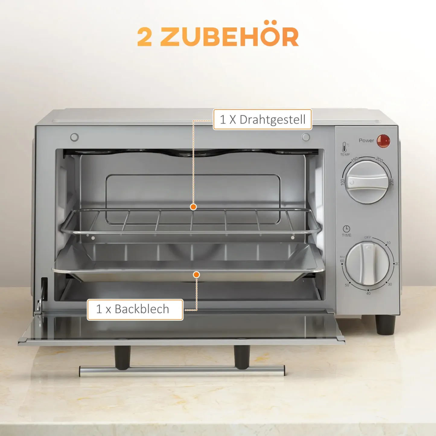 HOMCOM Minibackofen Elektro mit Timer & Sichtfenster Edelstahl